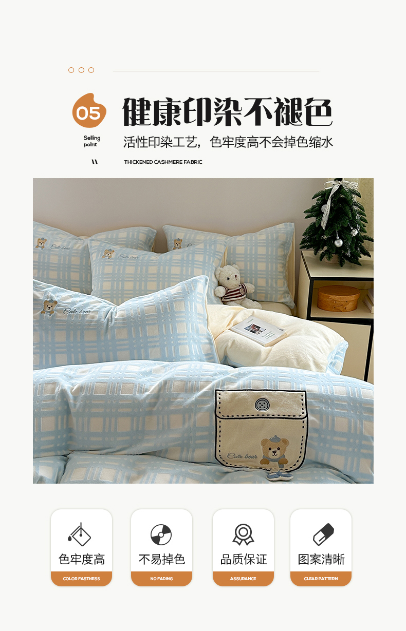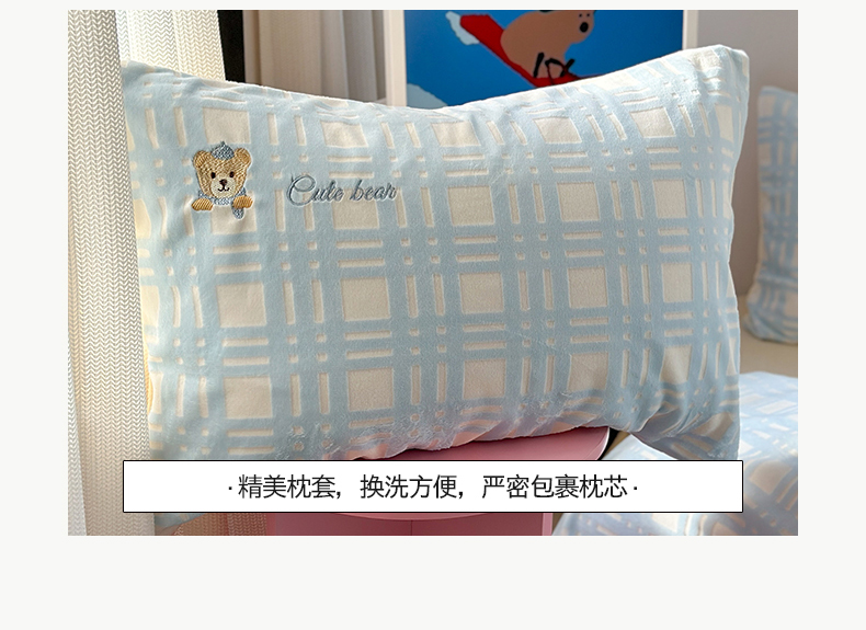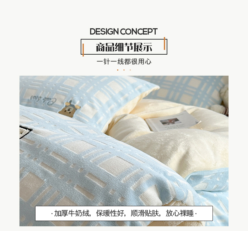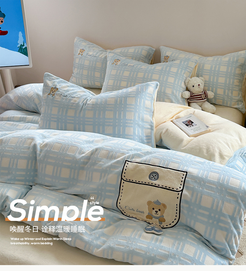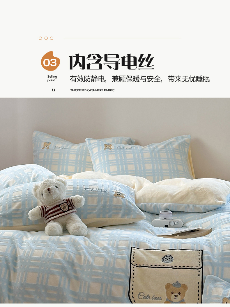 商品名称:桃子家居 2024新款A类ins博主小红书刺绣贴布绣立体高级工艺烂花雕花牛奶绒系列四件套 绒刺绣-芝士熊