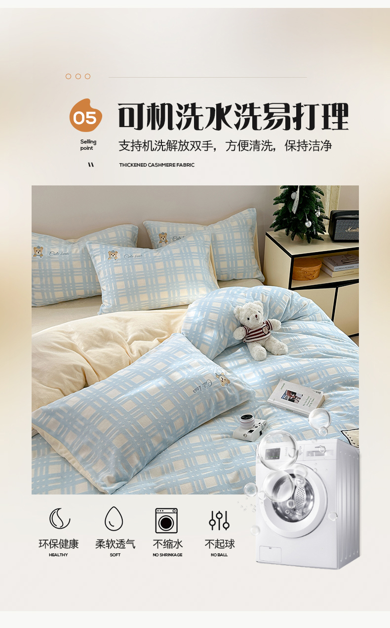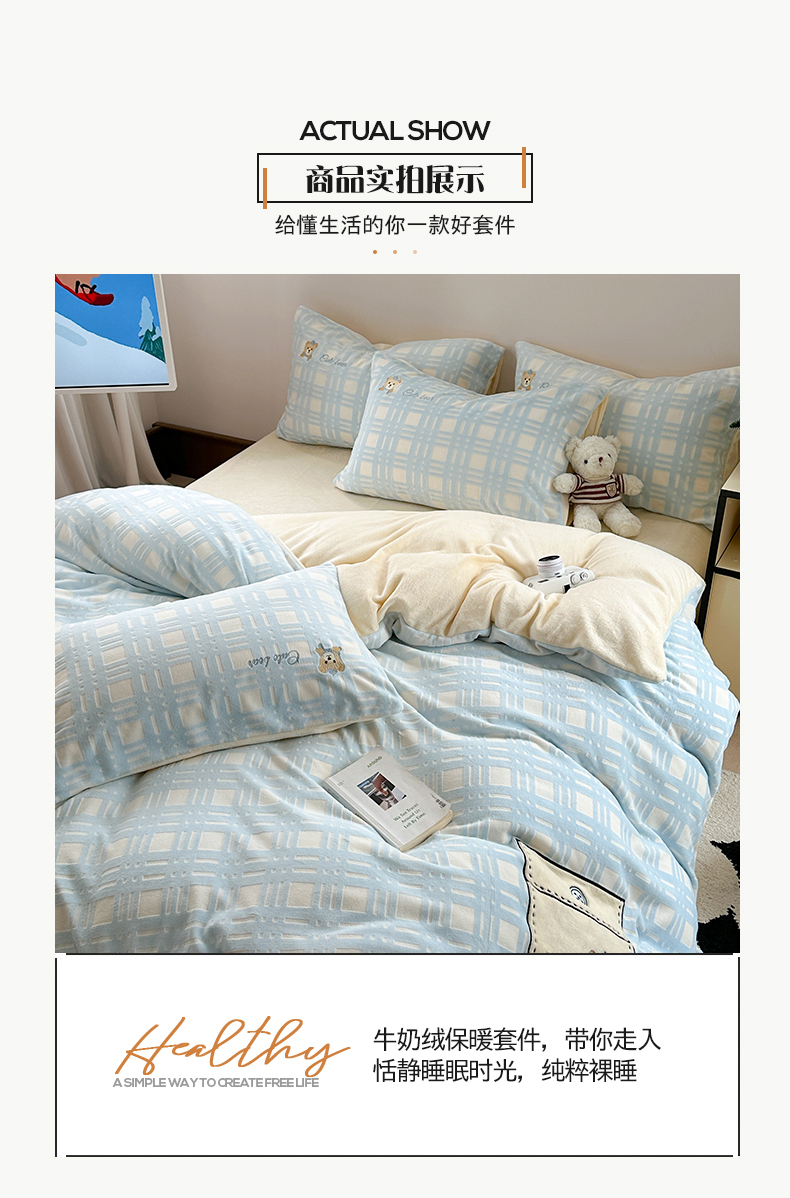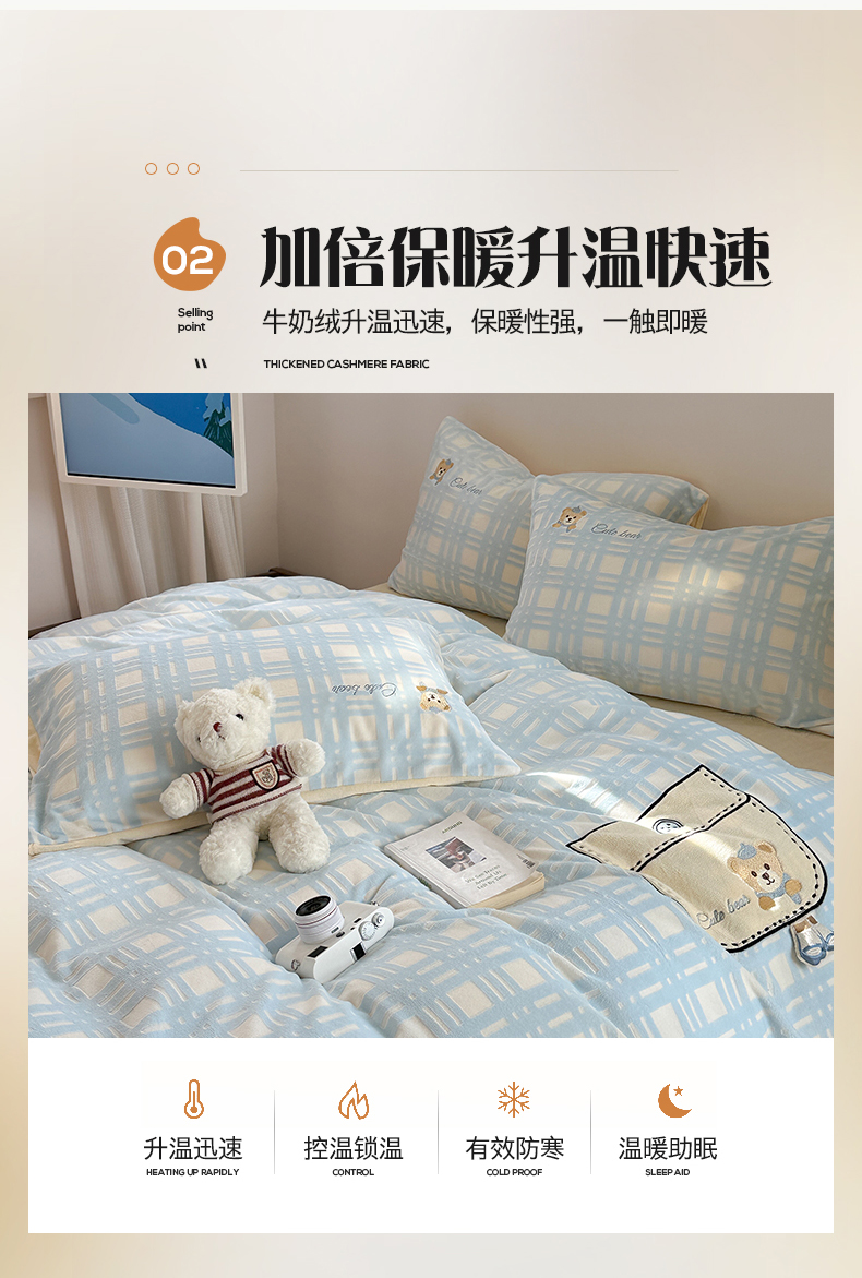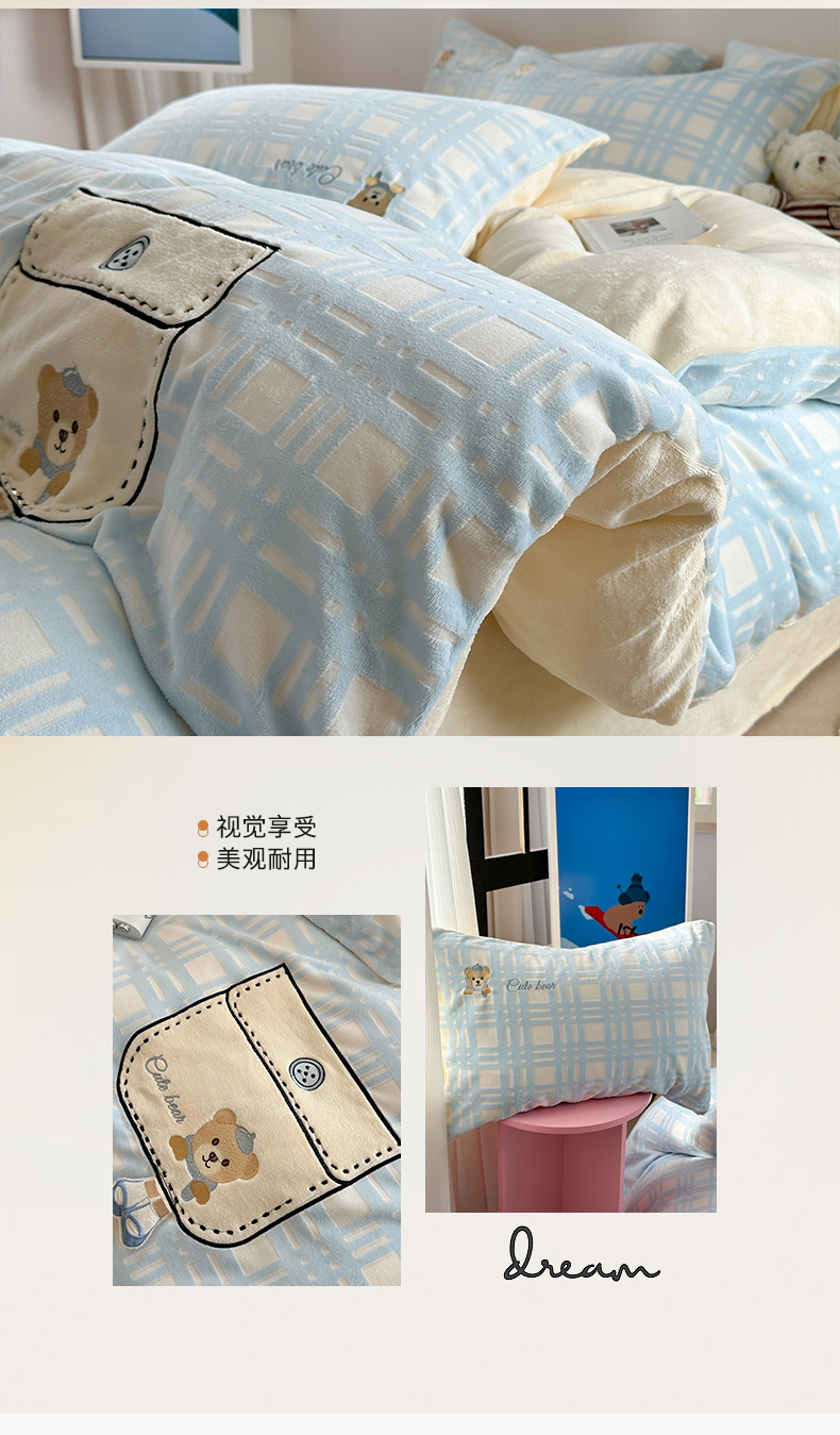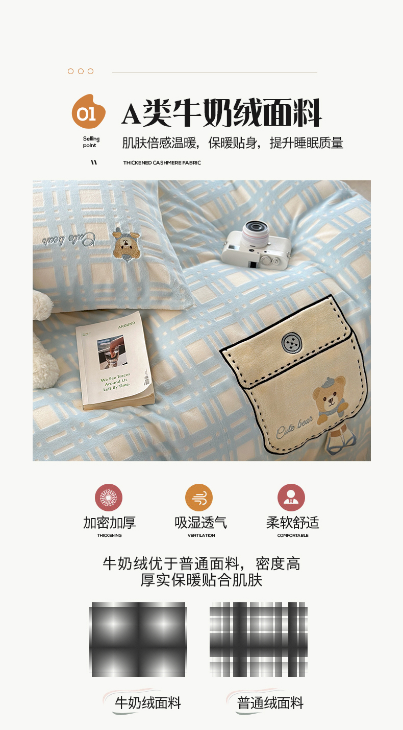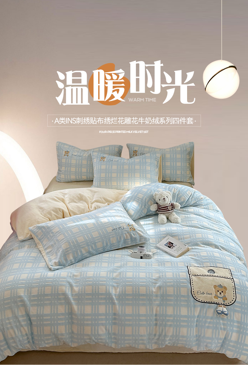 桃子家居 2024新款A类ins博主小红书刺绣贴布绣立体高级工艺烂花雕花牛奶绒系列四件套 绒刺绣-芝士熊
