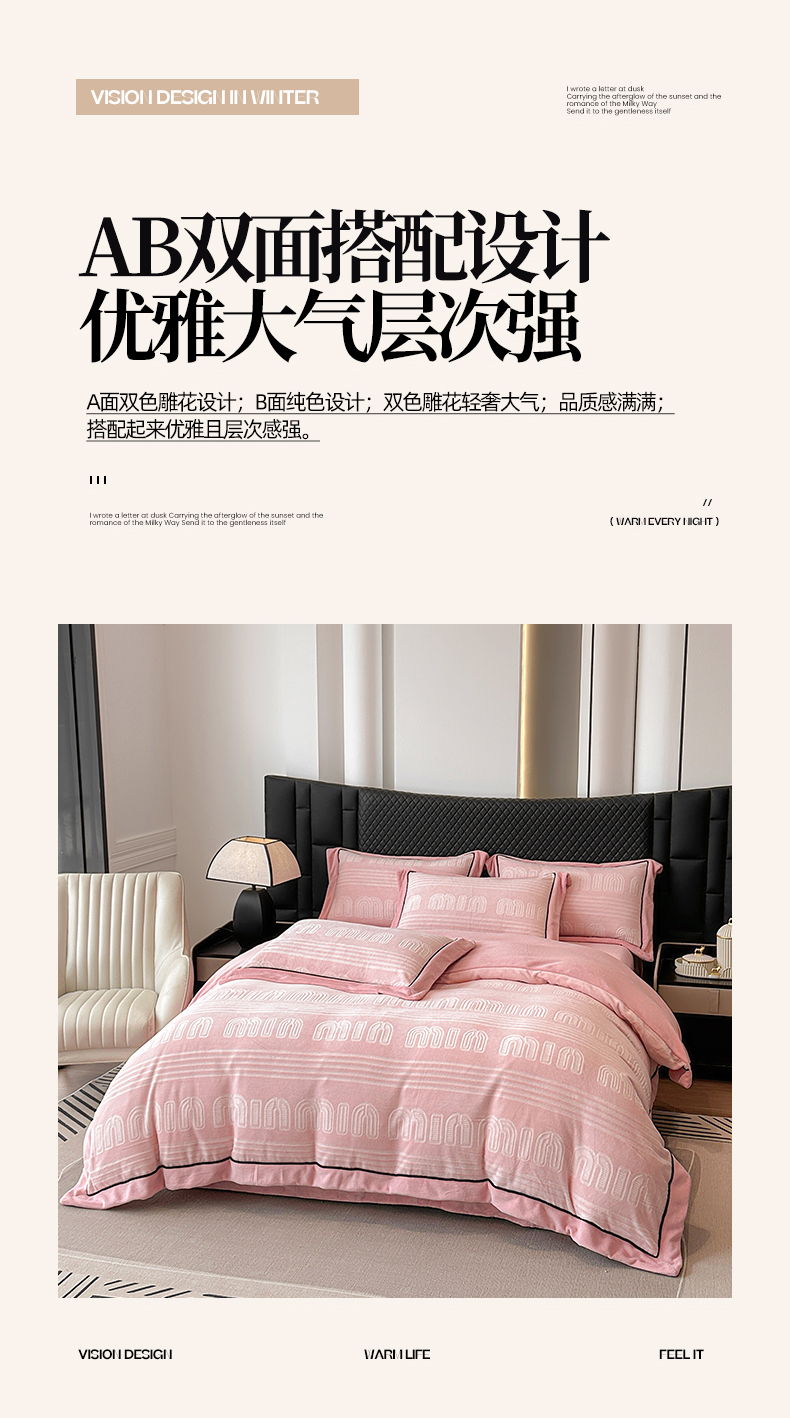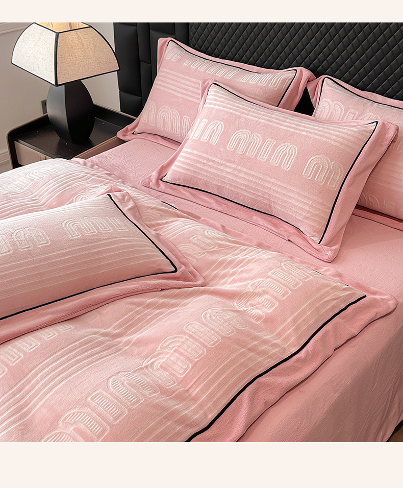 网客家纺 2024新款牛奶绒双色雕花四件套 芬妮