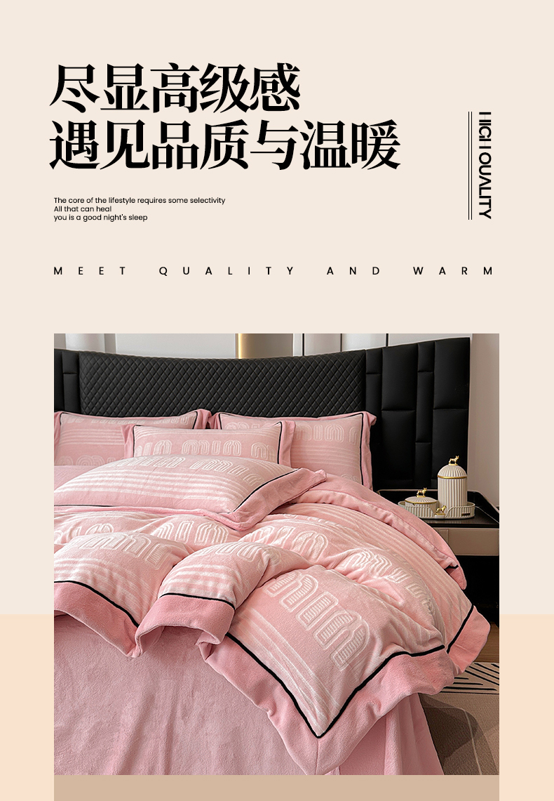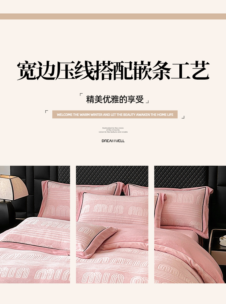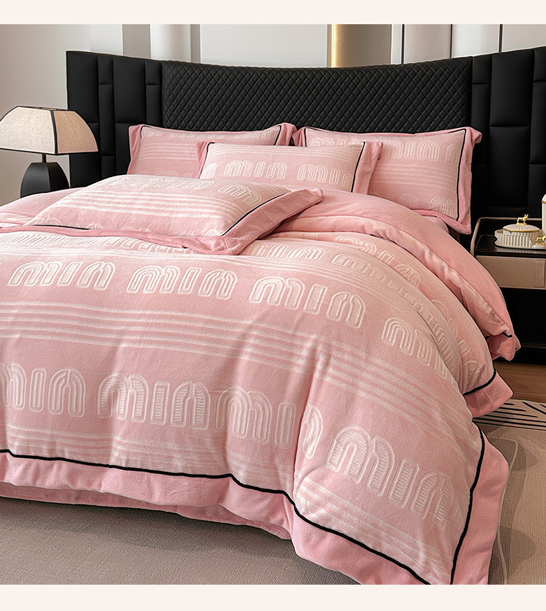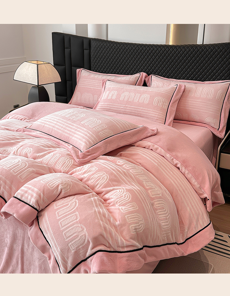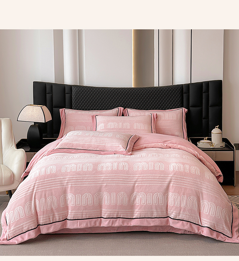 商品名称:网客家纺 2024新款牛奶绒双色雕花四件套 芬妮
