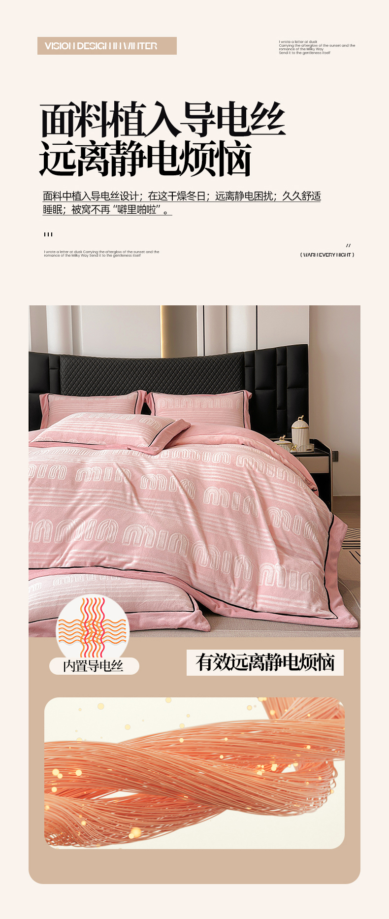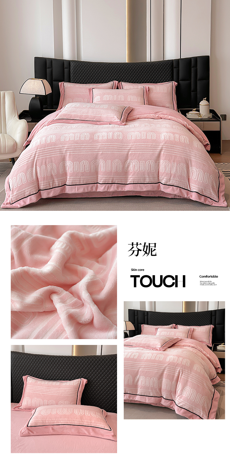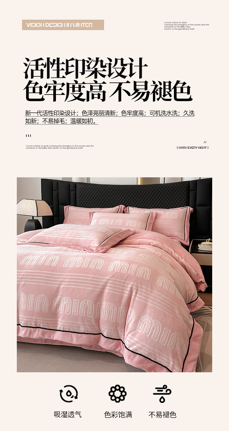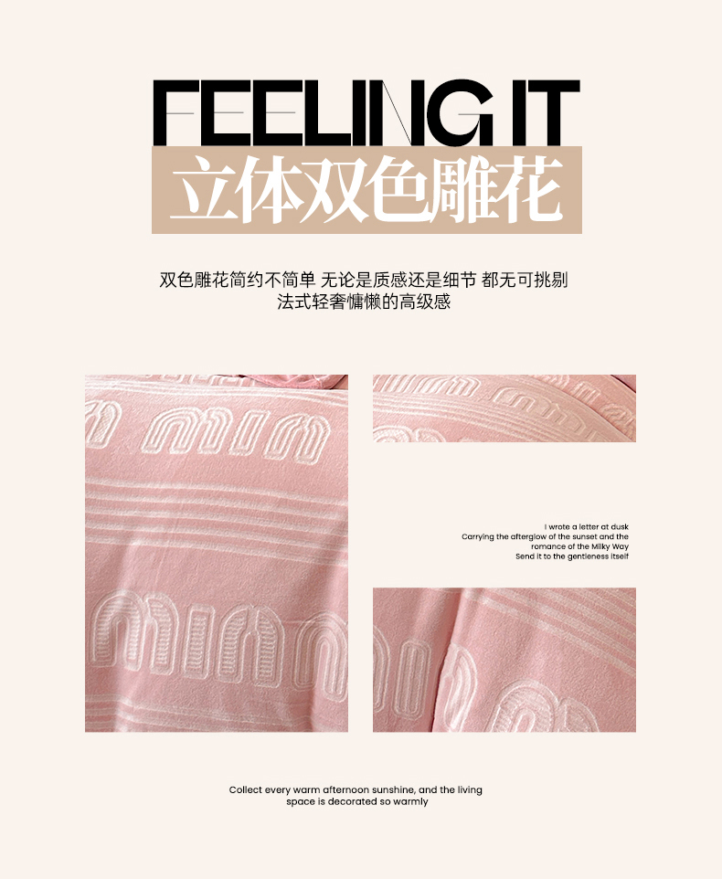 商品名称:网客家纺 2024新款牛奶绒双色雕花四件套 芬妮