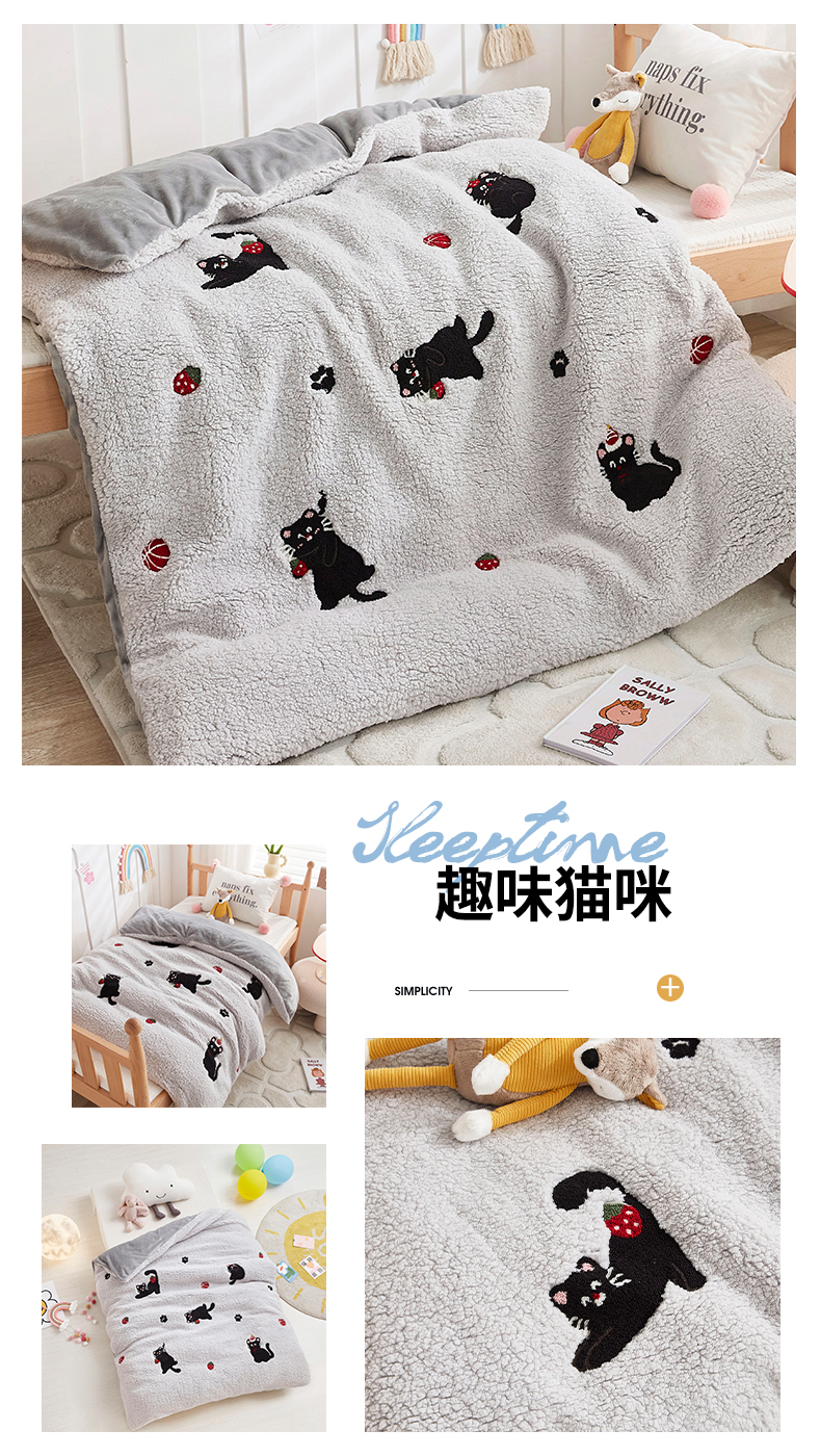 商品名称:丝涟家居 2025新款羊羔绒牛奶绒毛巾绣儿童脱卸被子 趣味猫咪