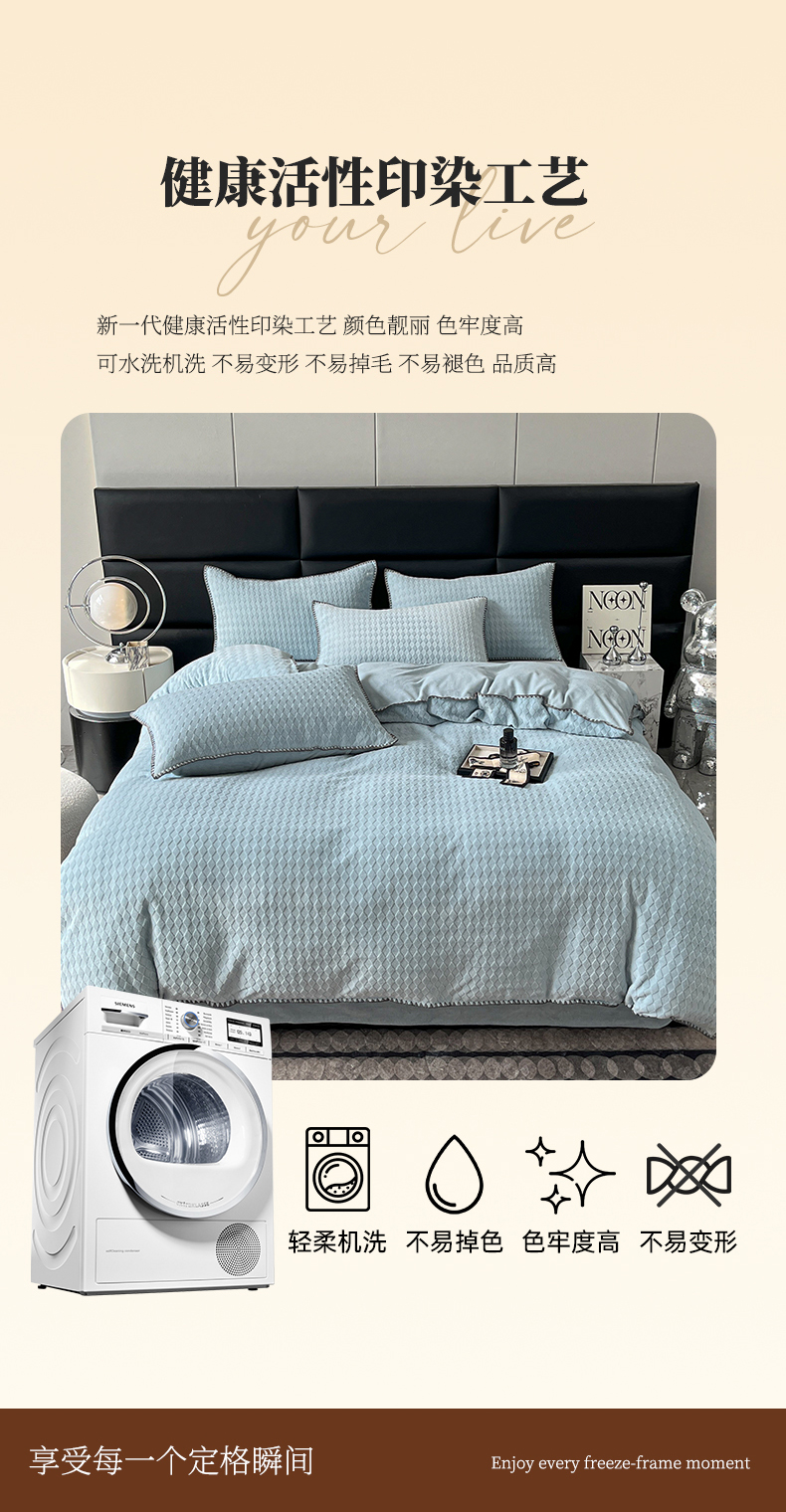 (总)菡宝 2025新款全棉纯棉色织小提花四件套支持定制定做尺寸,暴力熊卡其,暴力熊绿,大方块灰,大方块紫,千鸟格白,千鸟格灰,千鸟格绿,四叶草卡其