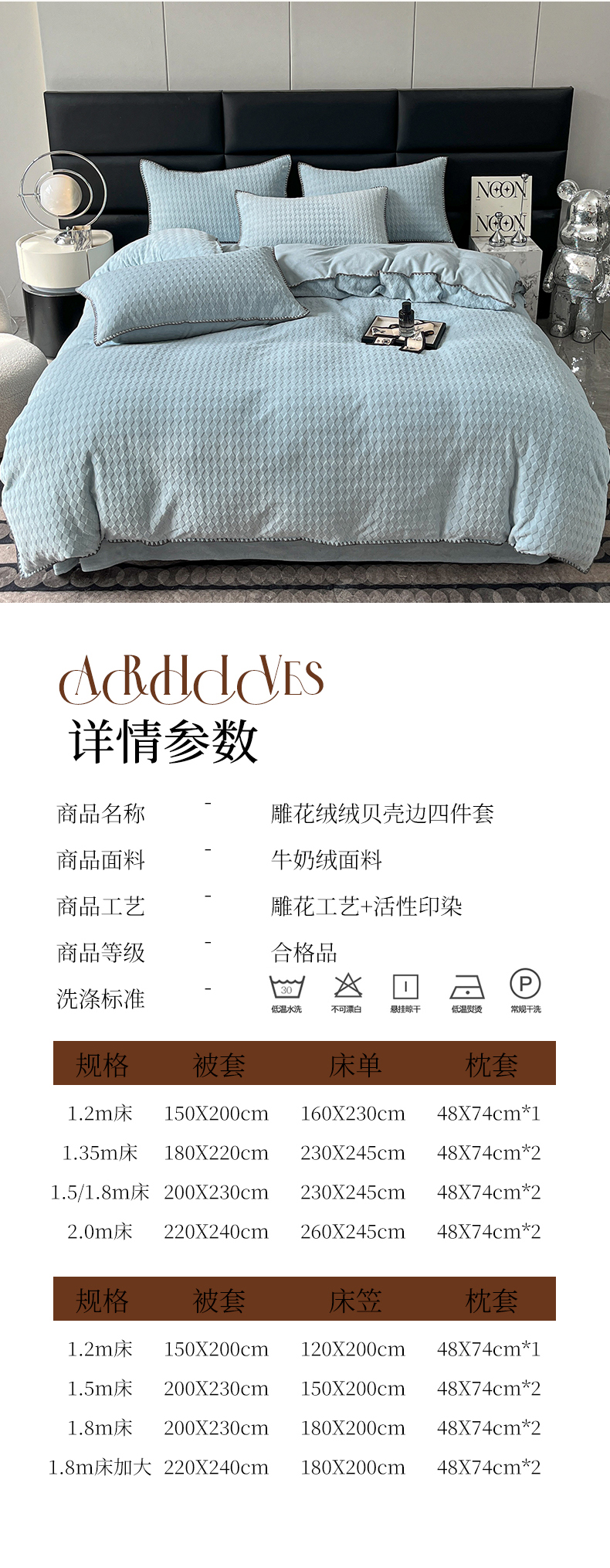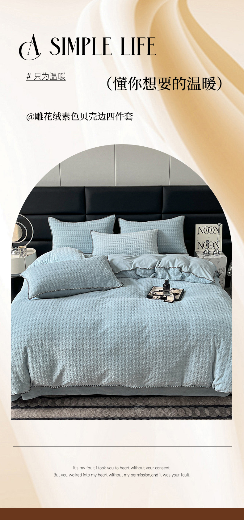 (总)菡宝2025新款工艺款贝壳边雕花绒简约良品风牛奶绒四件套-梵西系列 支持定做定制尺寸,梵西灰,梵西紫,米娅灰,米娅粉,洛璃灰,洛璃紫
