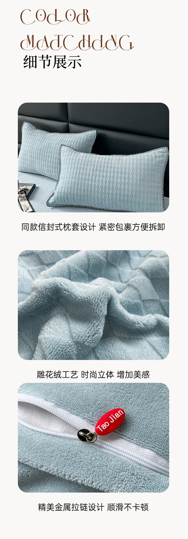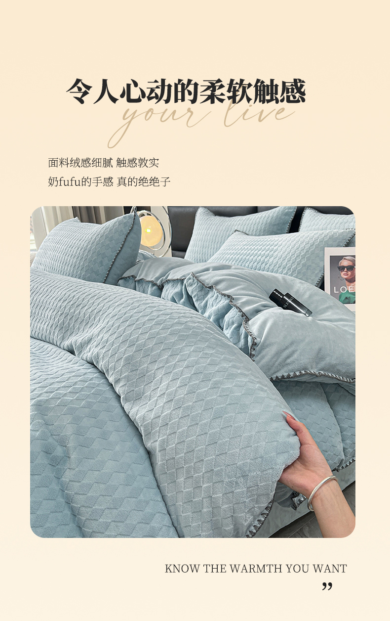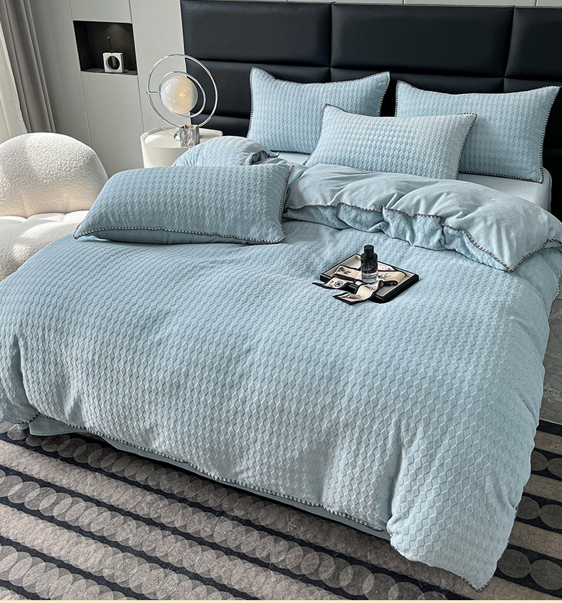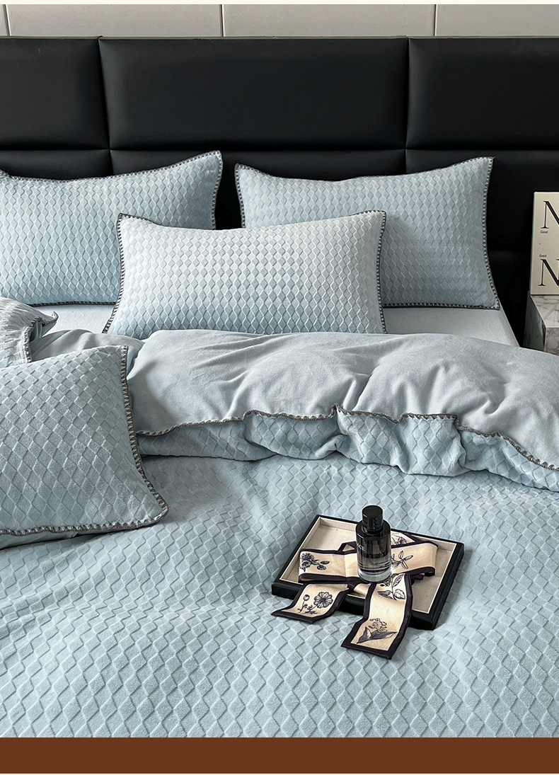 商品名称:菡宝 2024新款贝壳边无印风230g雕花绒单被套 菱形格-雾兰