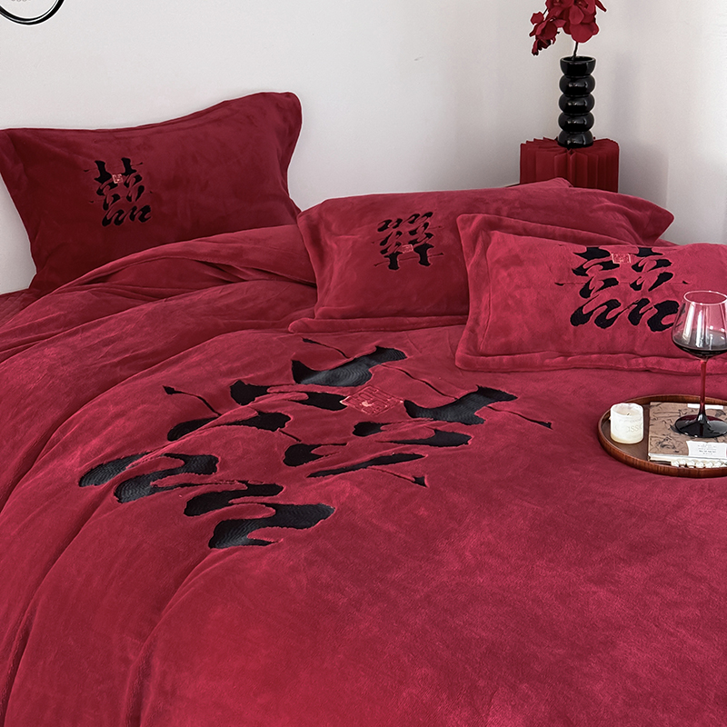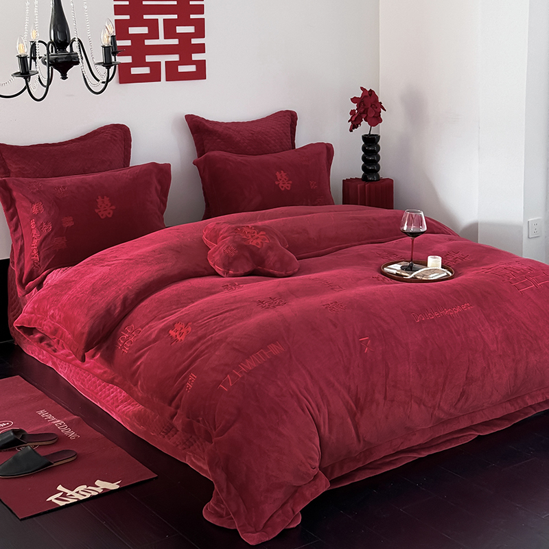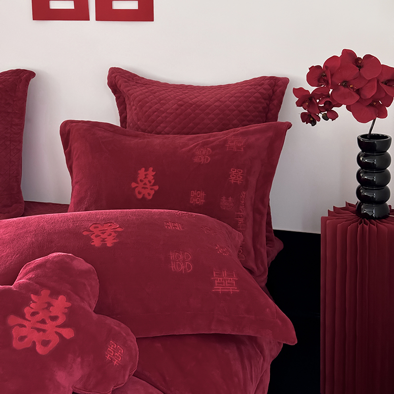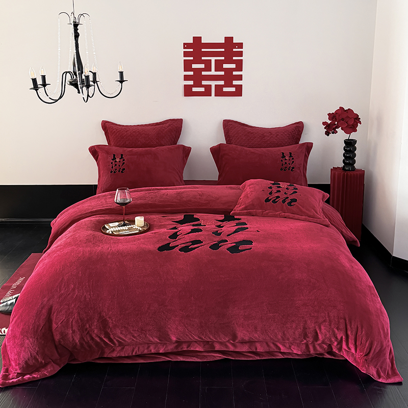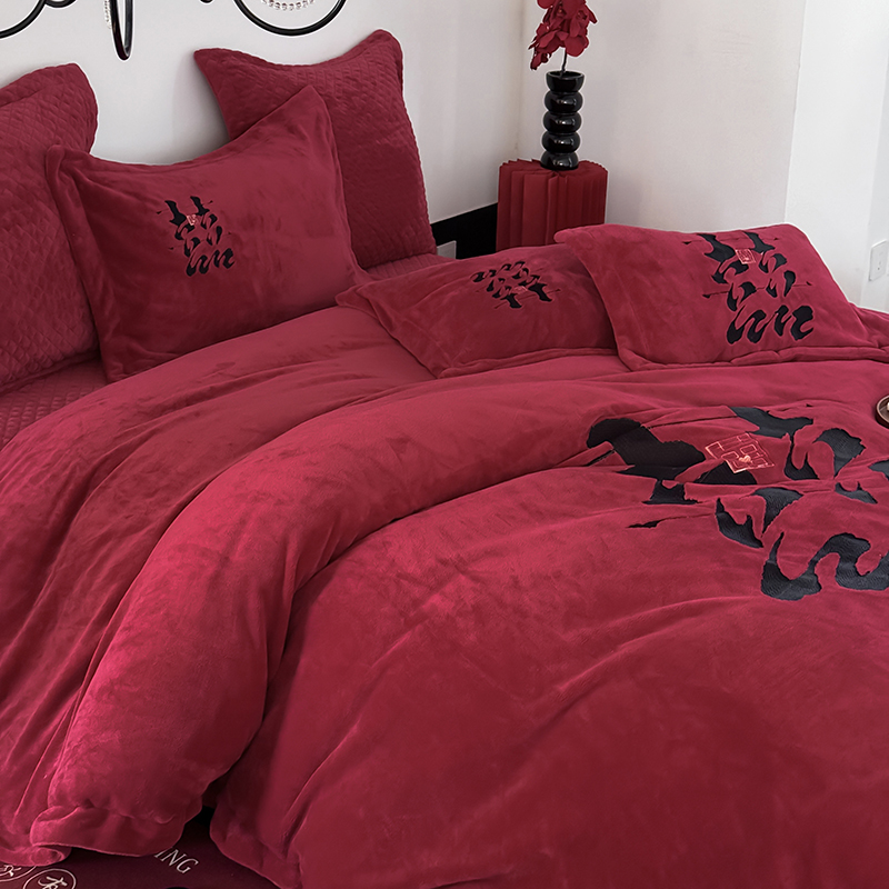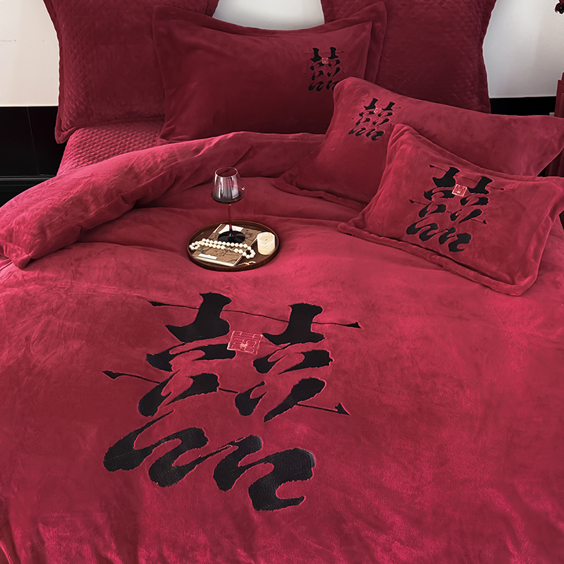 当前位置: 91家纺网 > 商品网购 > 床品套件 > 四件套 > 婚庆四件套 > (总)江涞 2024新款高克重牛奶绒婚庆刺绣七件套