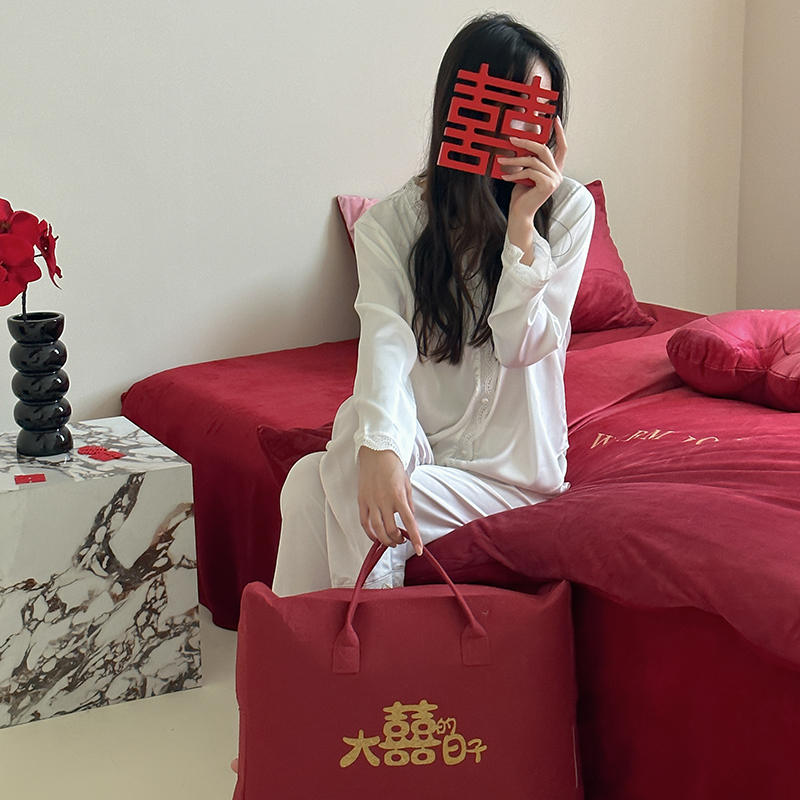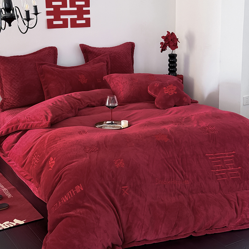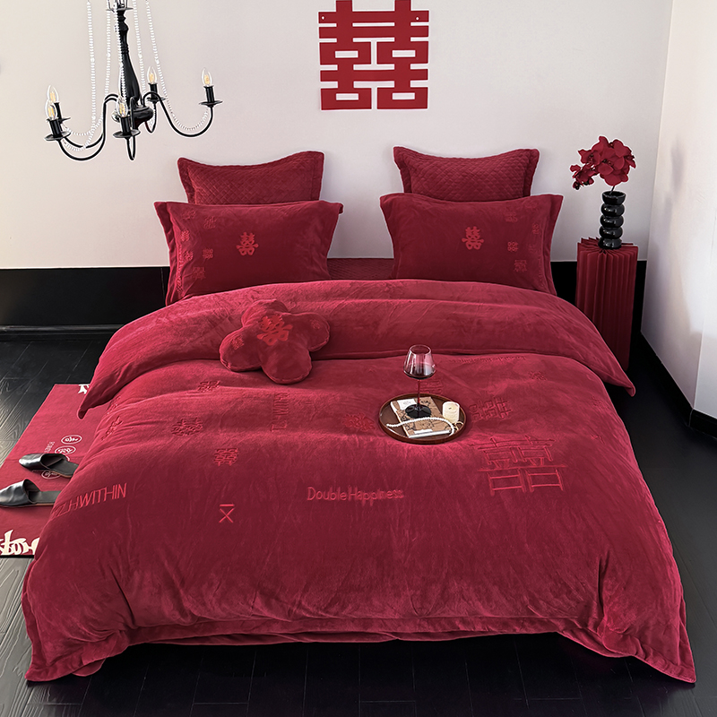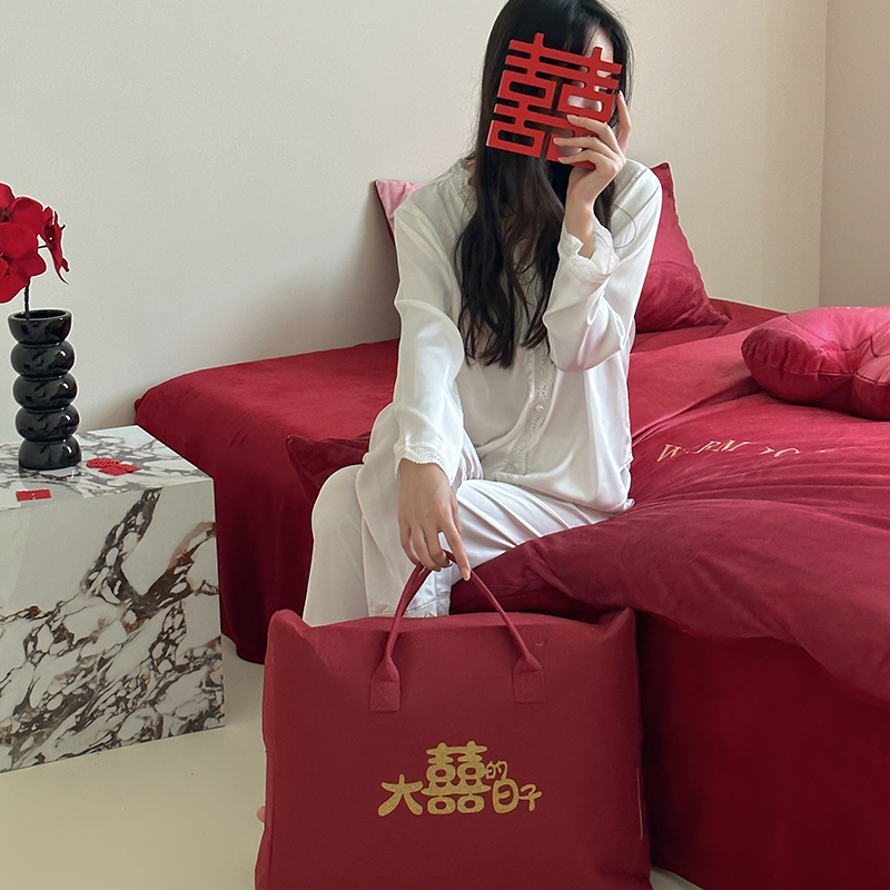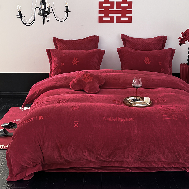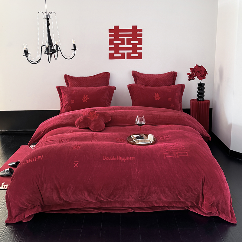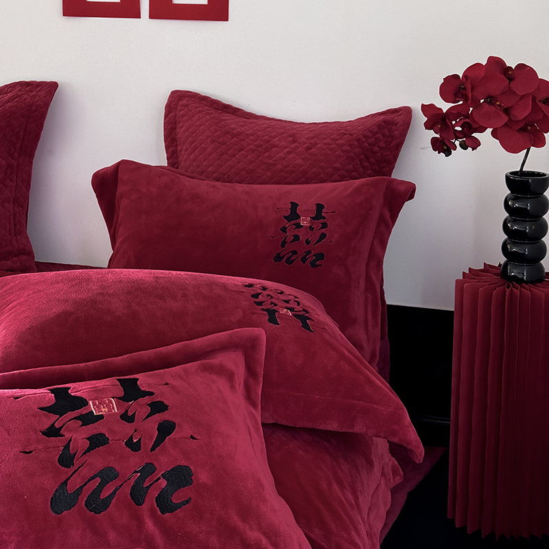 当前位置: 91家纺网 > 商品网购 > 床品套件 > 四件套 > 婚庆四件套 > (总)江涞 2024新款高克重牛奶绒婚庆刺绣七件套