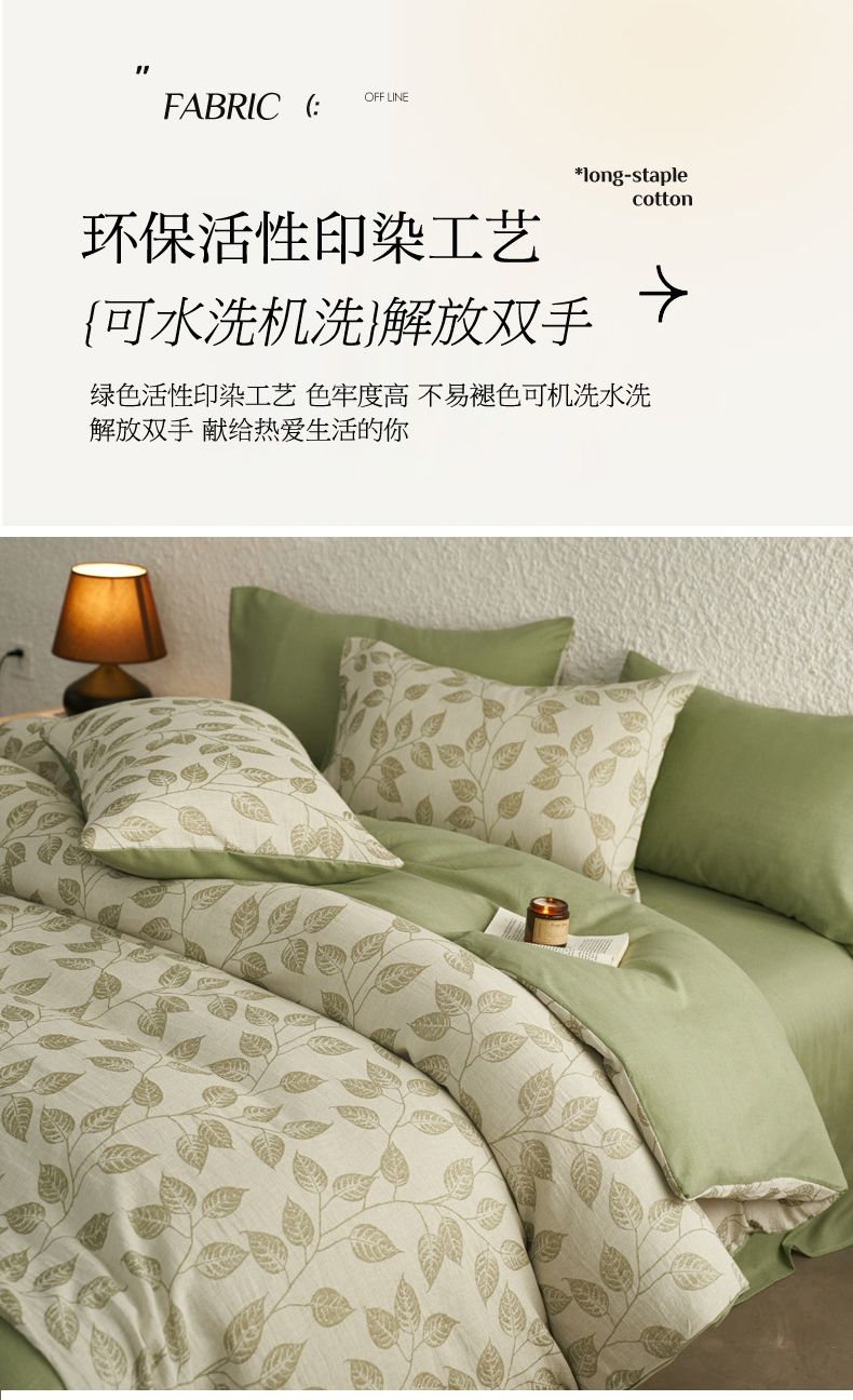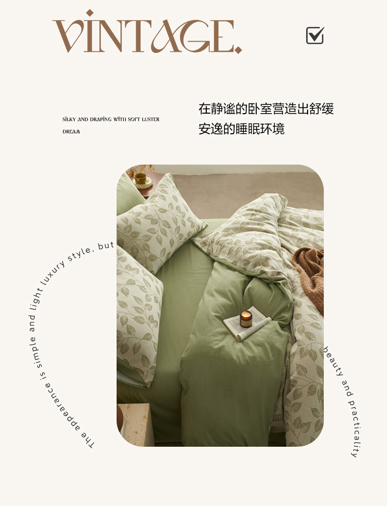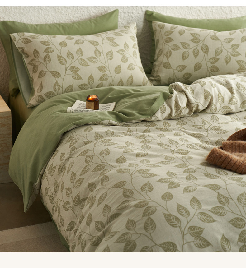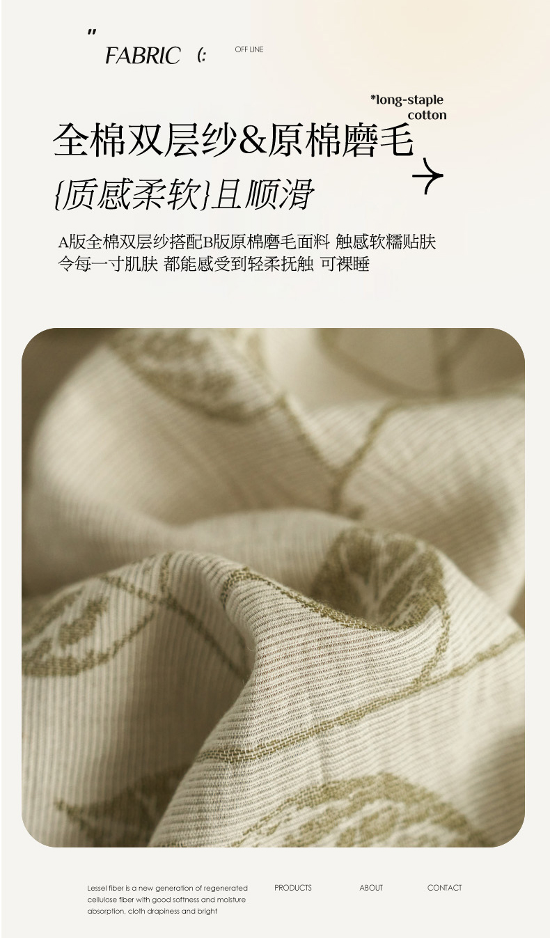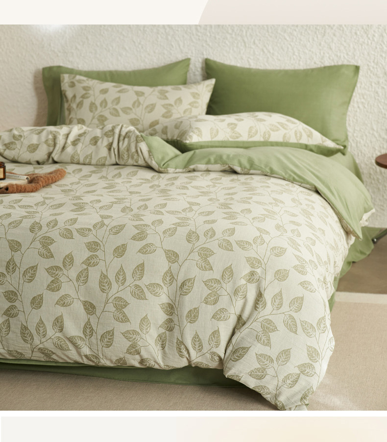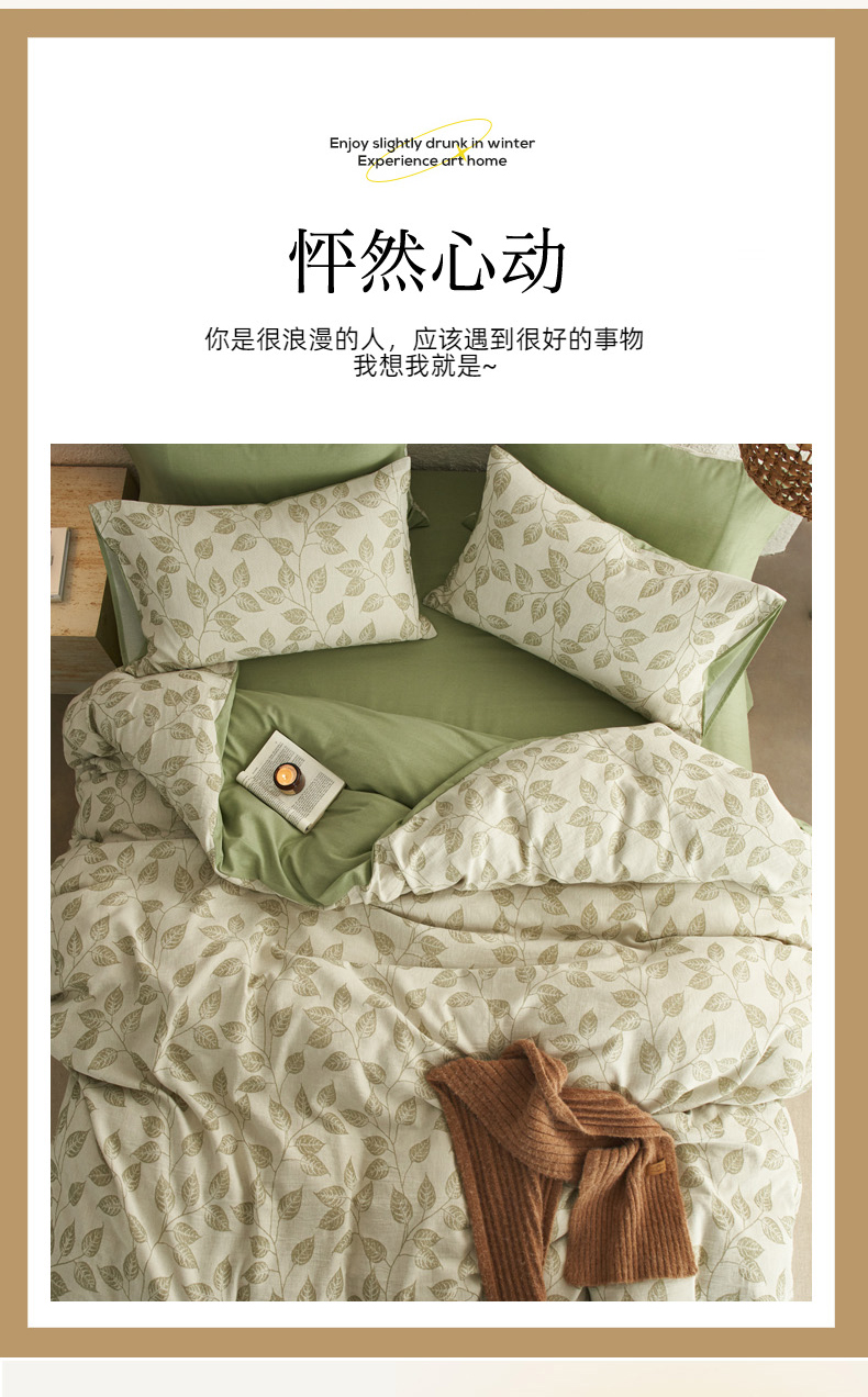 当前位置: 91家纺网 > 商品网购 > 床品套件 > 四件套 > 普通磨毛四件套 > 慕尚家纺 2025新款磨毛提花双层纱四件套 叶韵绿