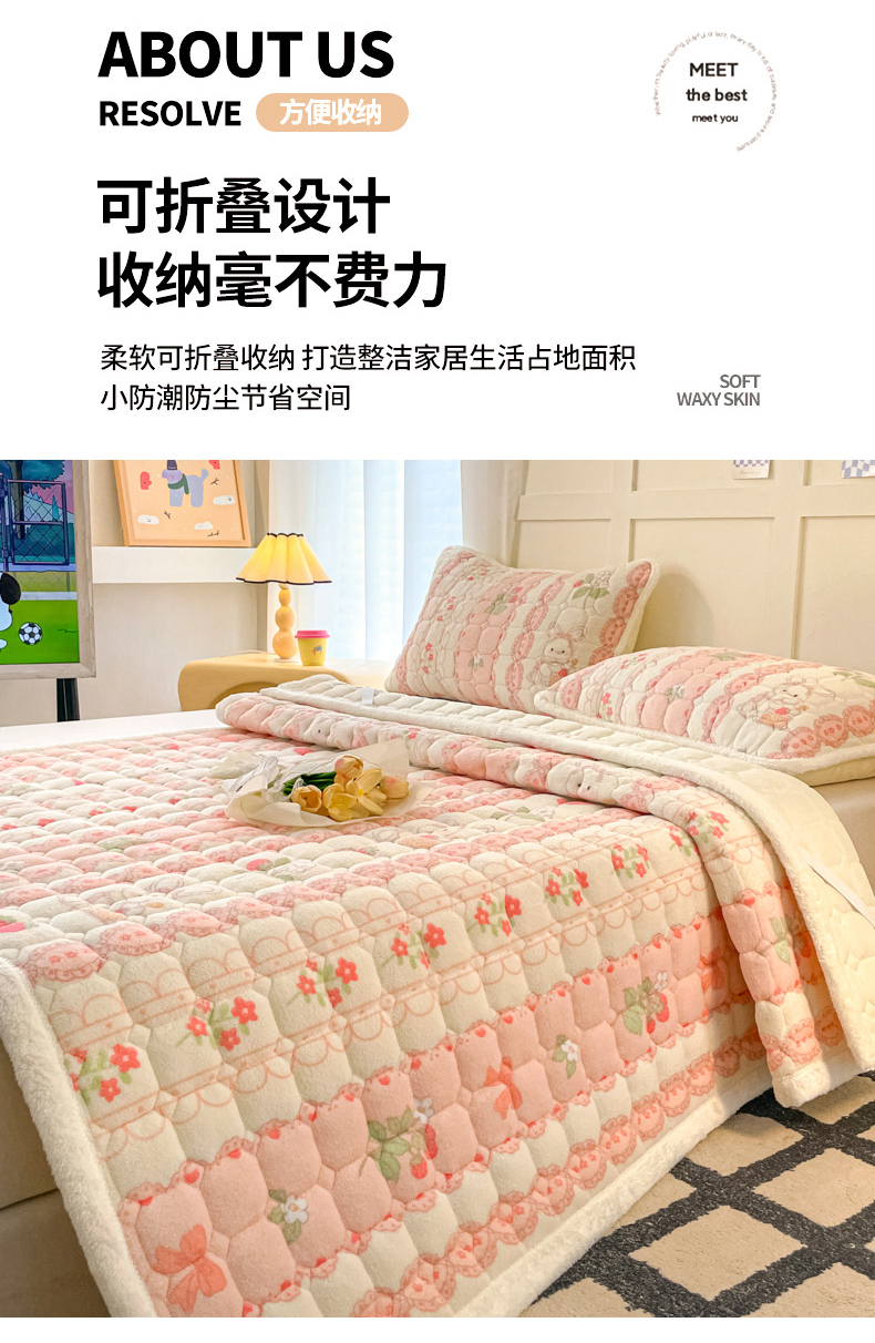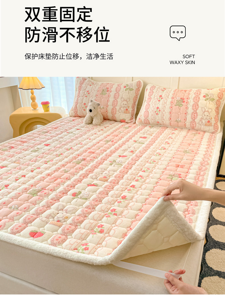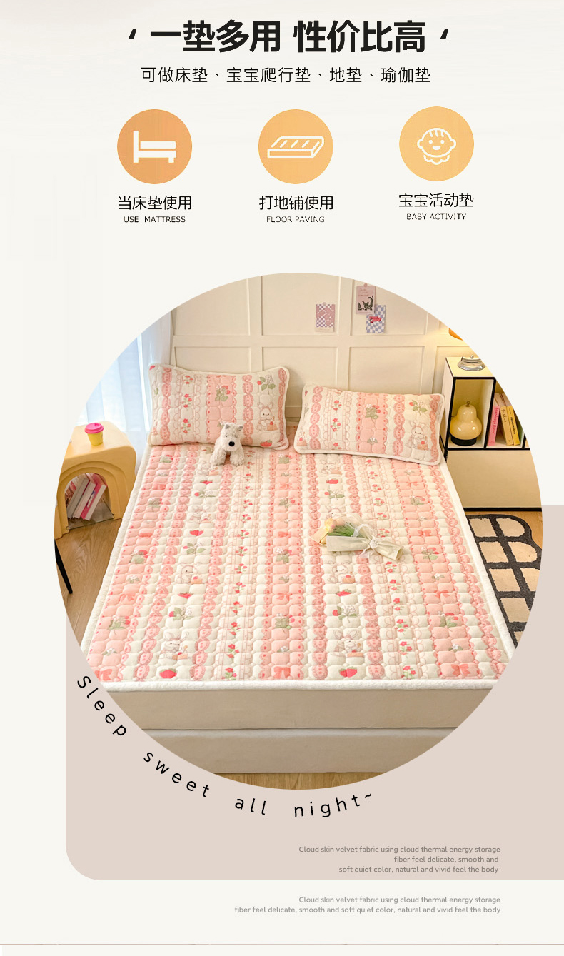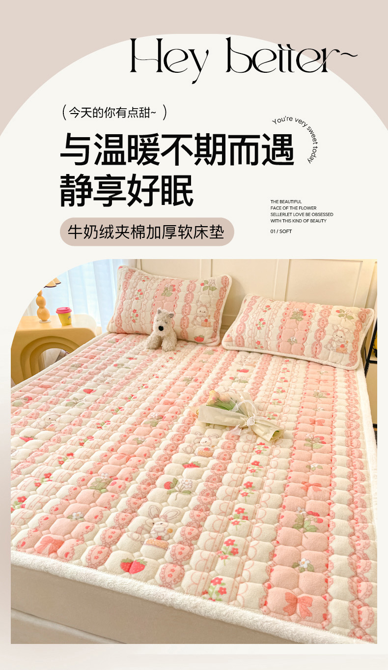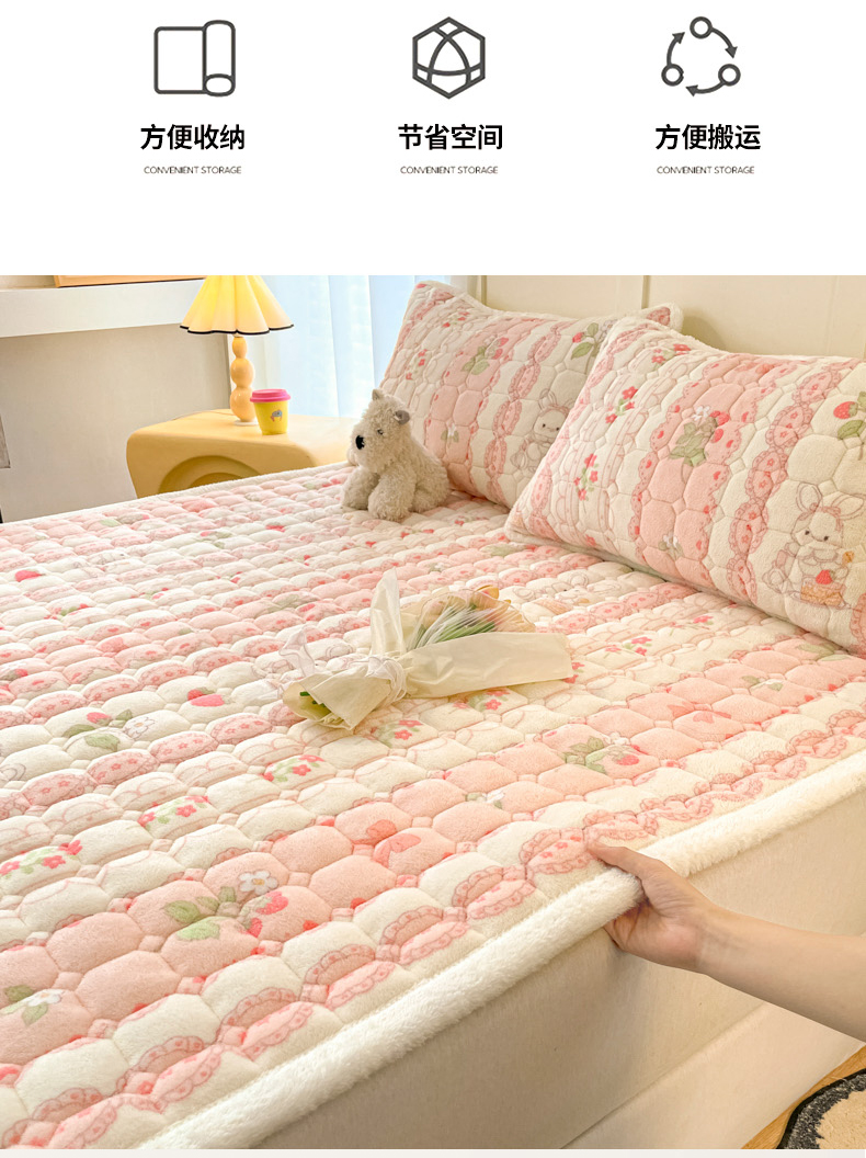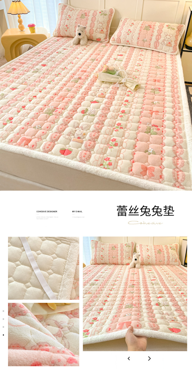 当前位置: 91家纺网 > 商品网购 > 床垫/床褥 > 普通床垫 > 柒月家居 2024新款牛奶绒加厚卡通印花床垫床褥 蕾丝兔兔垫