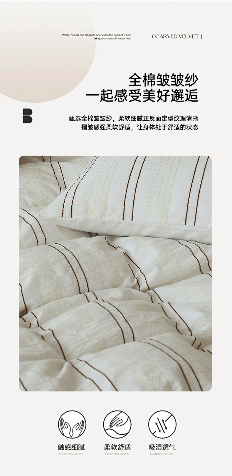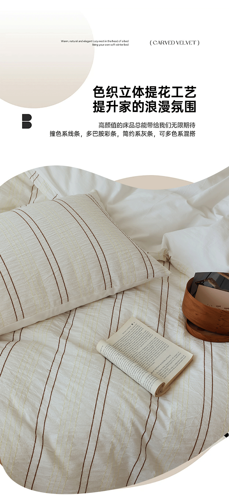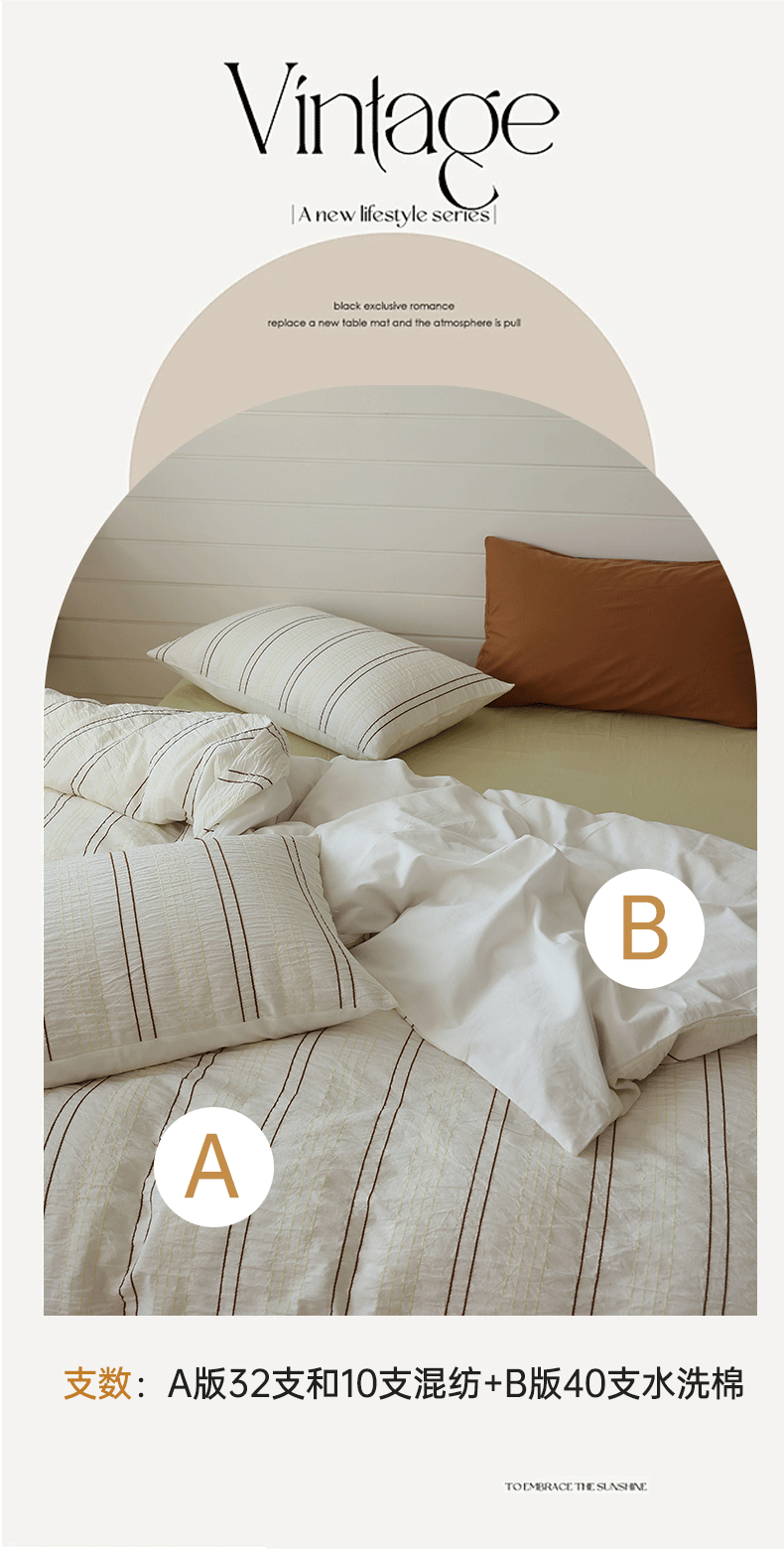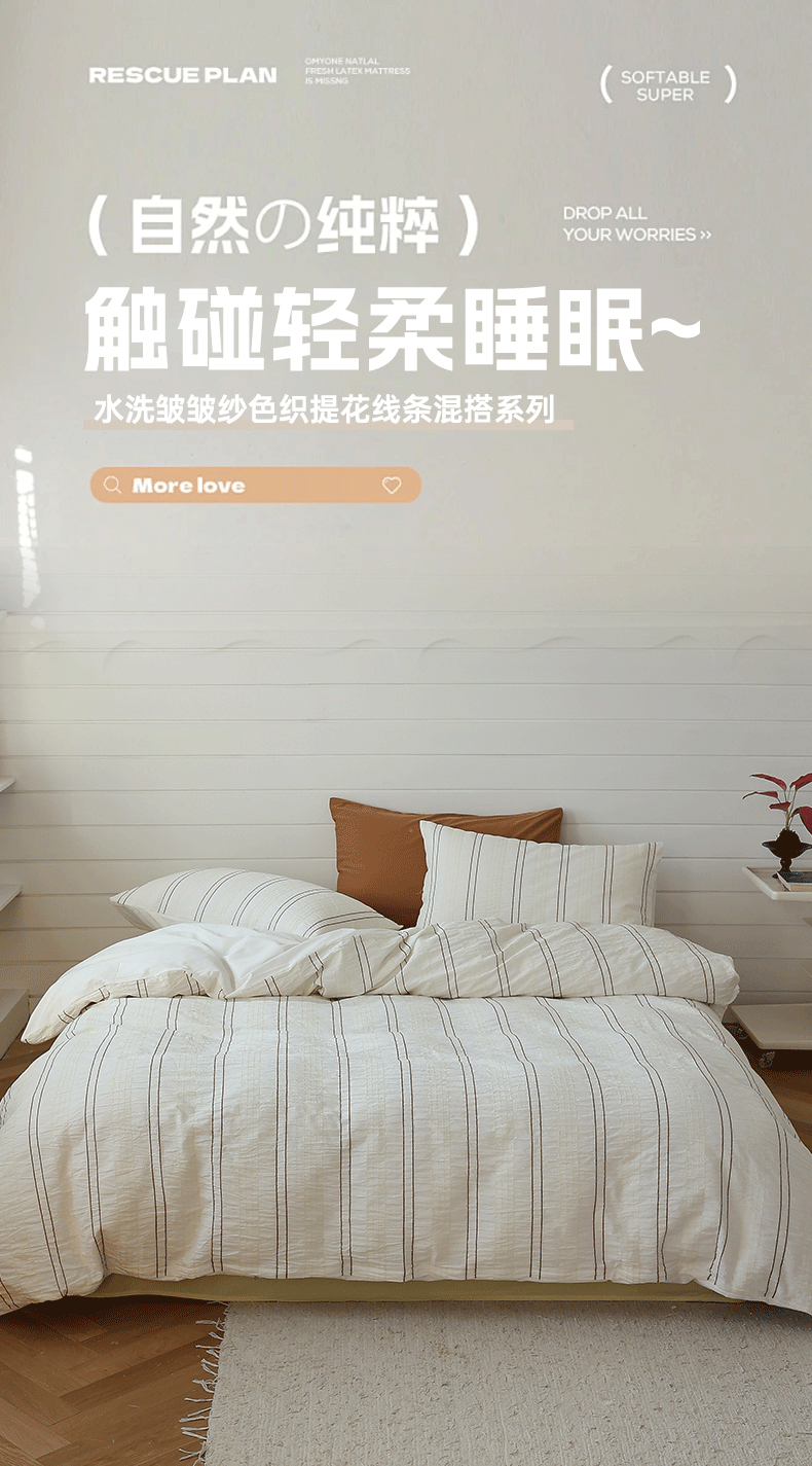 当前位置: 91家纺网 > 商品网购 > 床品套件 > 四件套 > 水洗棉四件套 > 棉眠 2024新款水洗皱皱纱色织提花线条混搭系列四件套 咖黄细条配嫩黄