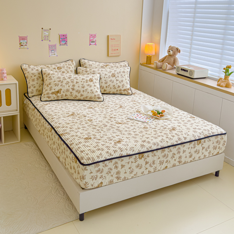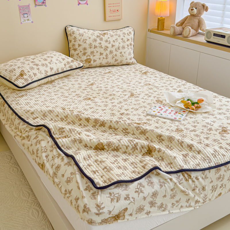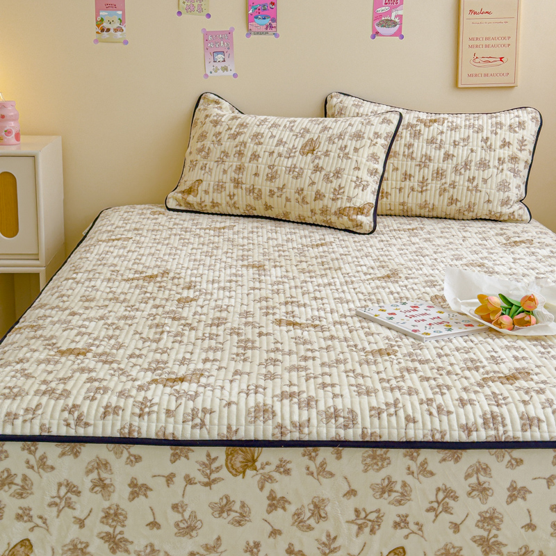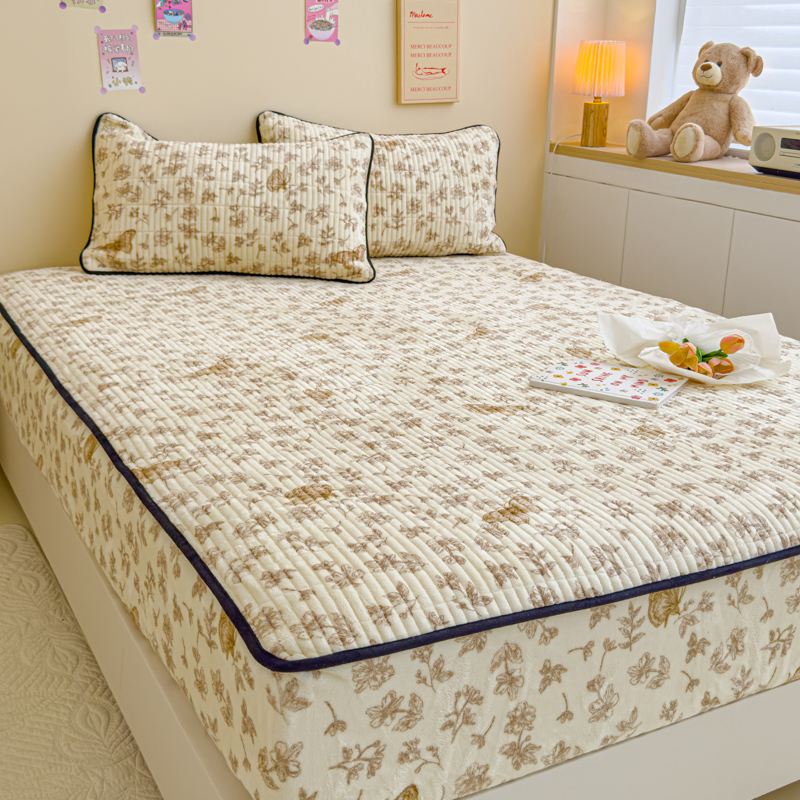 金丝鸟 2024新款牛奶绒夹棉床笠 飞花咖 夹棉床笠