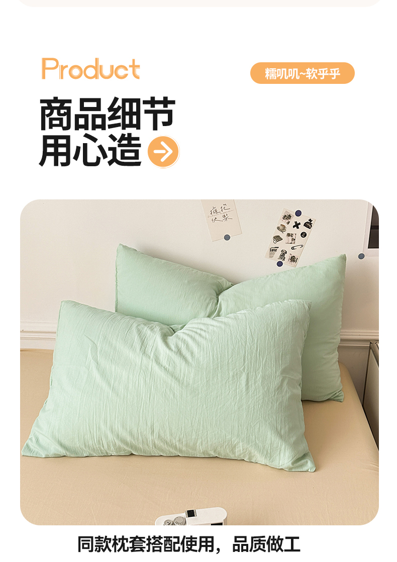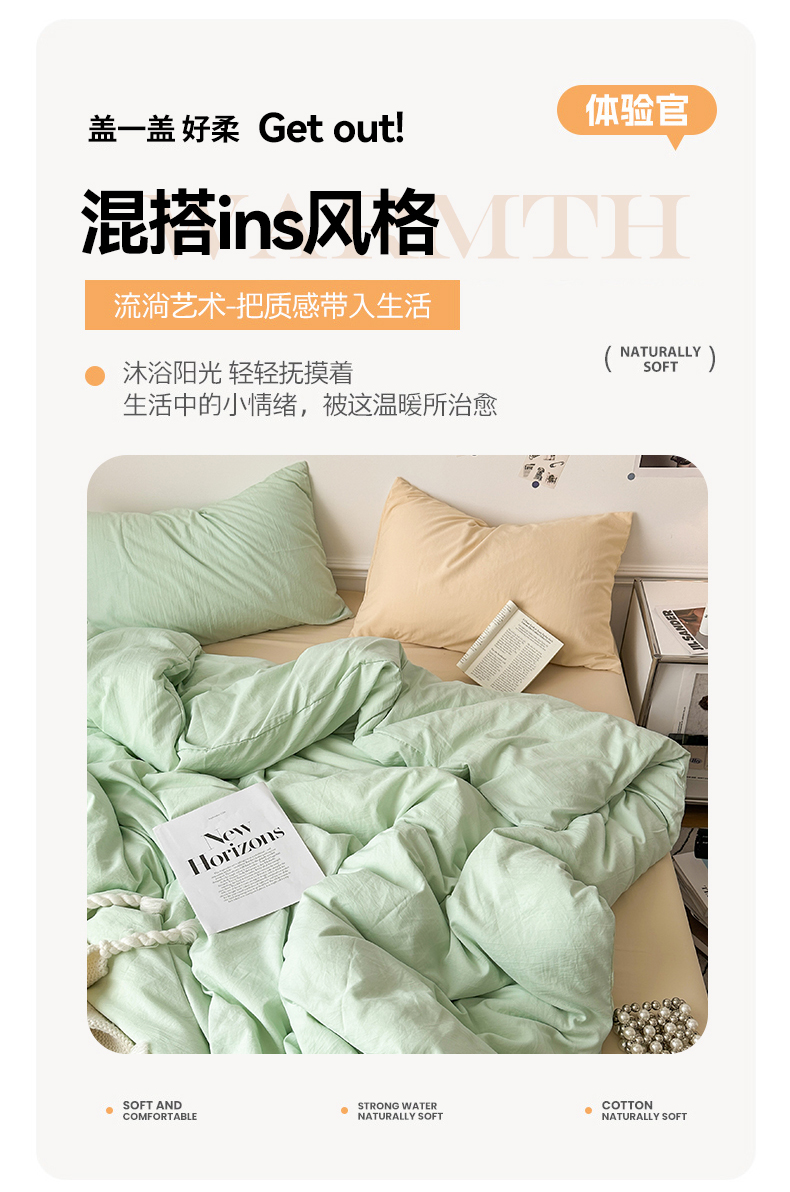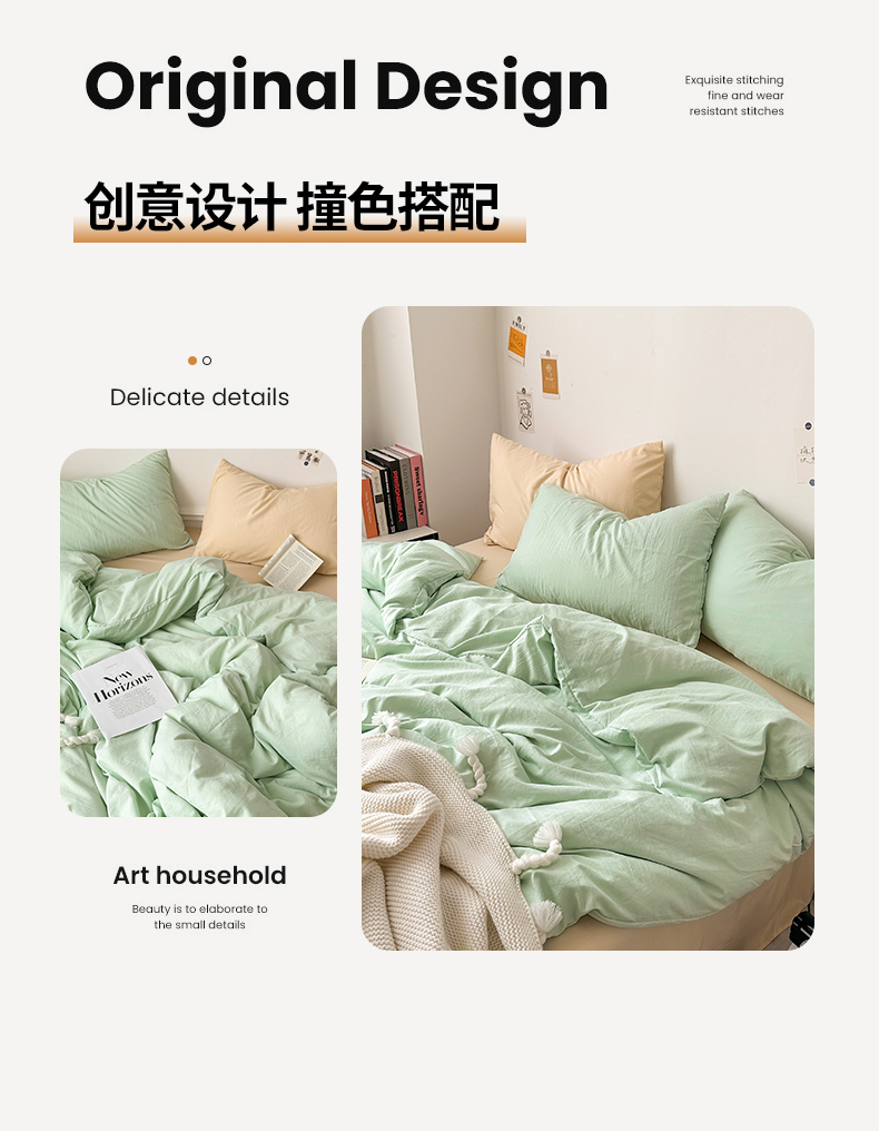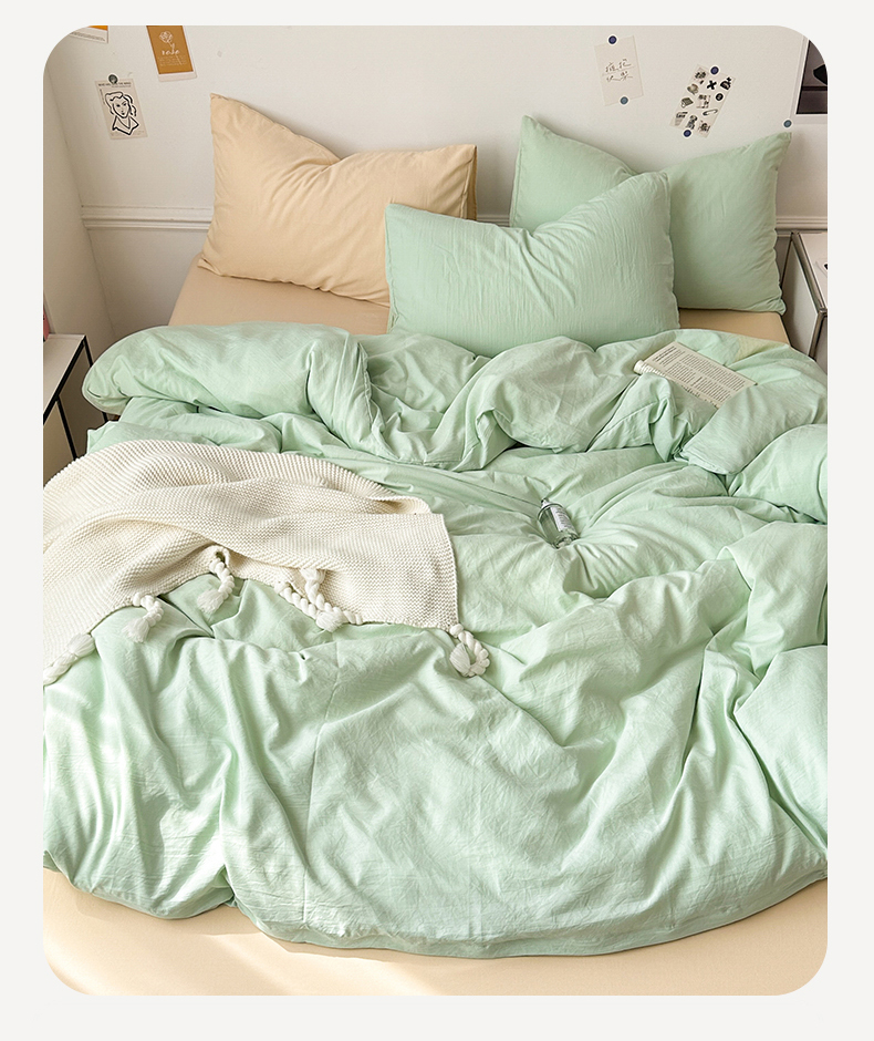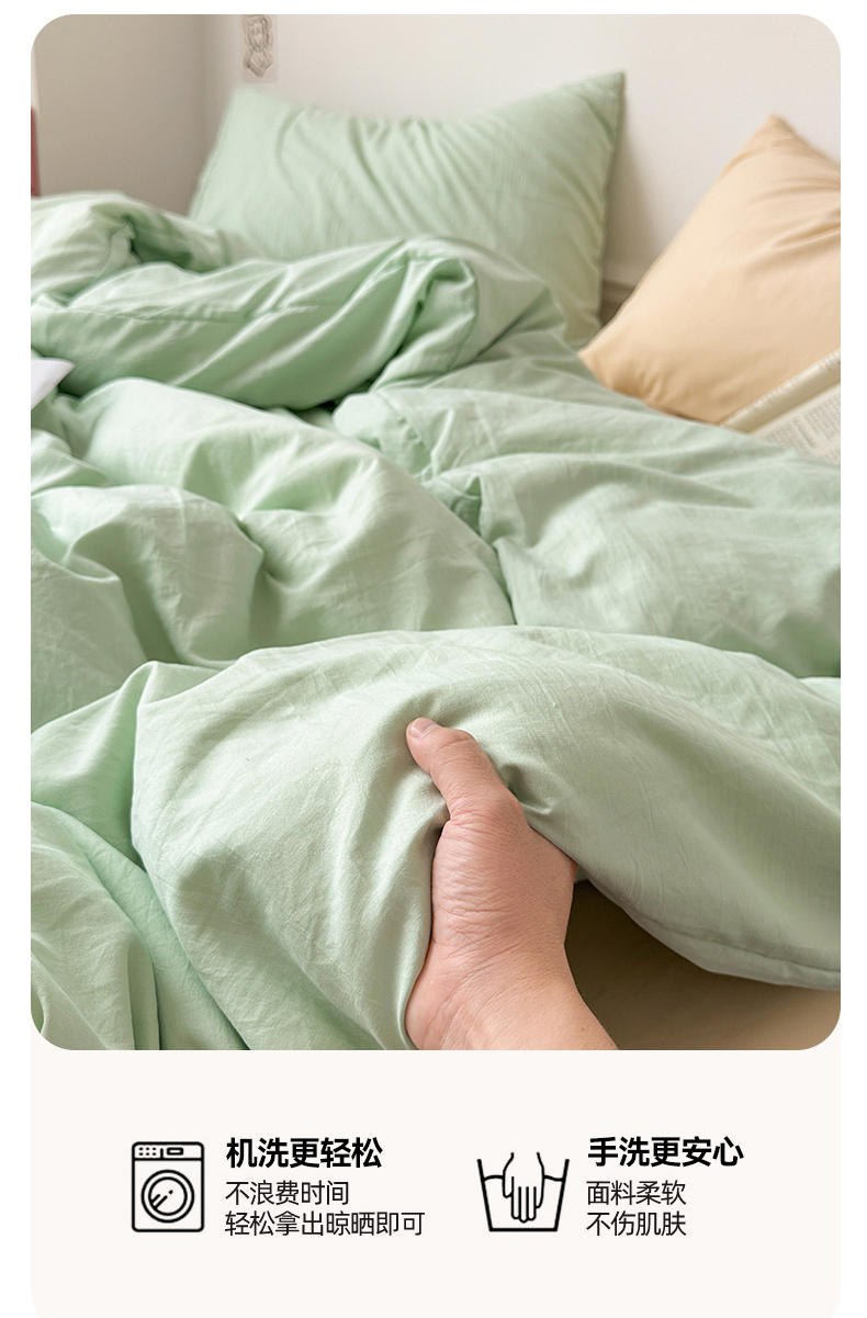 当前位置: 91家纺网 > 商品网购 > 床品套件 > 四件套 > 水洗棉四件套 > 多品家纺 2024新款超柔混搭水洗棉四件套 藻绿+米黄