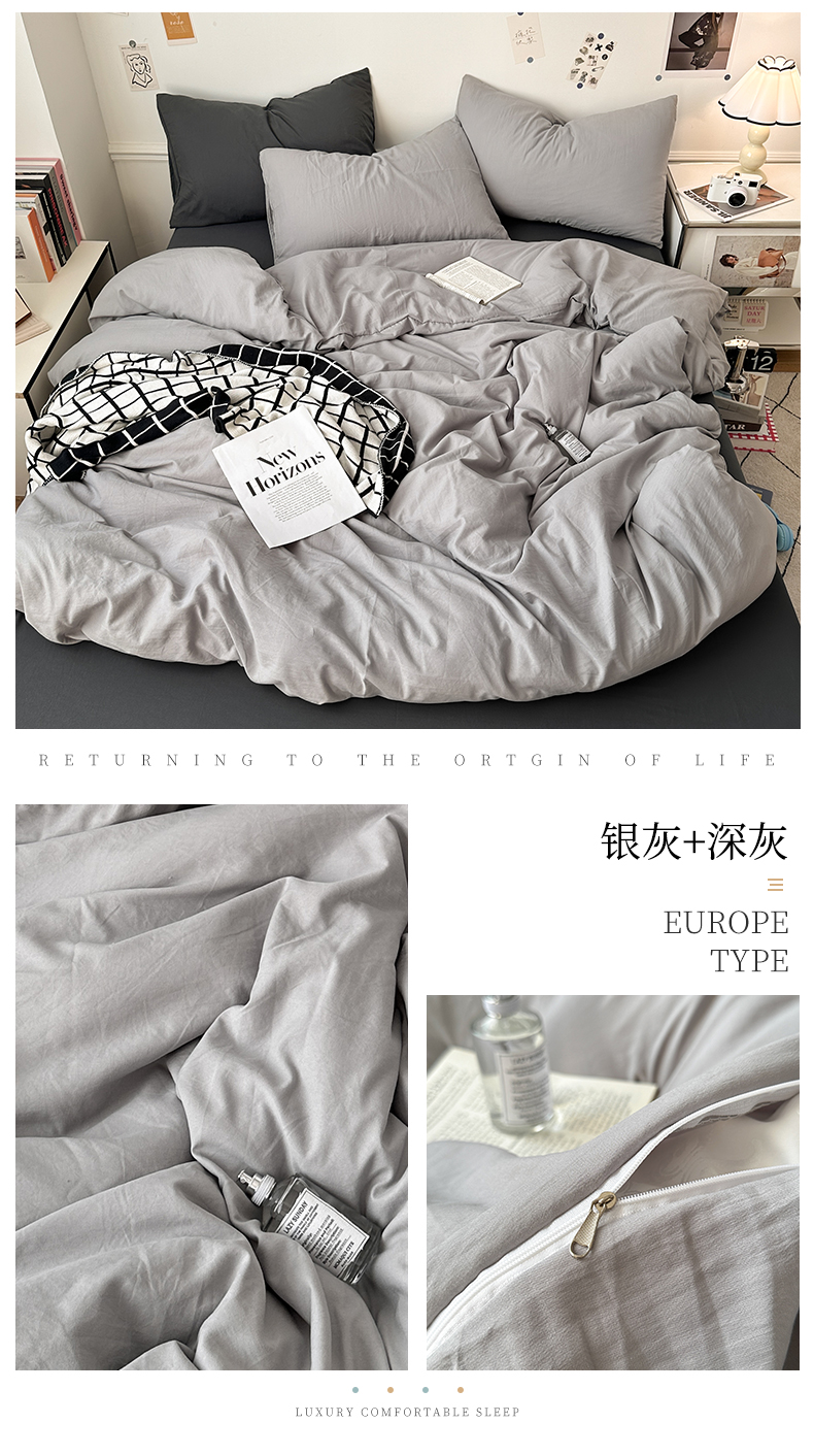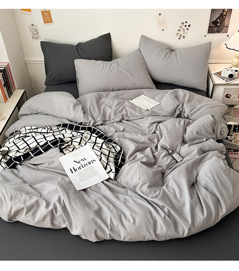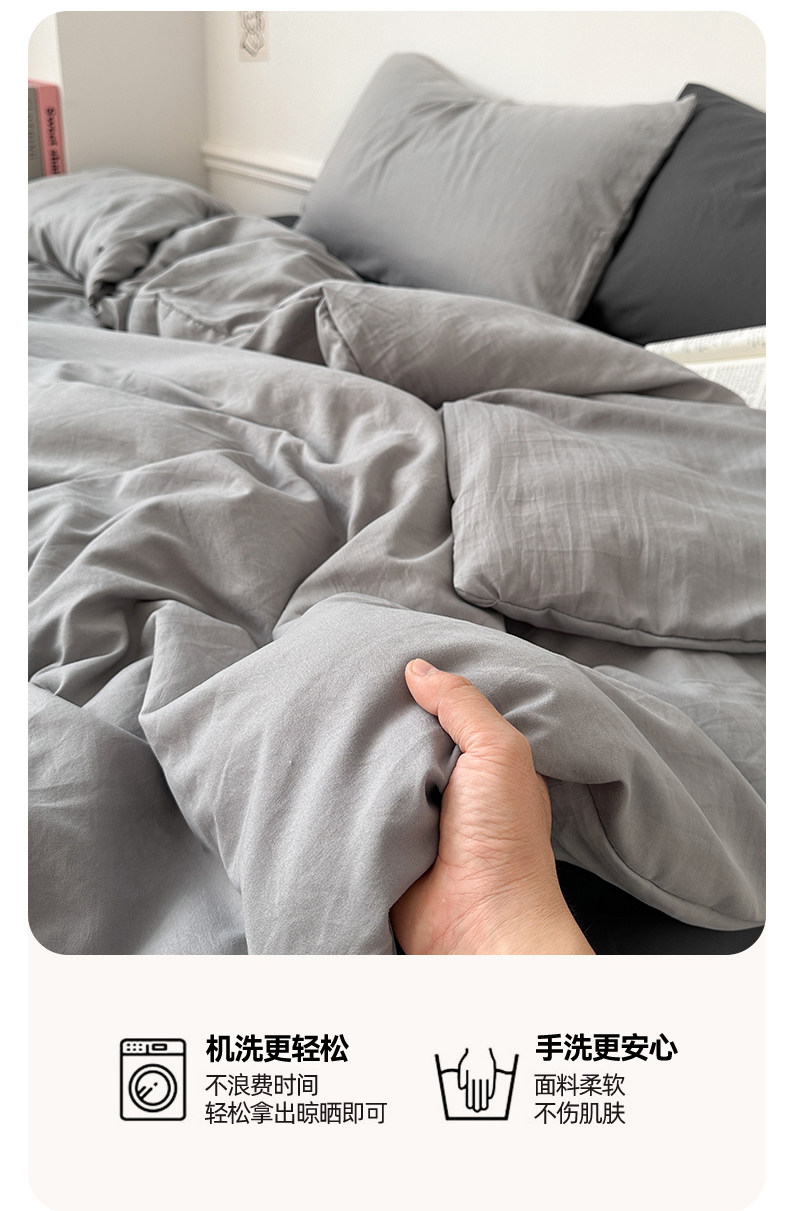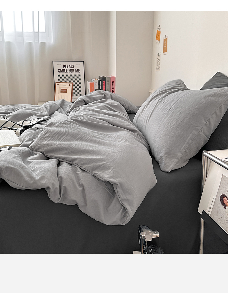 • 91家纺网 家纺一手货源 找家纺 多品家纺 2024新款超柔混搭水洗棉四件套--单被套 银灰+深灰