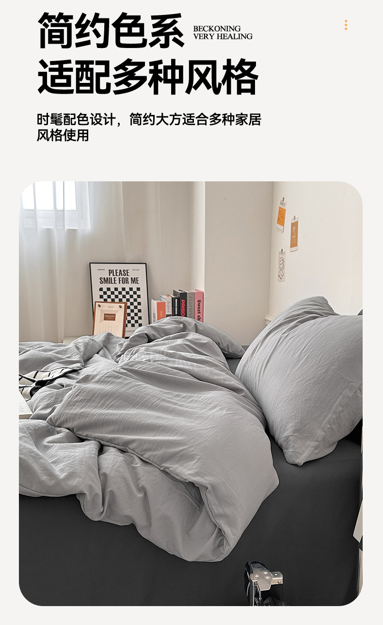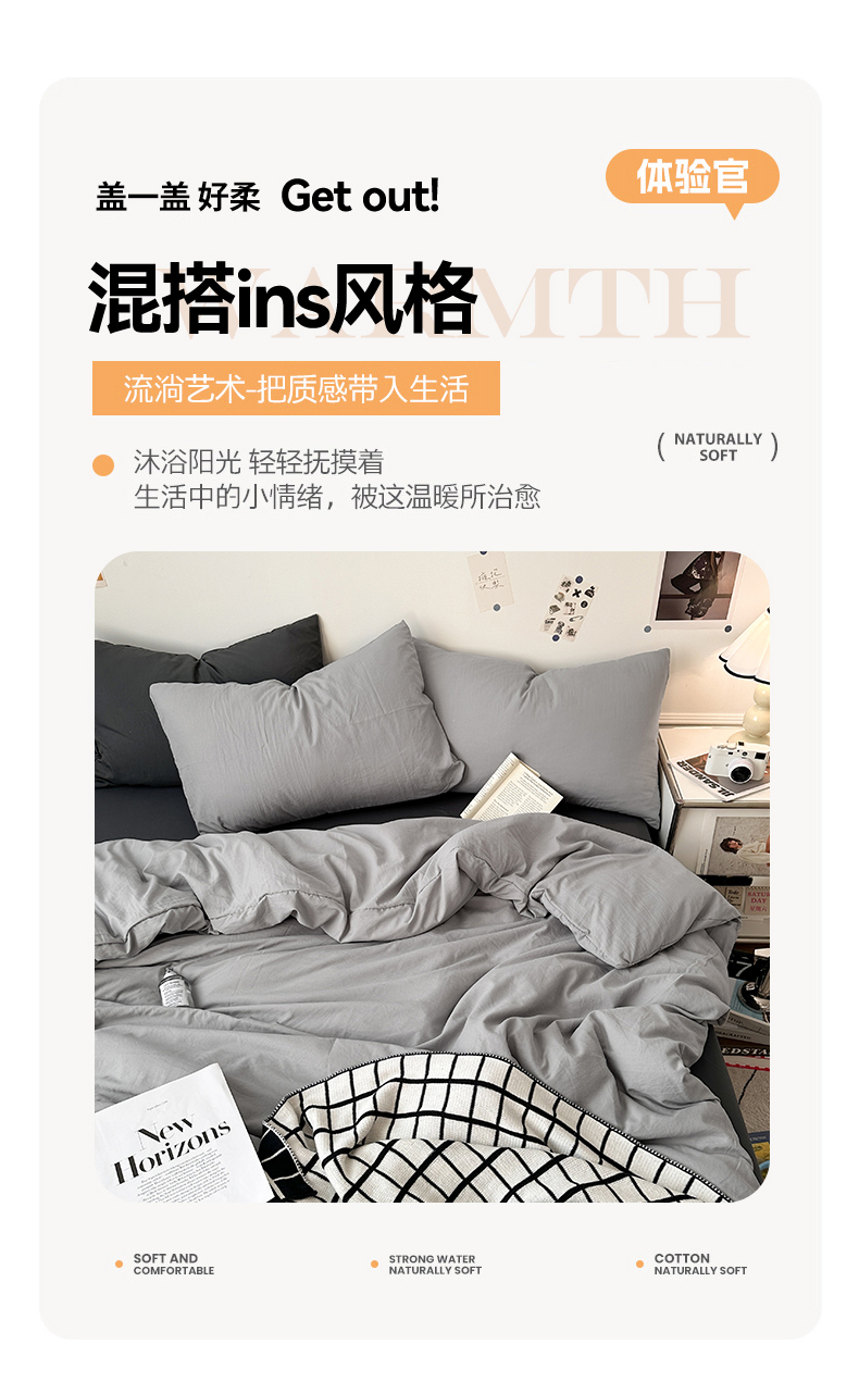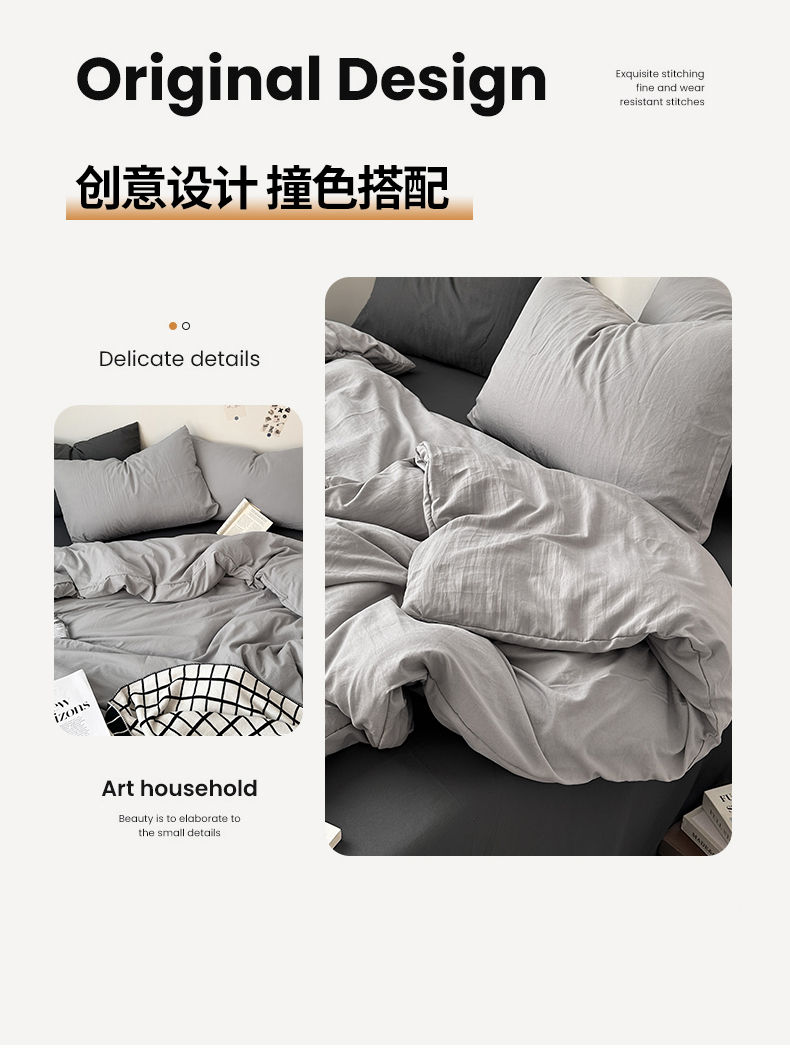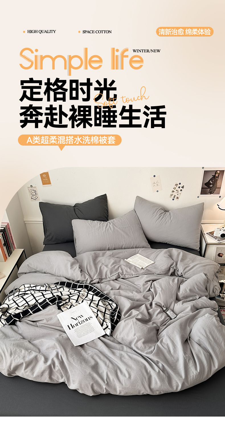 • 91家纺网 家纺一手货源 找家纺 多品家纺 2024新款超柔混搭水洗棉四件套--单被套 银灰+深灰