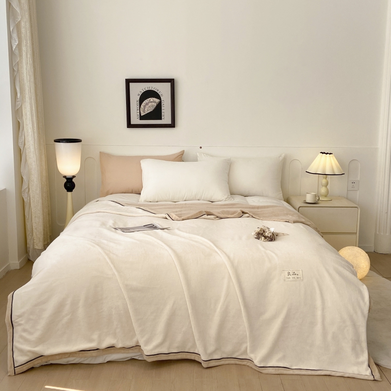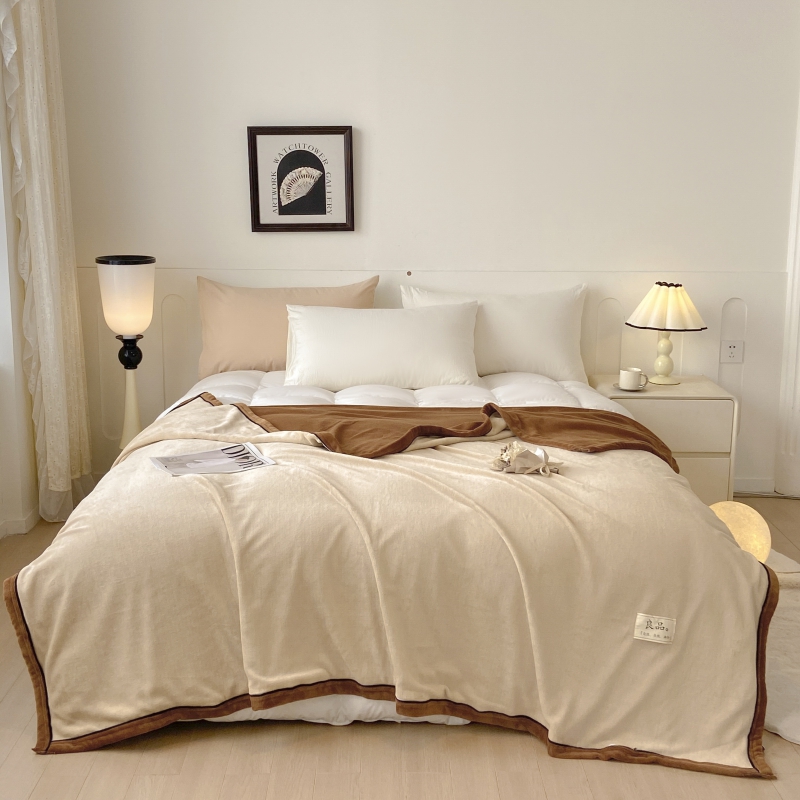 798家纺 2026新款牛奶绒良品盖毯 米白+卡其