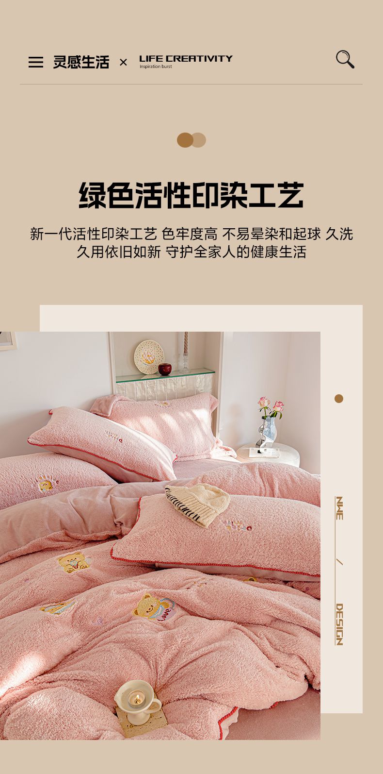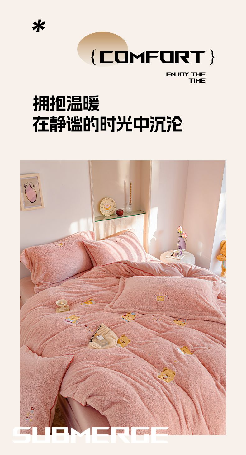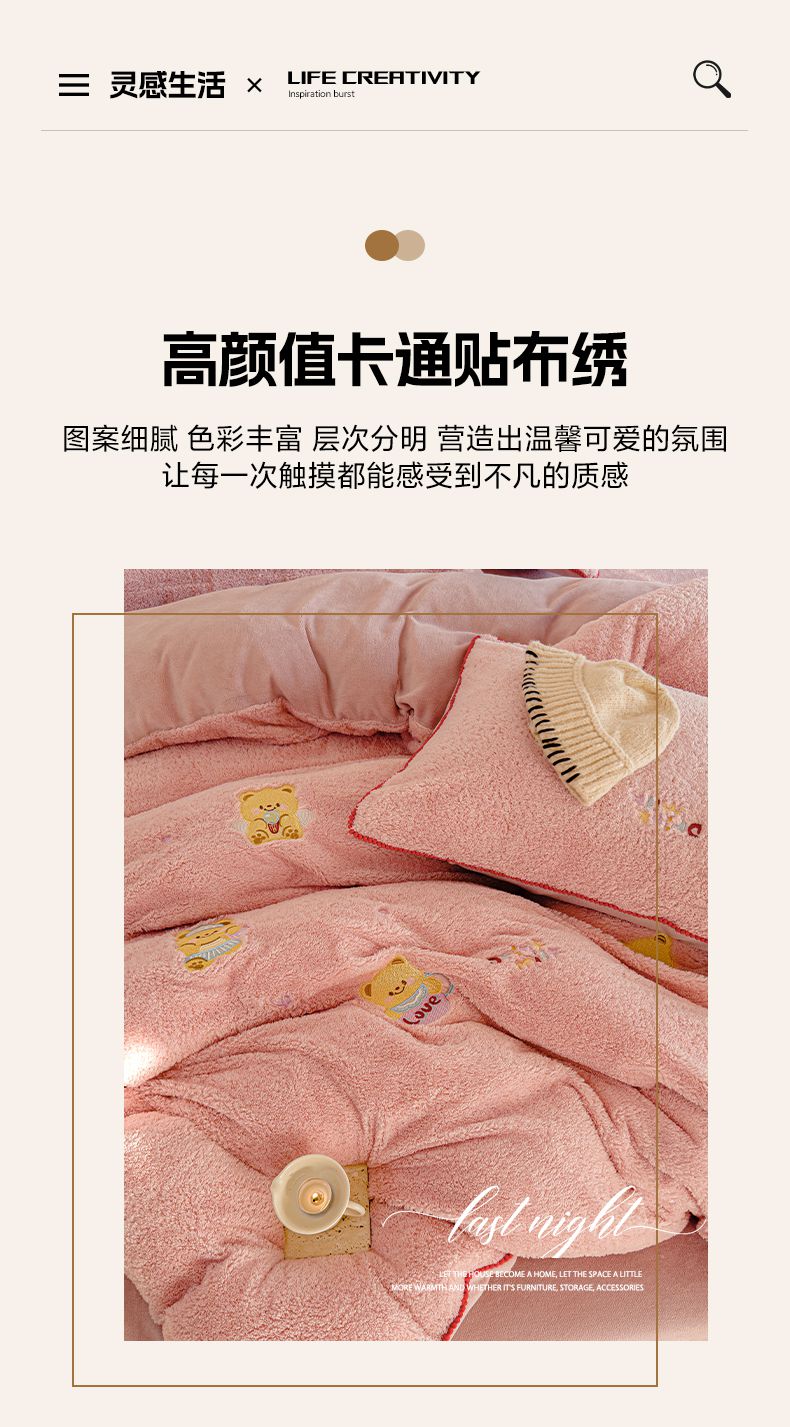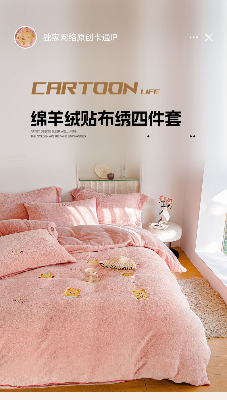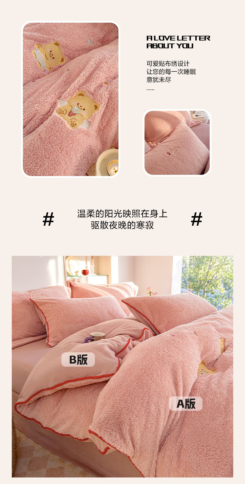 商品名称:秀色家纺 2025新款卡通风可爱少女心绵羊绒牛奶绒四件套加厚保暖秋冬季法兰绒刺绣被套 黄油小熊