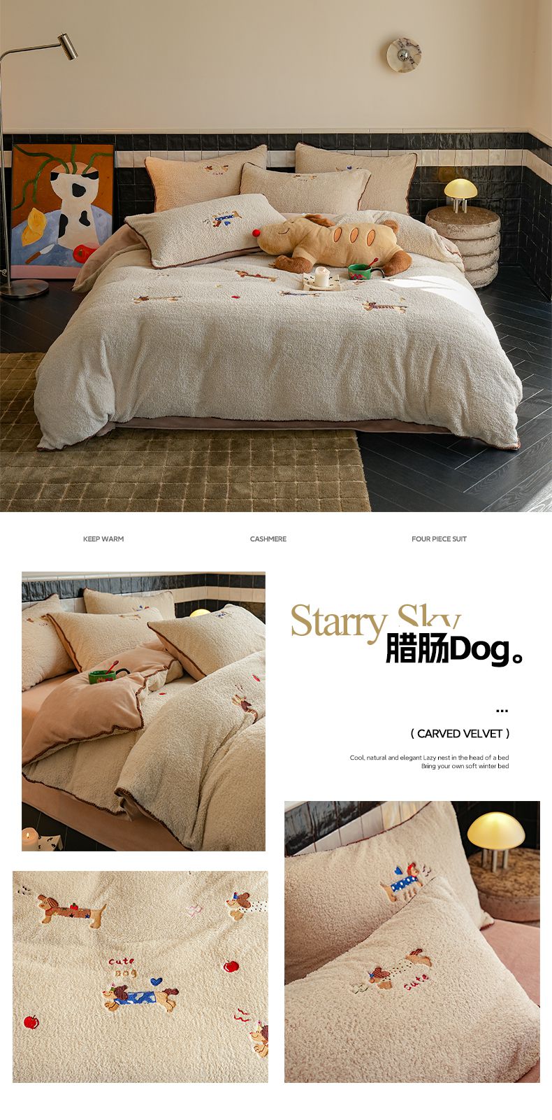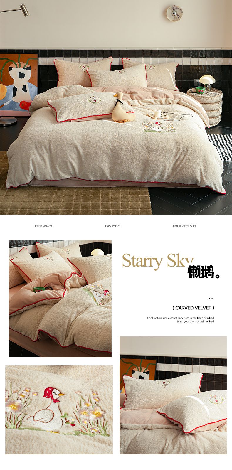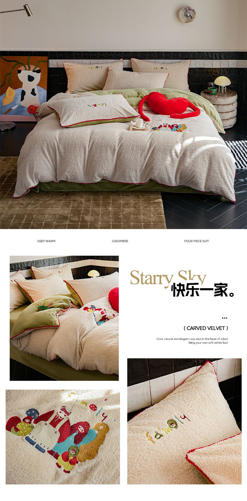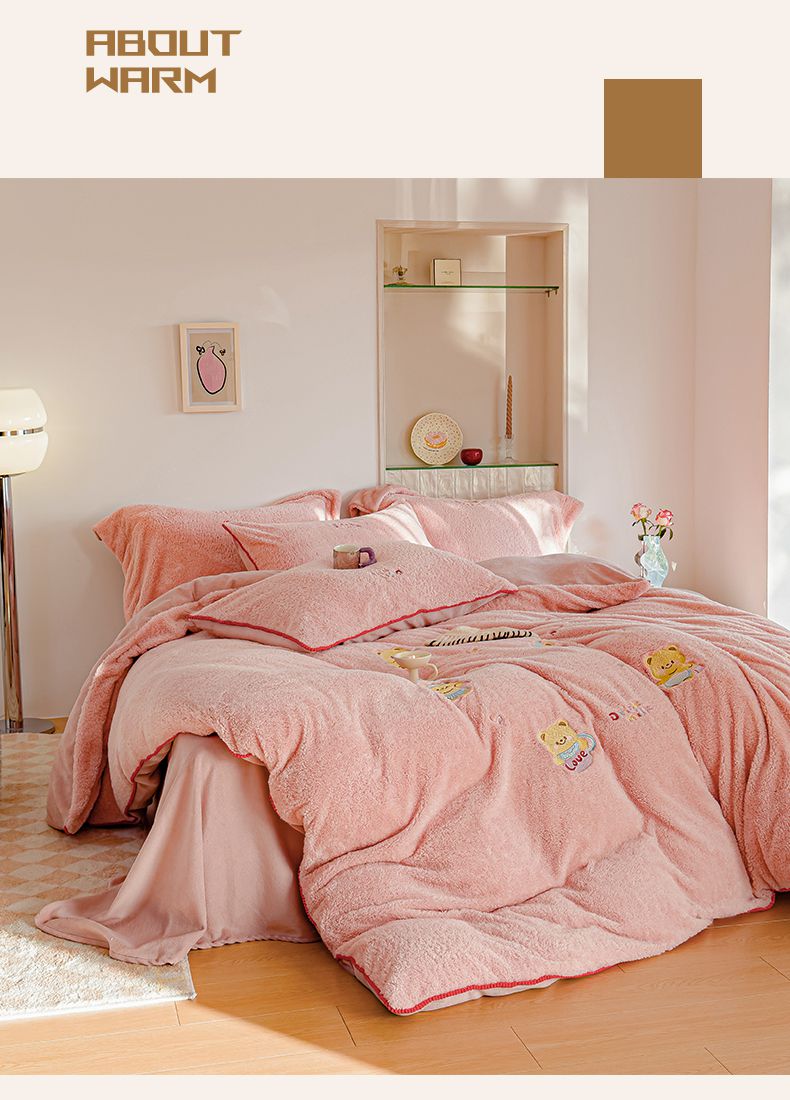 商品名称:秀色家纺 2025新款卡通风可爱少女心绵羊绒牛奶绒四件套加厚保暖秋冬季法兰绒刺绣被套 黄油小熊