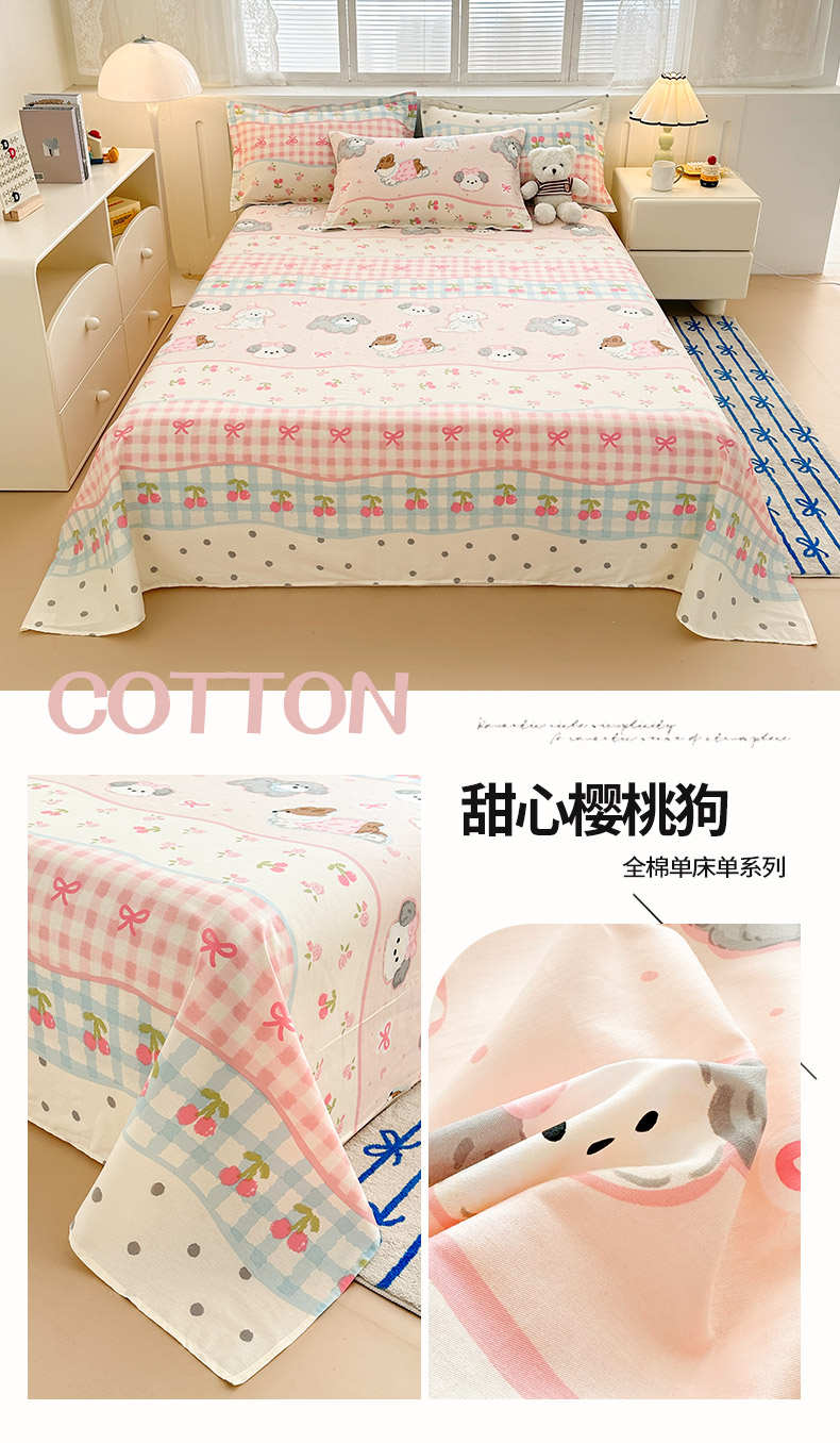 绵庭家纺 2025新款全棉印花单床单系列 甜心樱桃狗