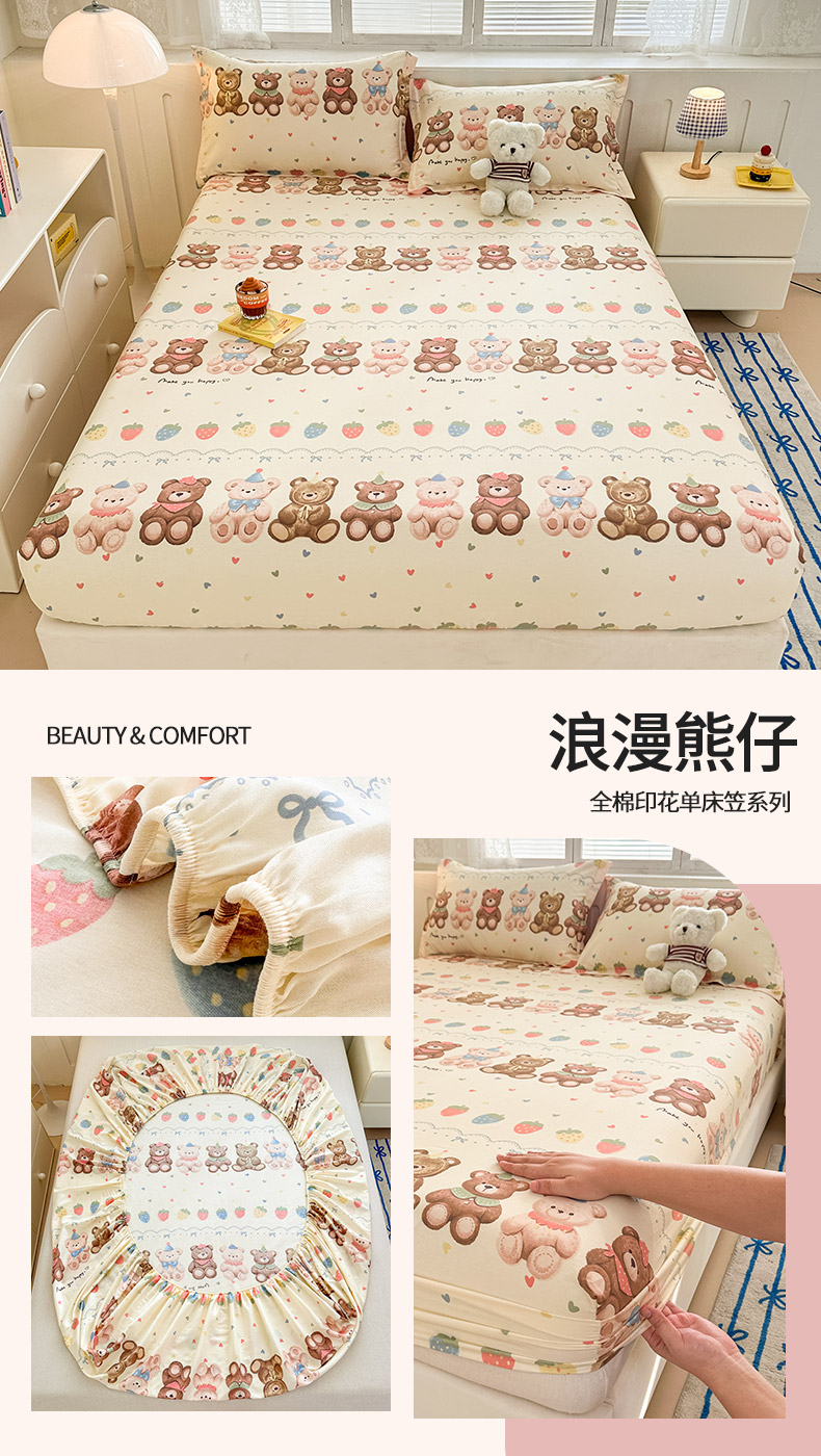 绵庭家纺 2025新款全棉印花单床笠系列 浪漫熊仔