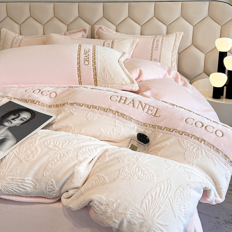 宅家居 2024新款雕花拼接刺绣全消光A类高克重牛奶绒四件套-蝶之舞系列 蝶之舞-粉玉