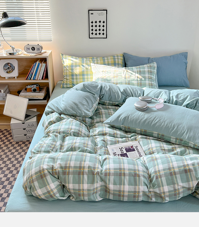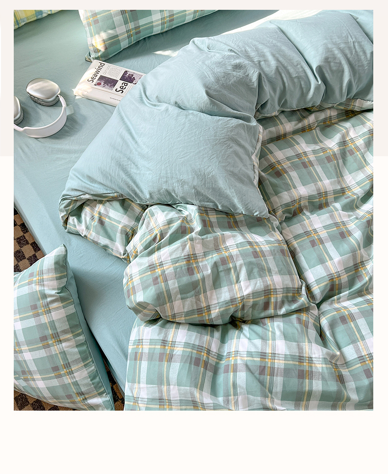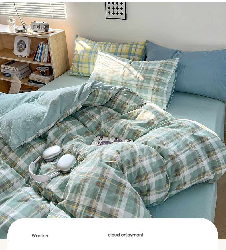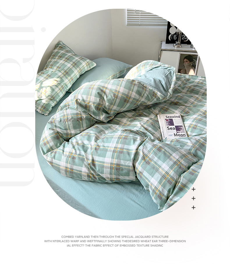 当前位置: 91家纺网 > 商品网购 > 床品套件 > 四件套 > 水洗棉四件套 > 悦织湾家纺 2025新款日式简约格子系水洗棉床单款床笠款套件 简兮-绿