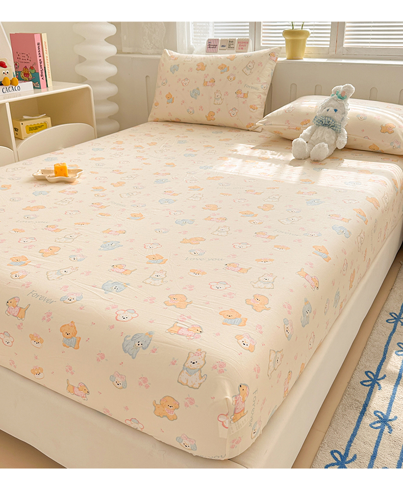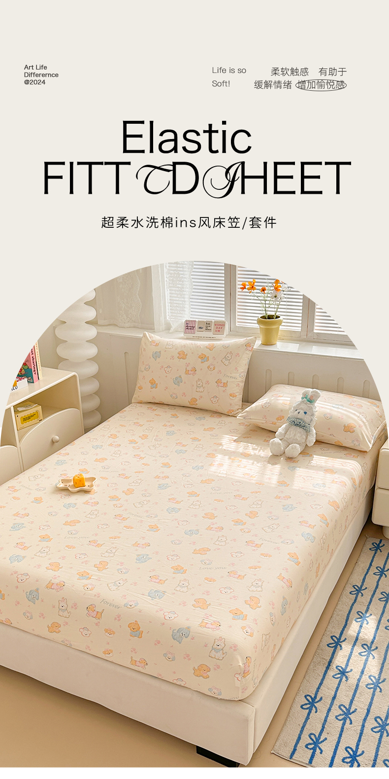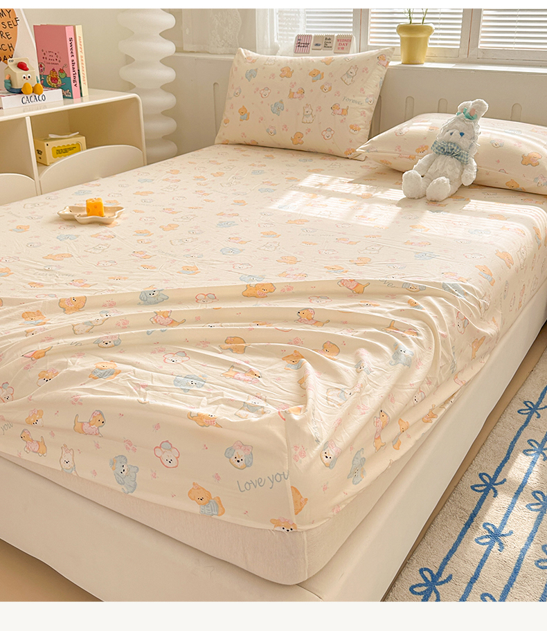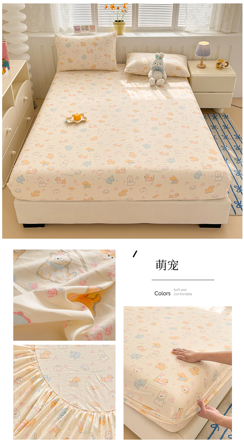 多品家纺 2024新款超柔水洗棉ins风单品床笠 萌宠