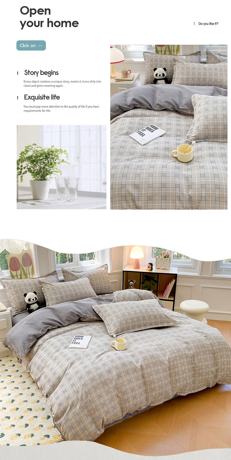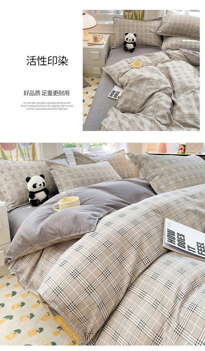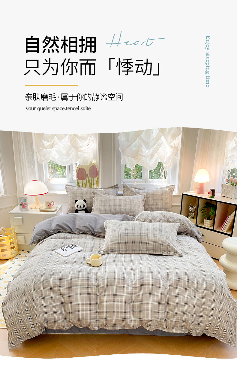 (总)世爵 2026新款10A抗菌亲肤水洗棉双拼四件套,卡其蓝,绿浅灰,墨松灰,暖驼,浅灰,深灰,深灰绿,深蓝灰,天空蓝浅灰,远山绿,远天蓝