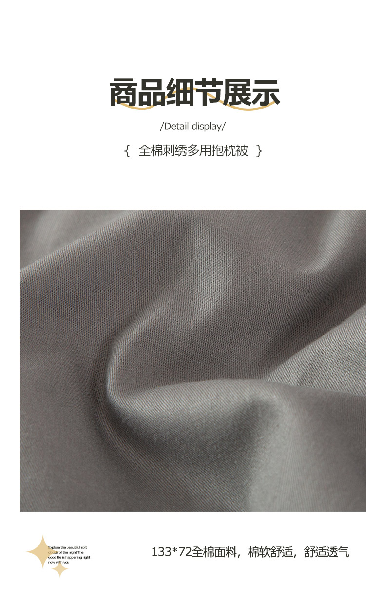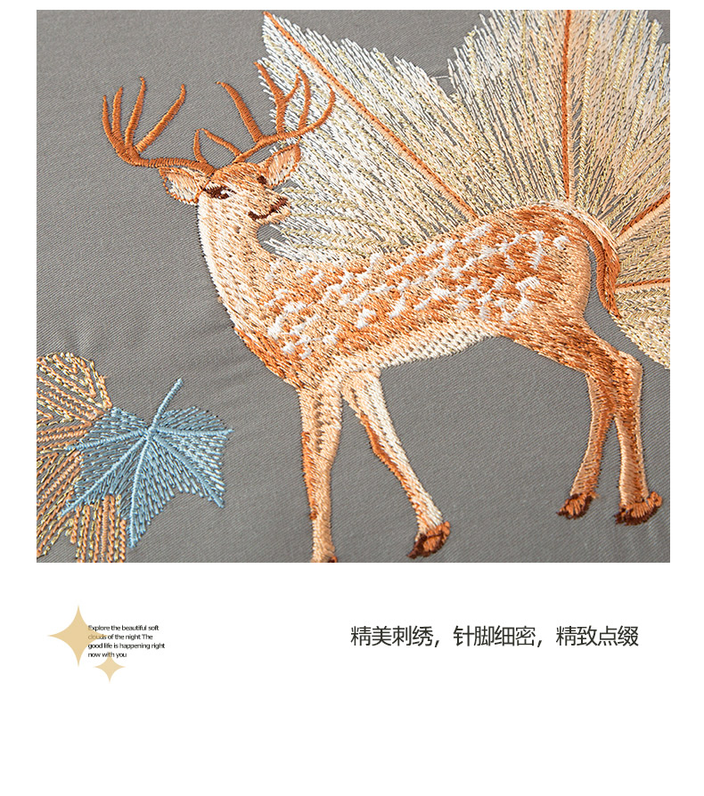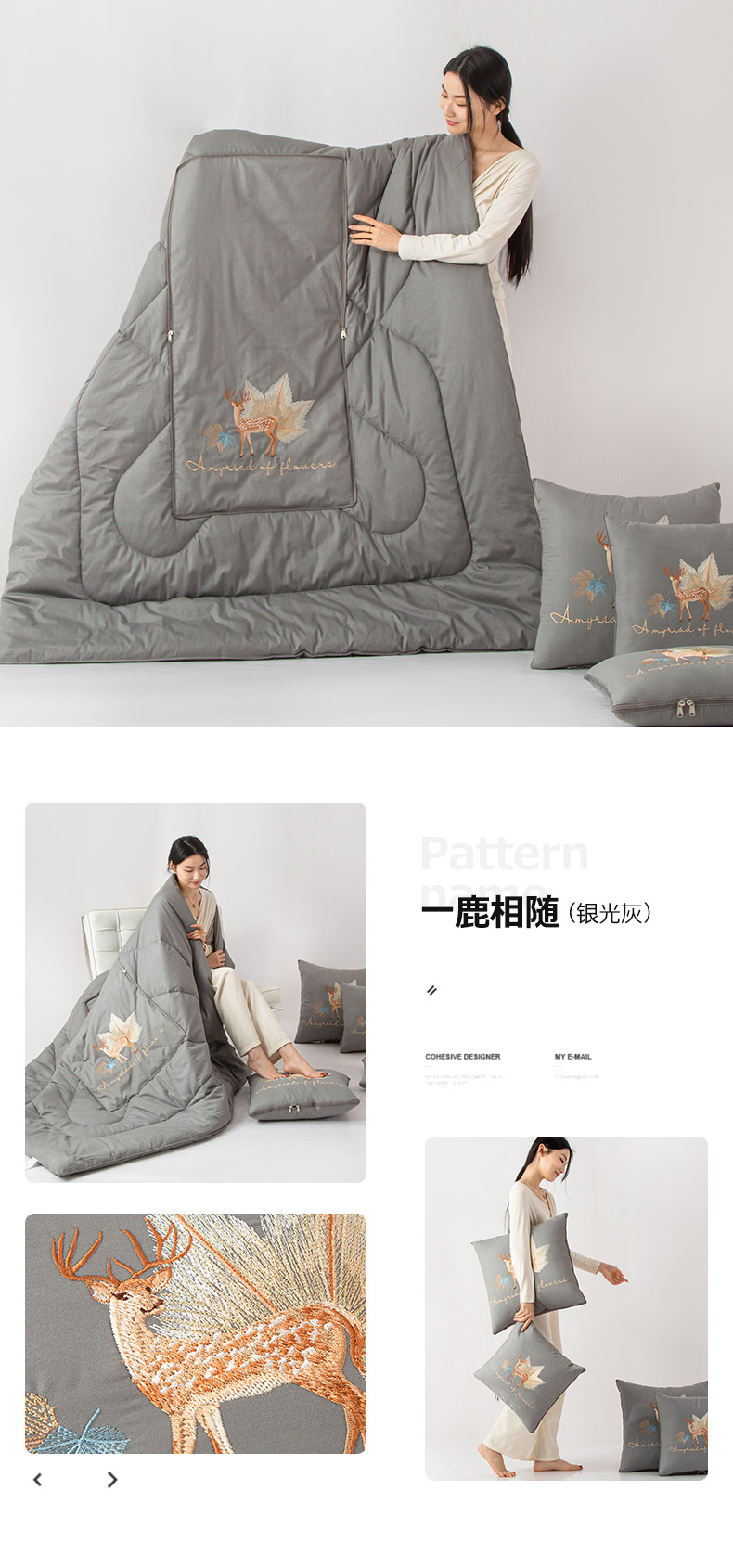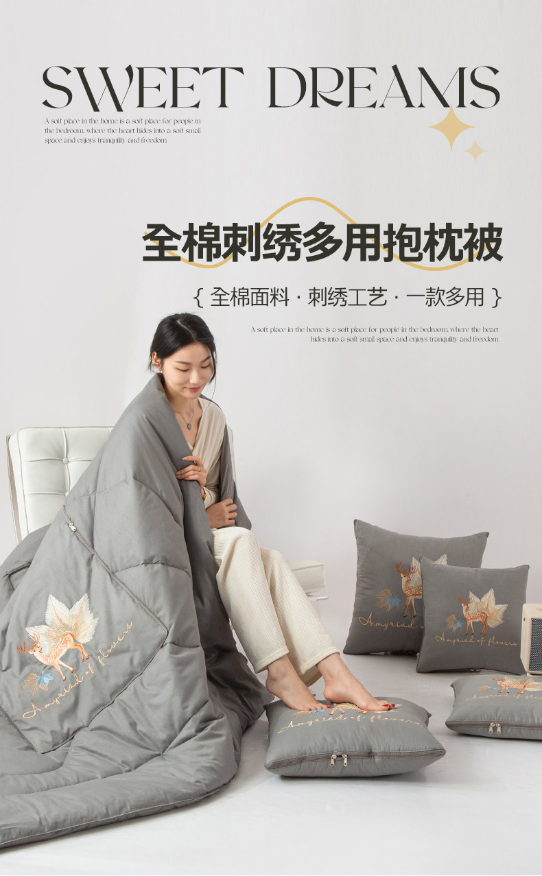 商品名称:雷人家纺 2023新款全棉喷气13*72刺绣抱枕被 一鹿相随(银光灰)