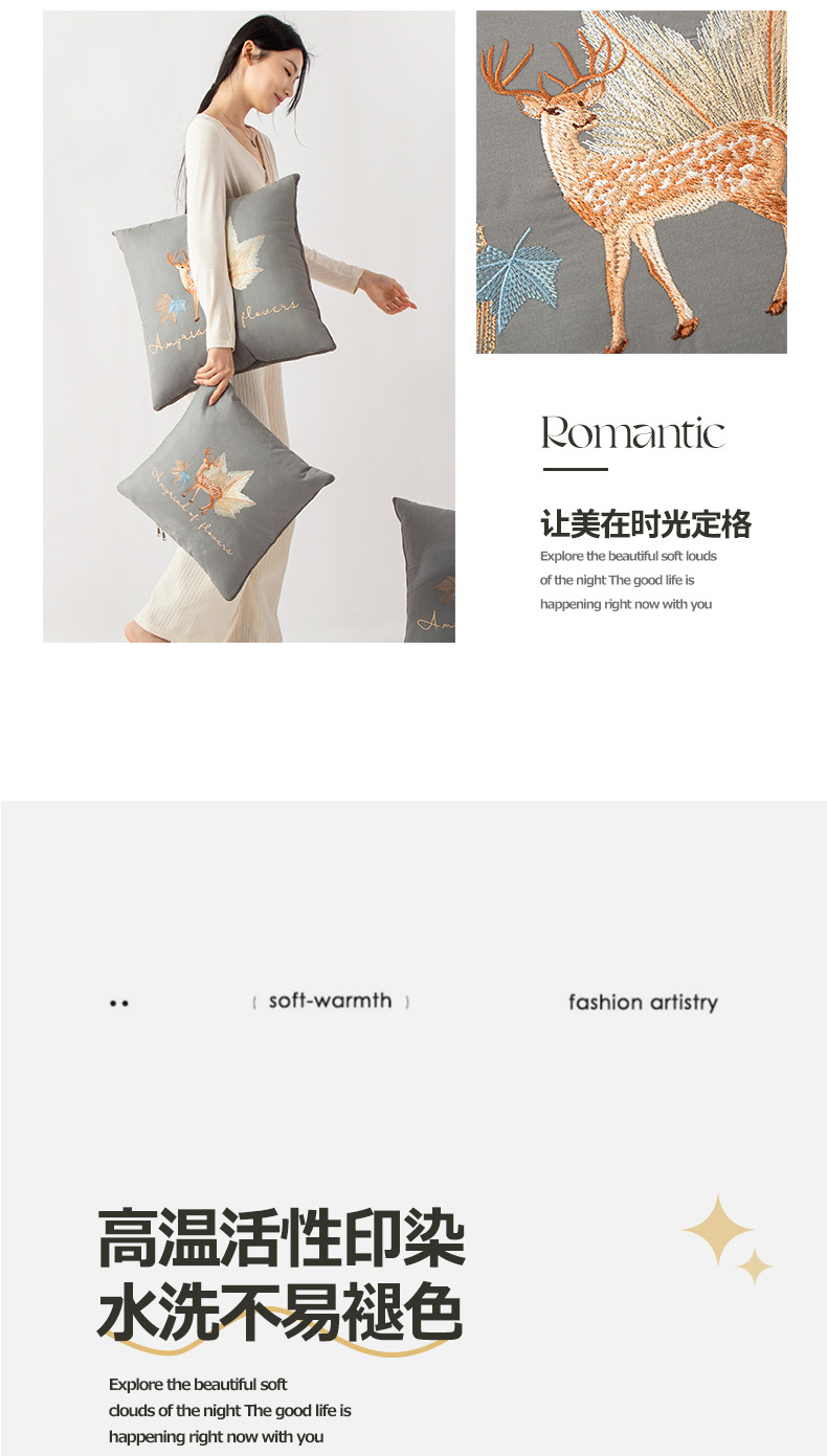 (总)雷人家纺 2023新款全棉喷气13*72刺绣抱枕被,一鹿相随(银光灰),一鹿相随(翡翠绿),一鹿相随(活力橙),一鹿相随(拿铁咖),一鹿相随(柠檬黄),一鹿相随(宝石蓝),永恒之爱(银光灰),永恒之爱(翡翠绿),永恒之爱(活力橙),永恒之爱(拿铁咖),永恒之爱(柠檬黄),永恒之爱(宝石蓝)