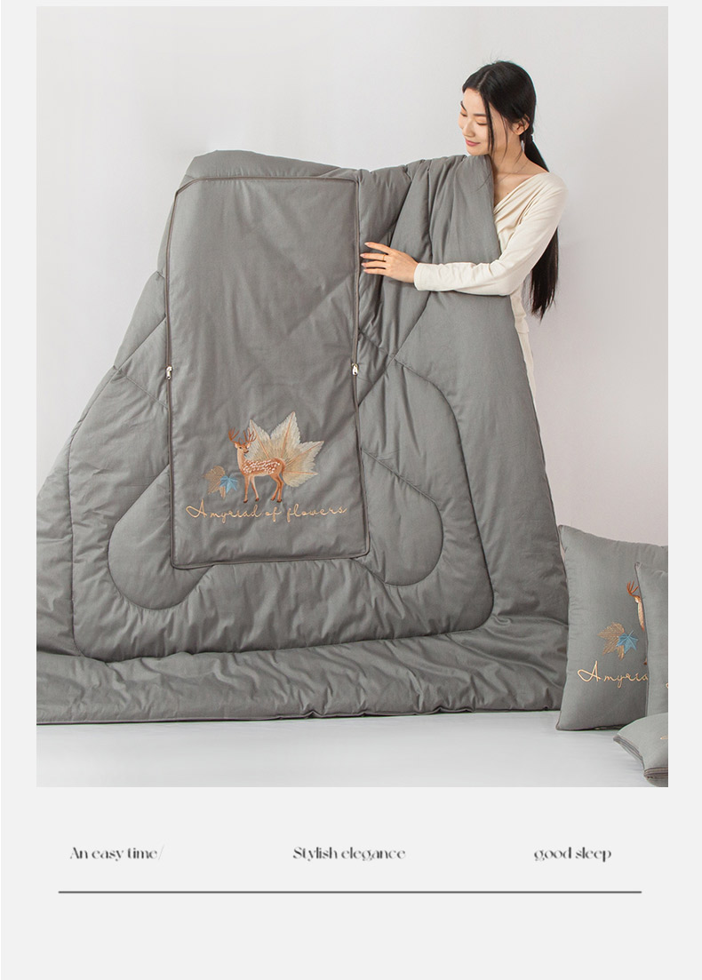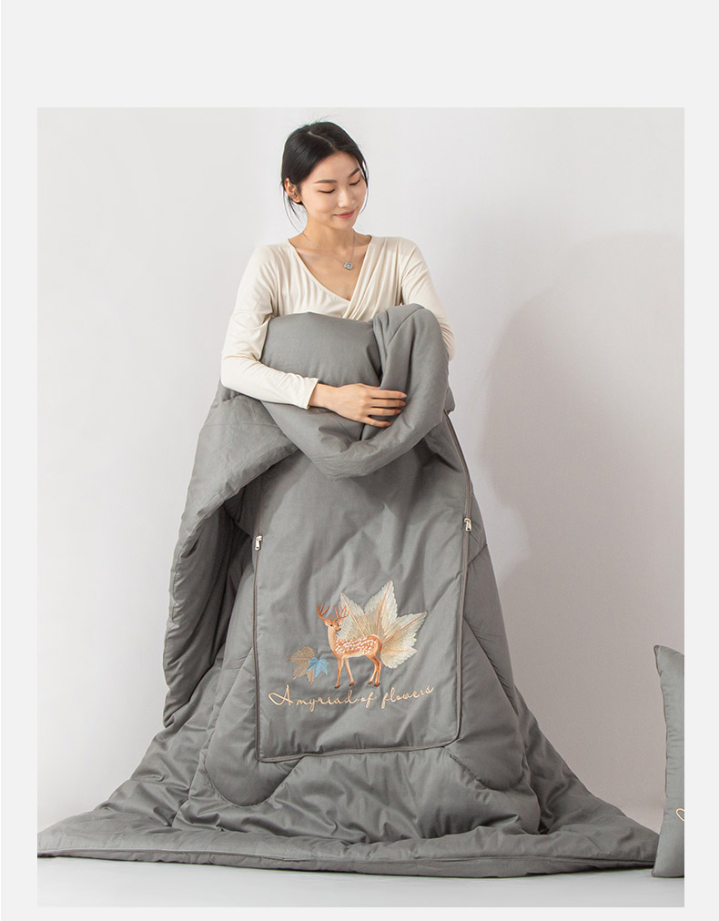 雷人家纺 2023新款全棉喷气13*72刺绣抱枕被 一鹿相随(银光灰)