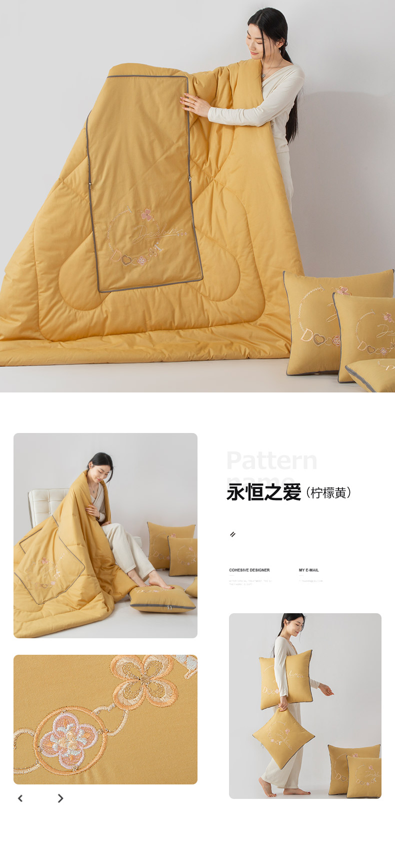 商品名称:雷人家纺 2023新款全棉喷气13*72刺绣抱枕被 永恒之爱(柠檬黄)