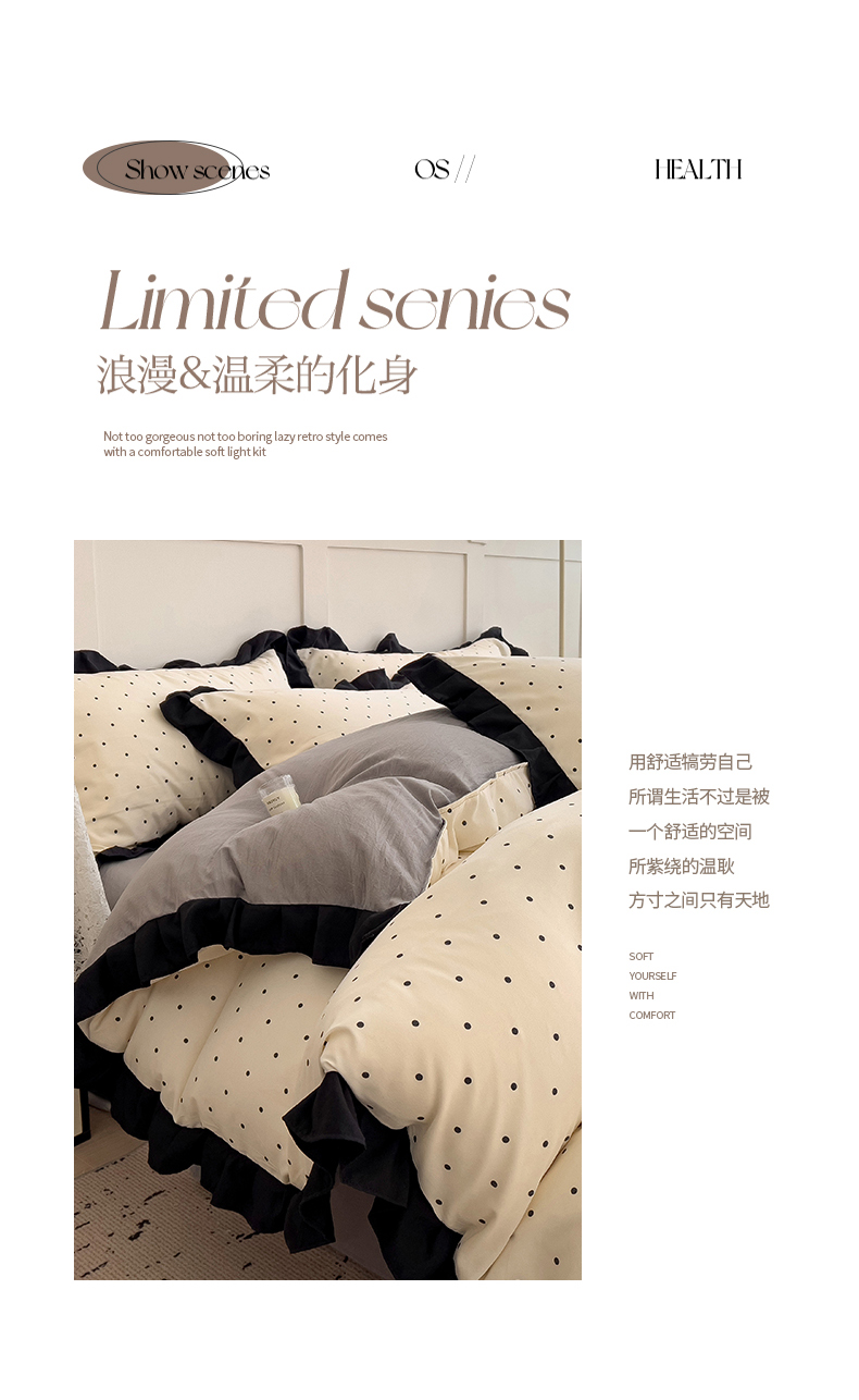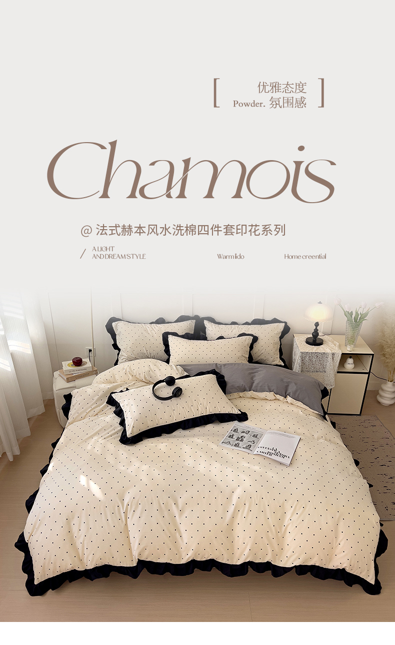 当前位置: 91家纺网 > 商品网购 > 床品套件 > 四件套 > 水洗棉四件套 > 鑫利来家纺 2025新款法式花边赫本风水洗棉四件套 赫本风-波点