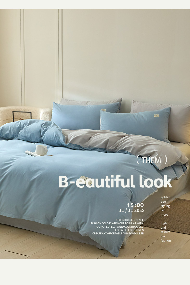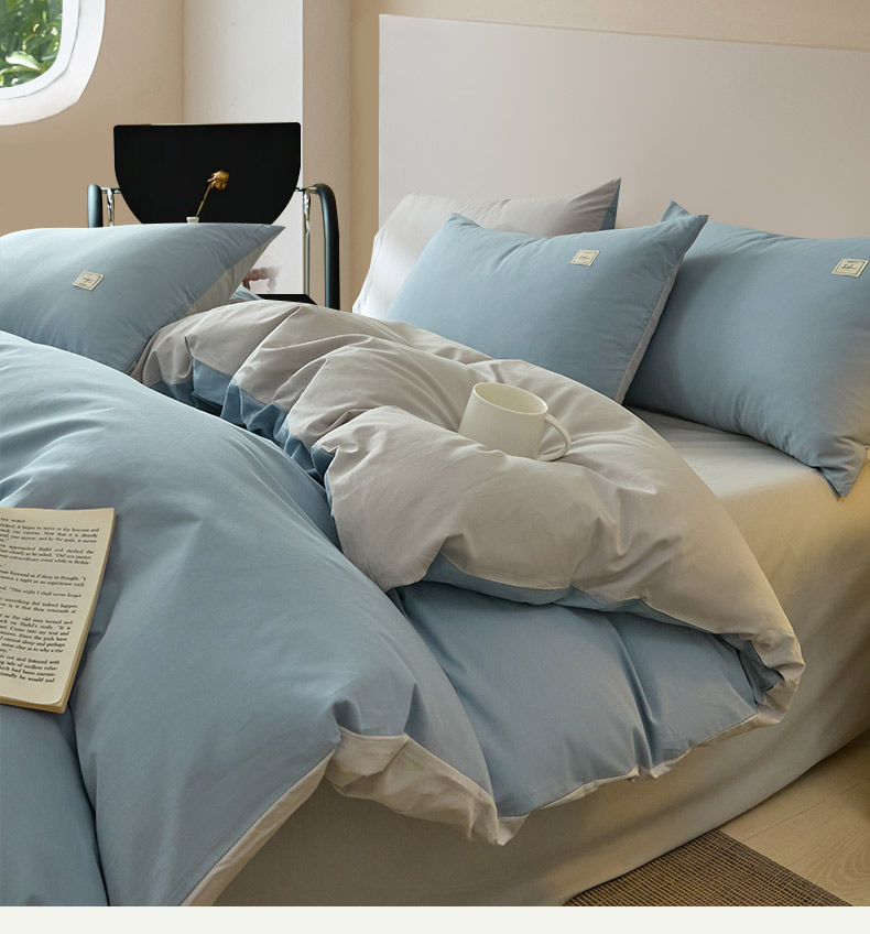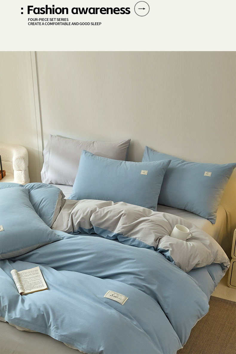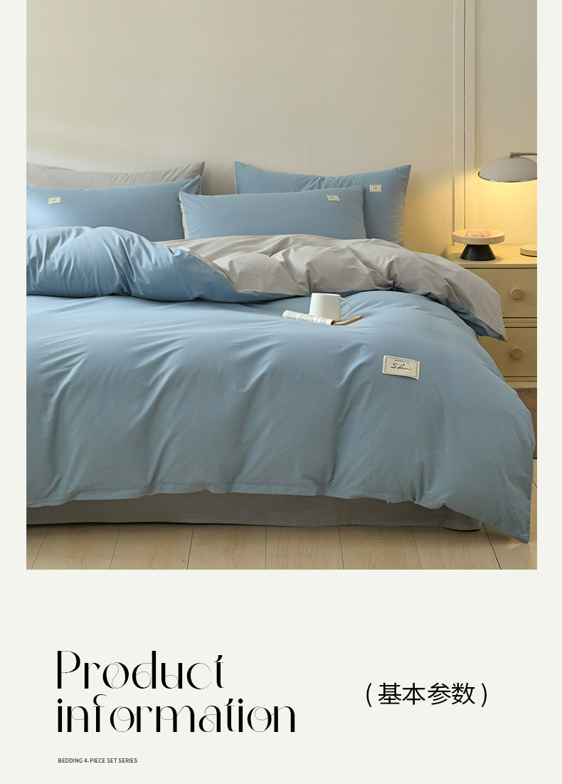 当前位置: 91家纺网 > 商品网购 > 床品套件 > 四件套 > 全棉普通四件套 > ab家纺 2025新款色织全棉40支水洗棉四件套--双拼第二组 浅蓝灰