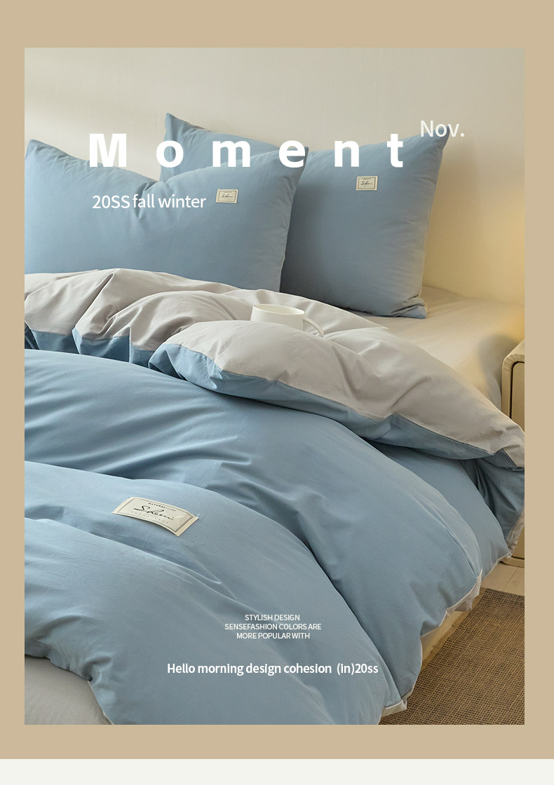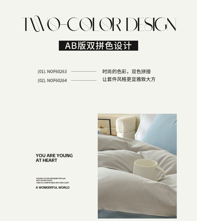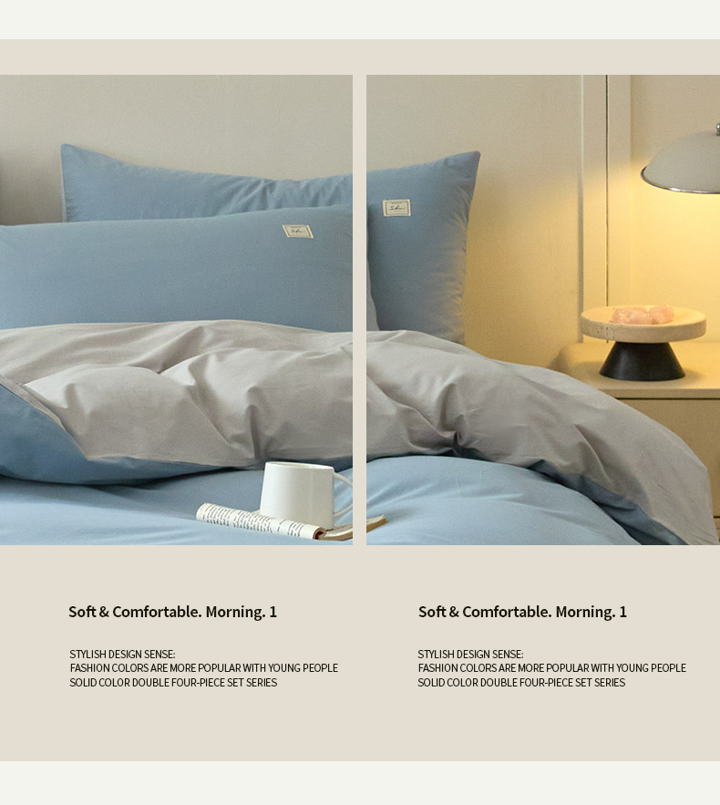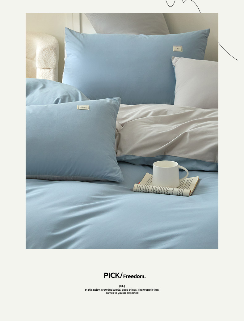 当前位置: 91家纺网 > 商品网购 > 床品套件 > 四件套 > 全棉普通四件套 > ab家纺 2025新款色织全棉40支水洗棉四件套--双拼第二组 浅蓝灰