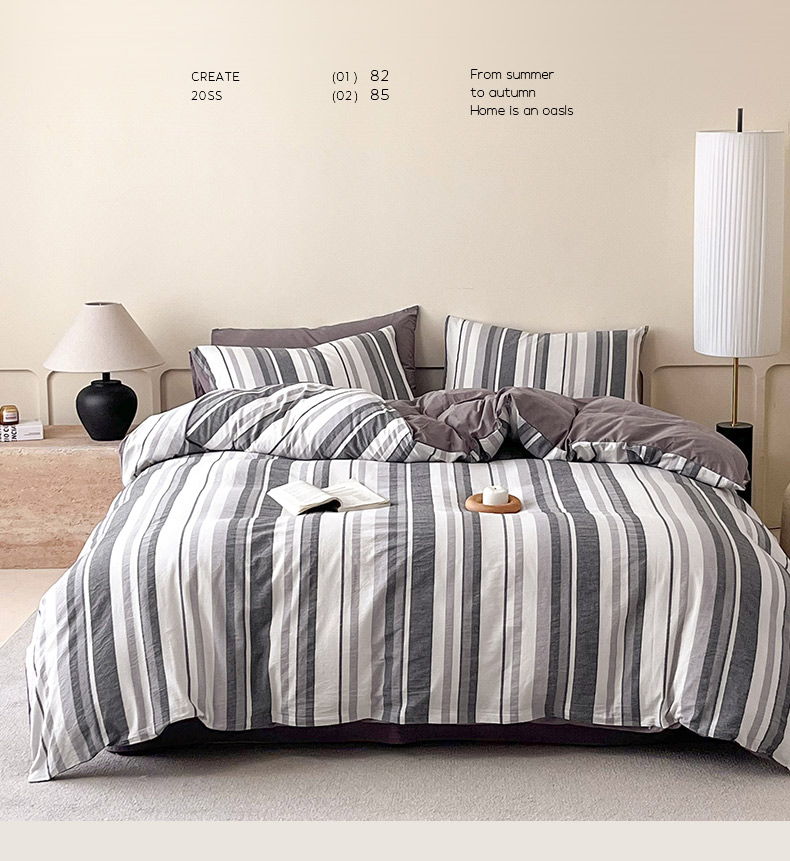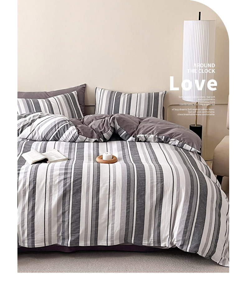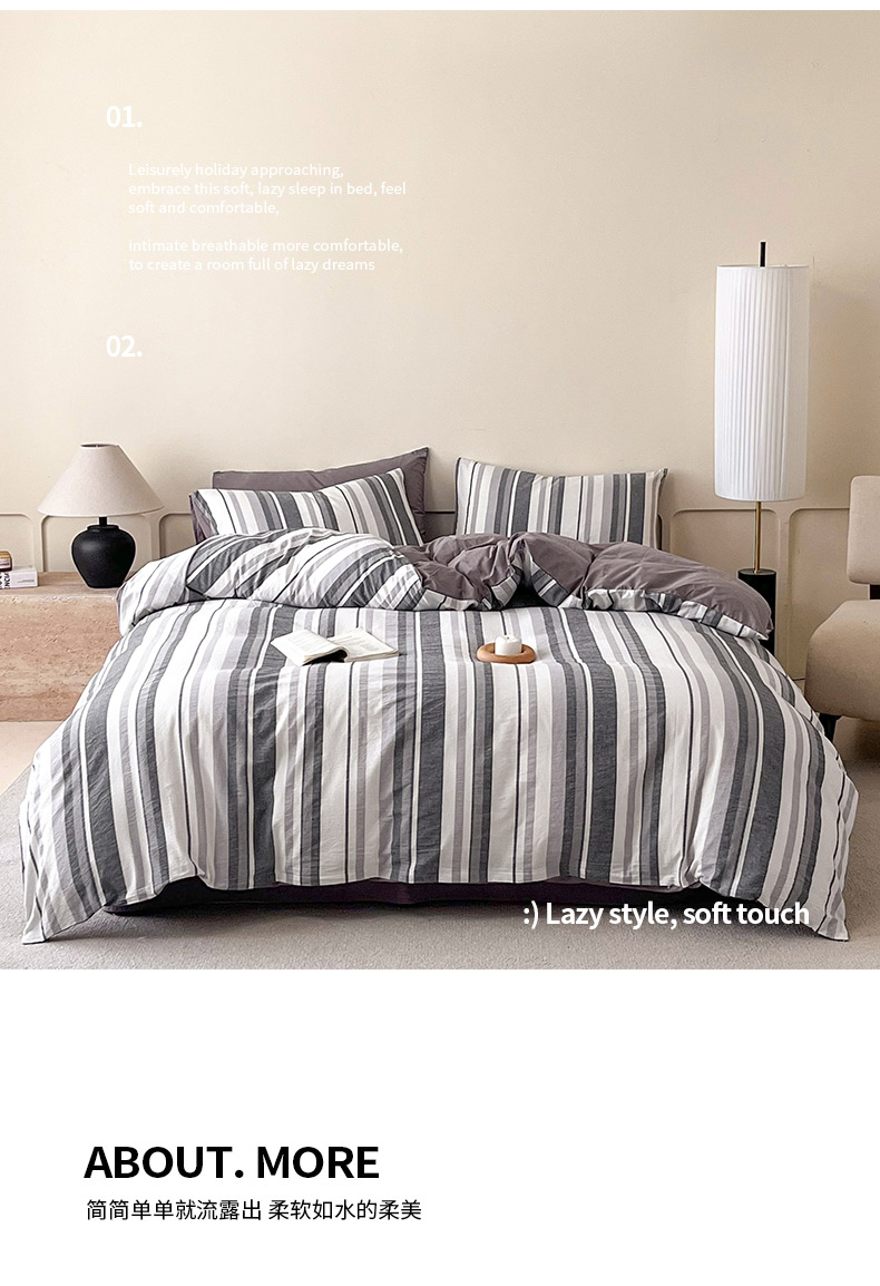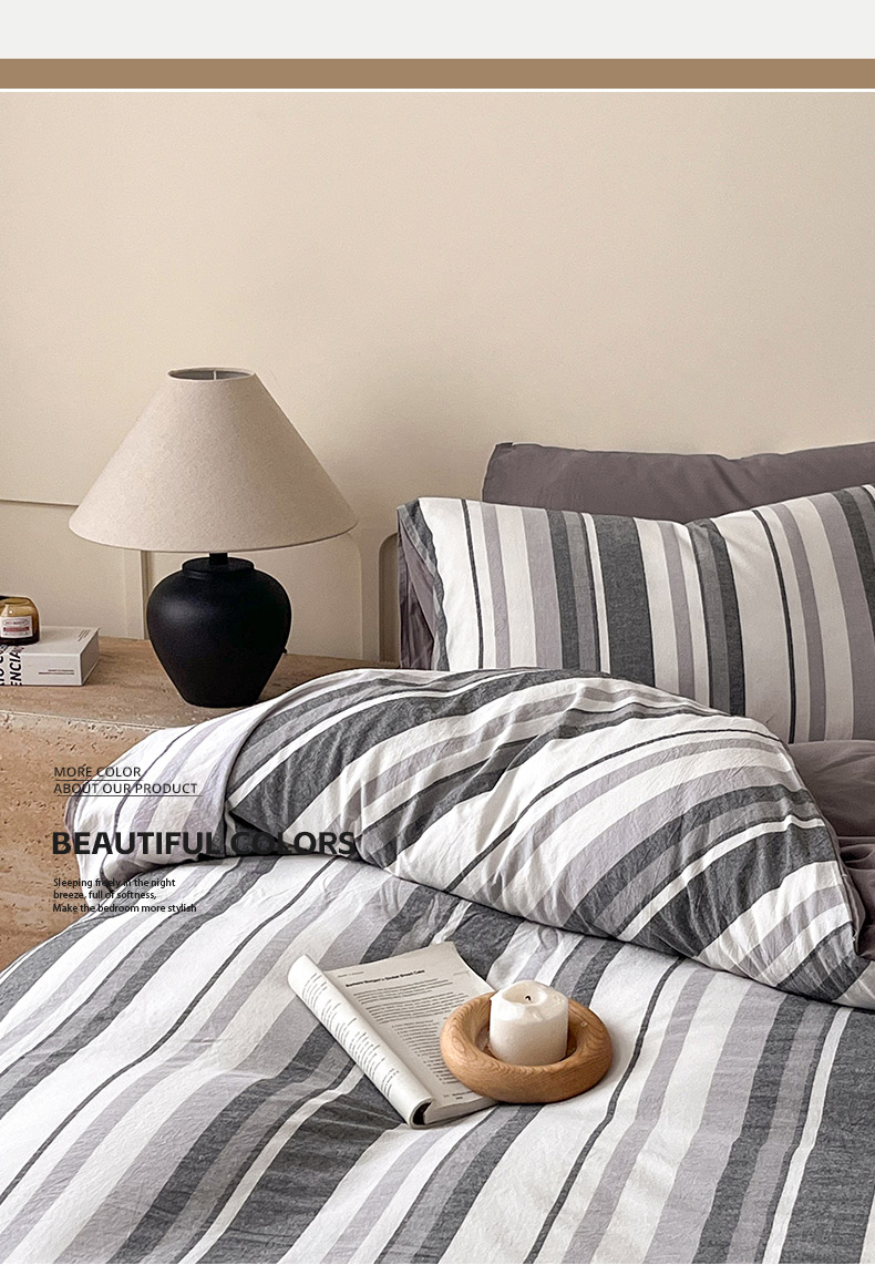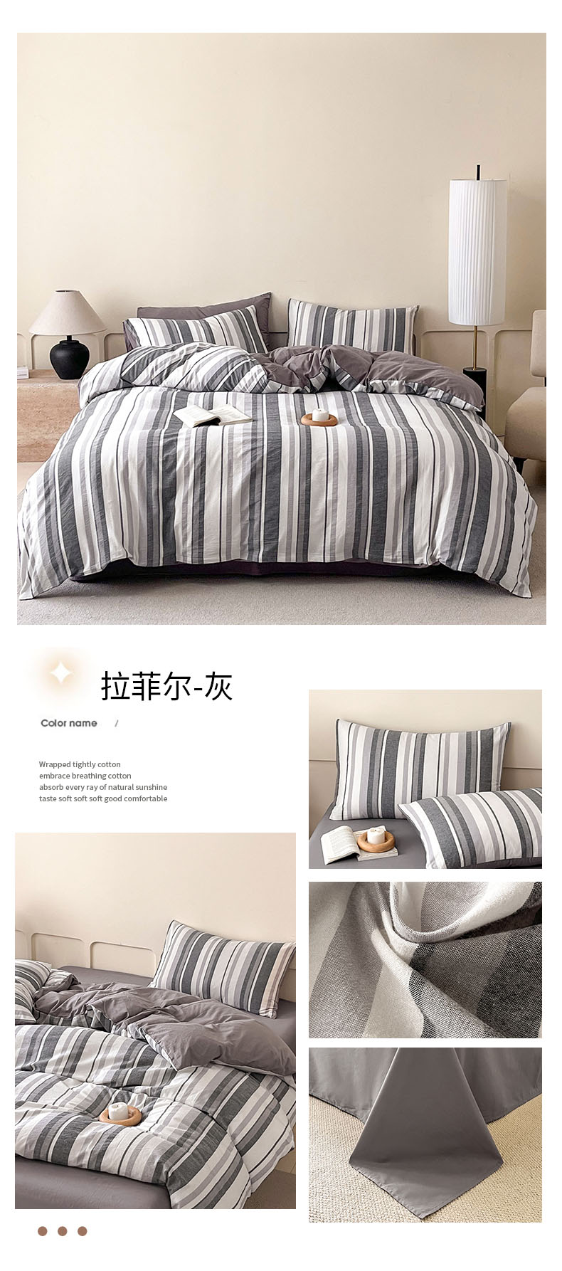 当前位置: 91家纺网 > 商品网购 > 床品套件 > 四件套 > 全棉普通四件套 > ab家纺 2024新款色织全棉40支水洗棉条纹四件套 拉菲尔-灰