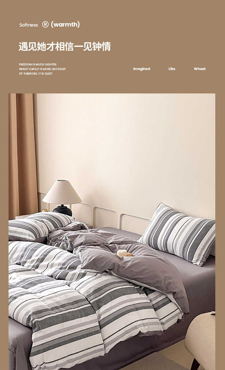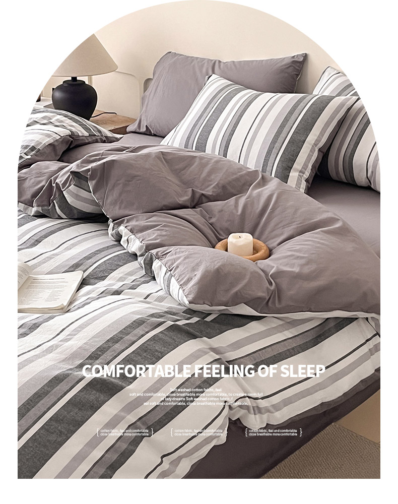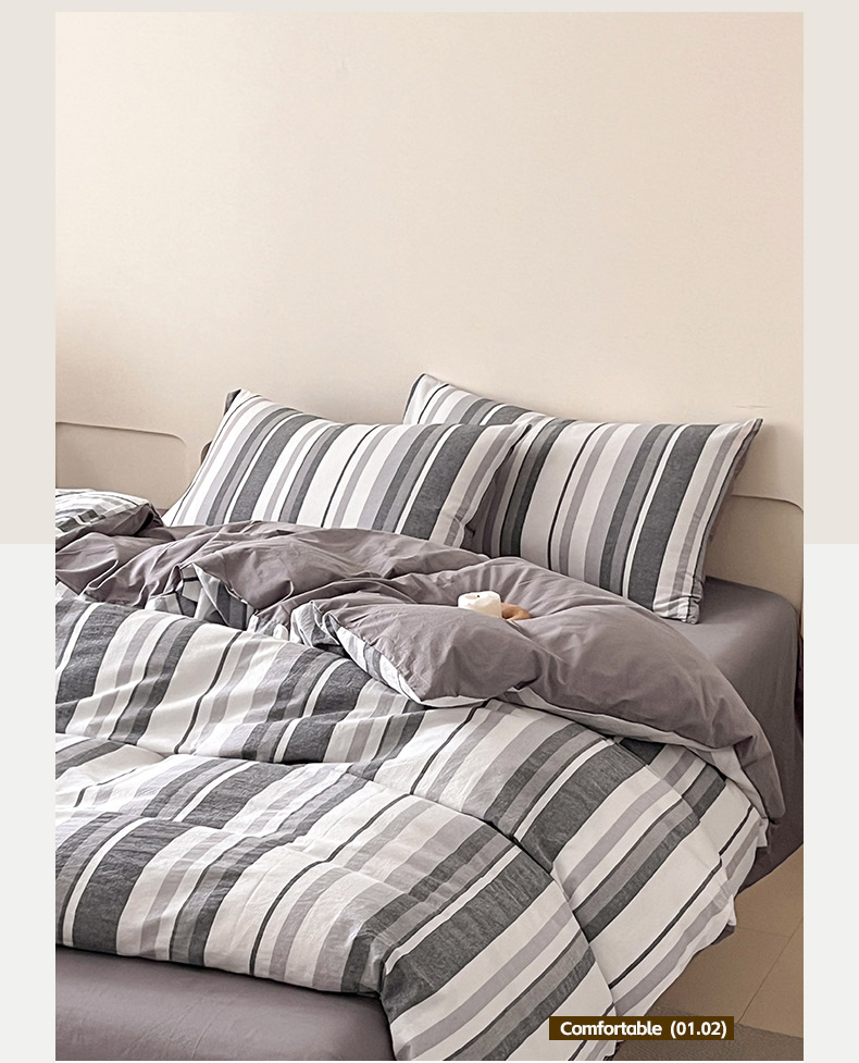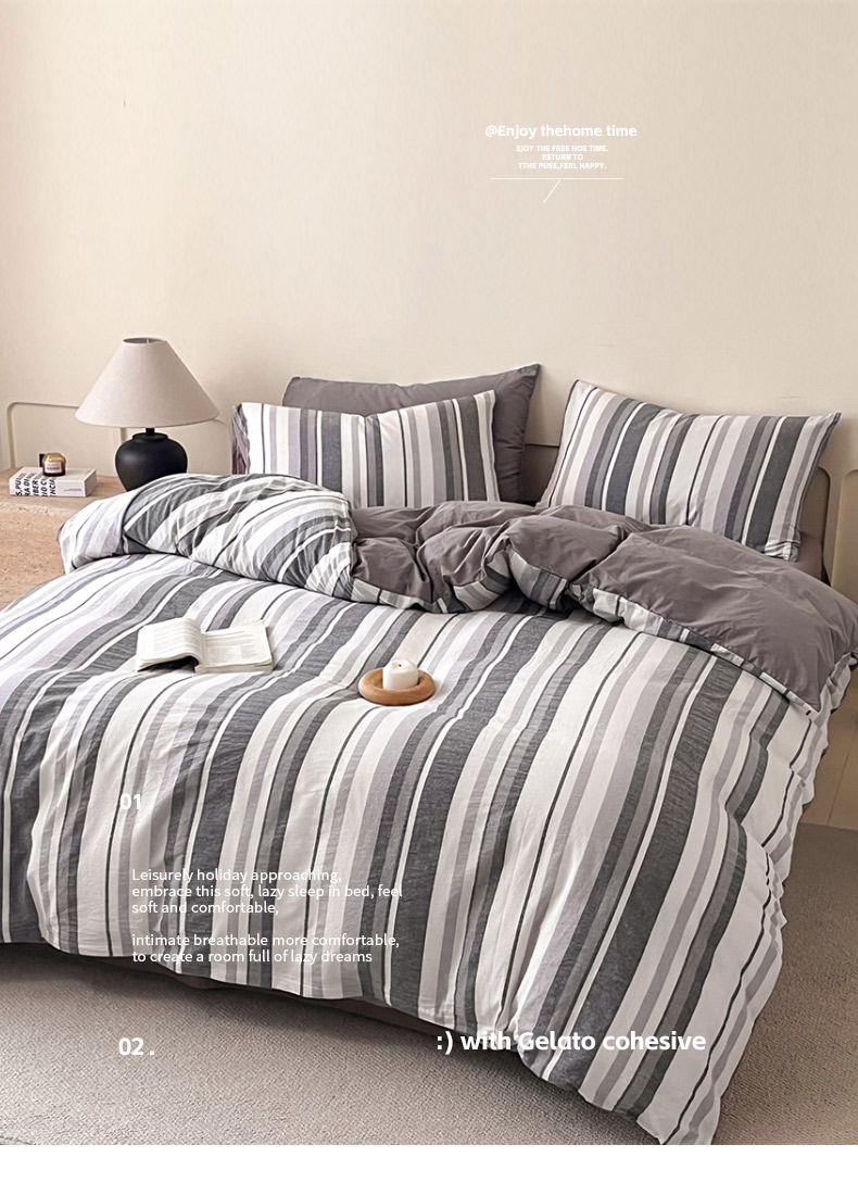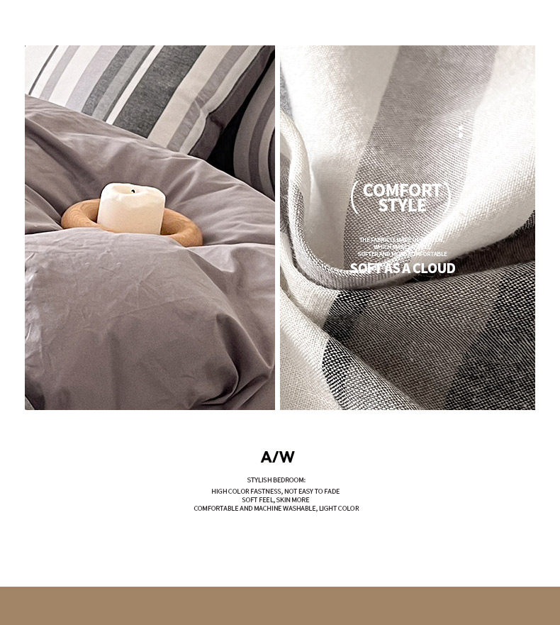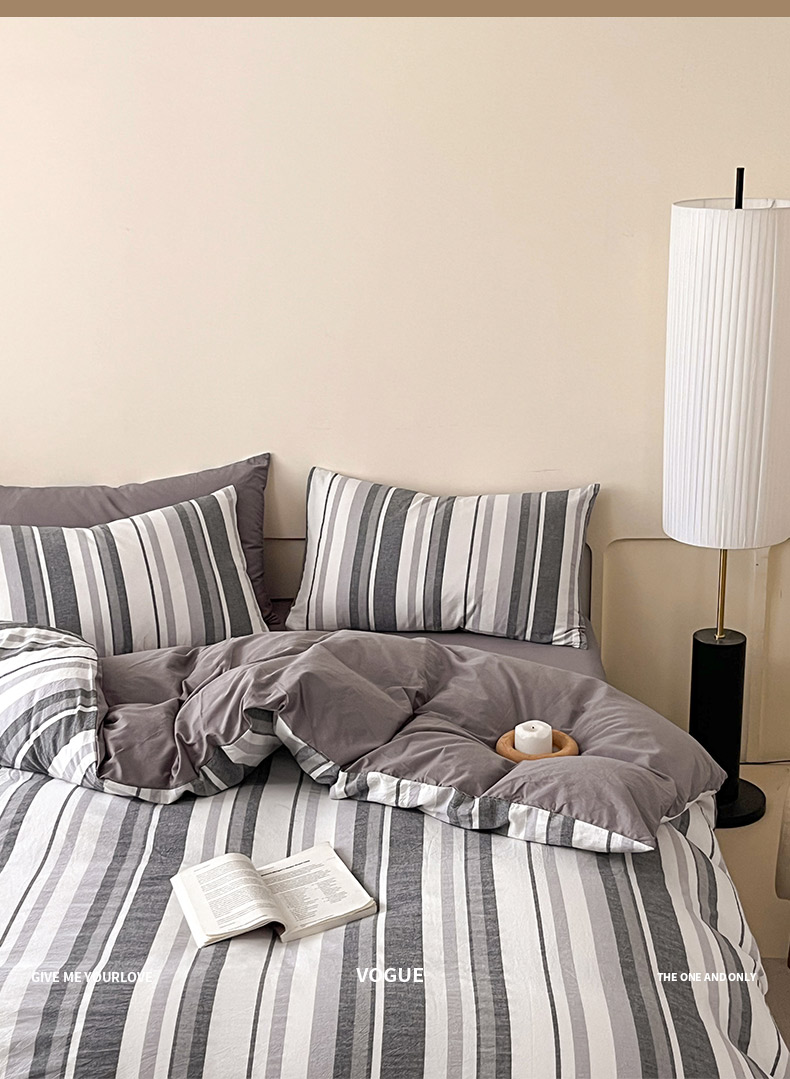 当前位置: 91家纺网 > 商品网购 > 床品套件 > 四件套 > 全棉普通四件套 > ab家纺 2024新款色织全棉40支水洗棉条纹四件套 拉菲尔-灰