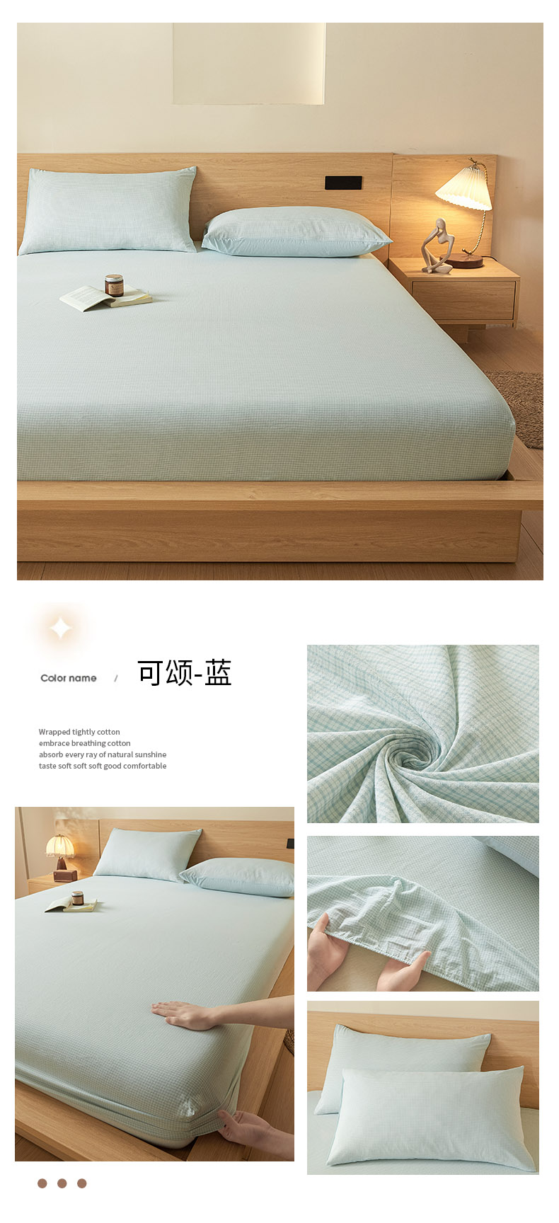 商品名称:ab家纺 2025新款简约色织水洗棉床笠 可颂-蓝