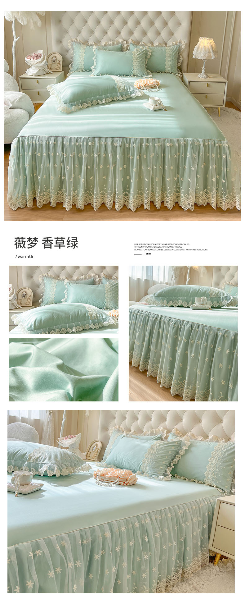 • 91家纺网 家纺一手货源 找家纺 (总)恋尚 2025新款柔软牛奶绒保暖蕾丝床裙四件套-玫瑰故事(控价305),玫瑰故事-蜜桃粉,玫瑰故事-奶茶色,玫瑰故事-椰蓉灰,玫瑰故事-香芋紫,玫瑰故事-清新粉,玫瑰故事-香草绿