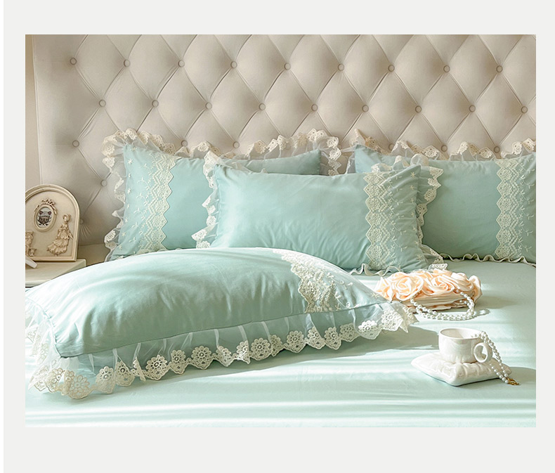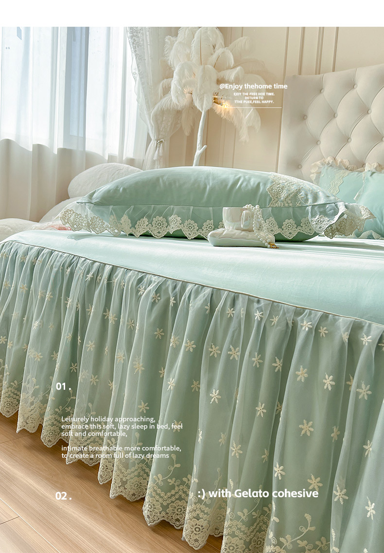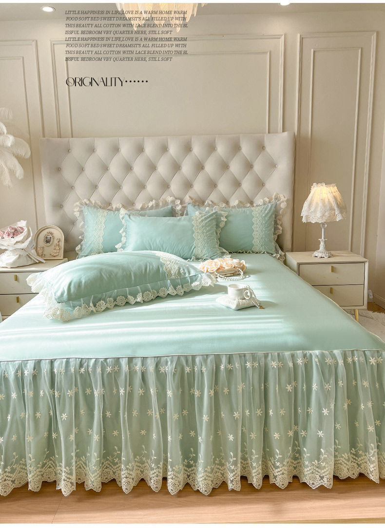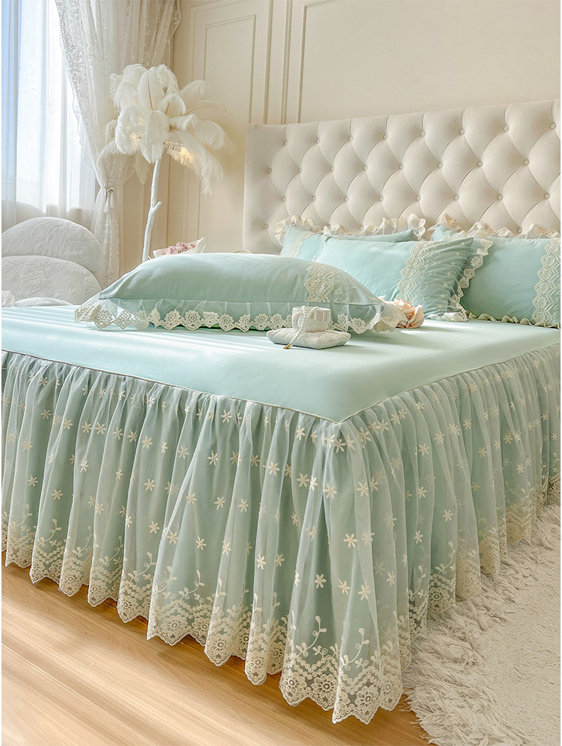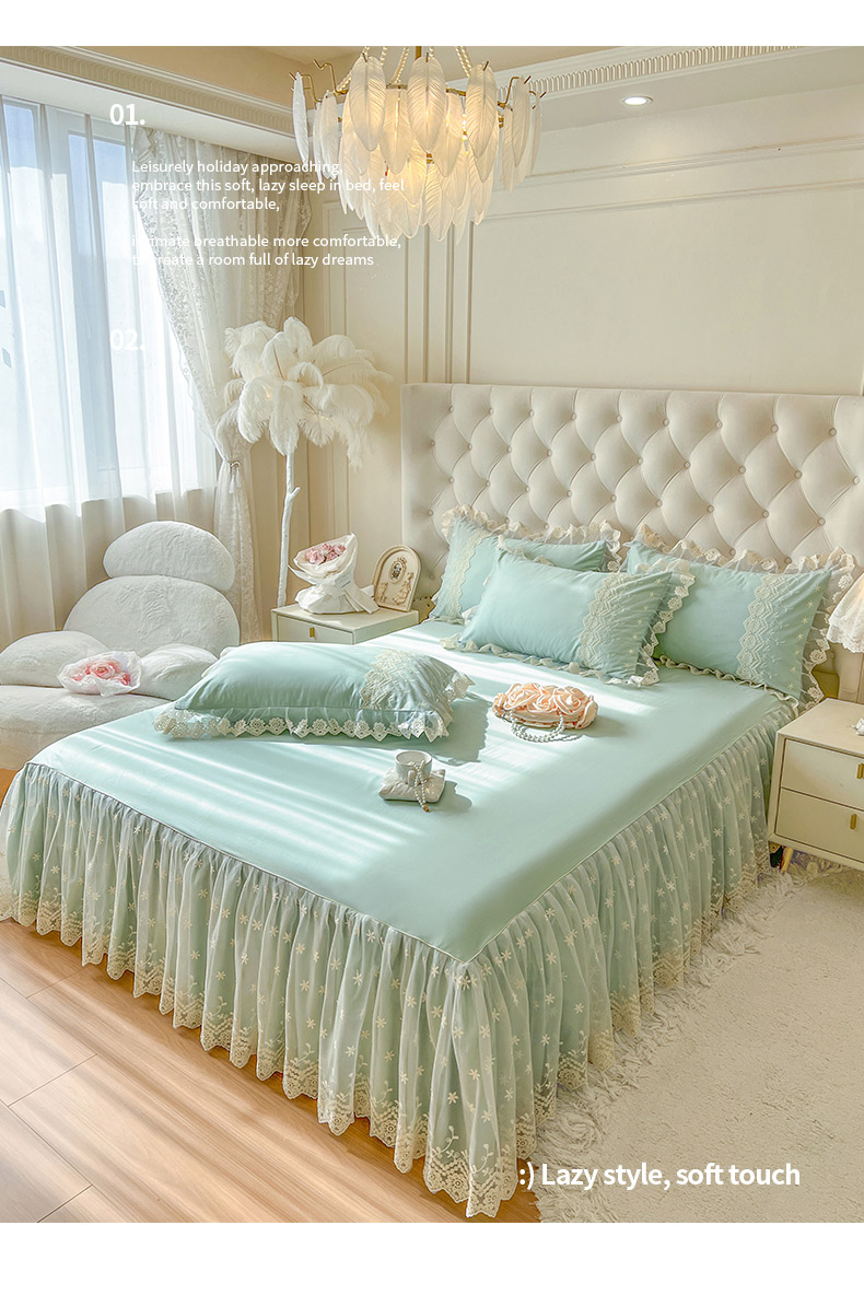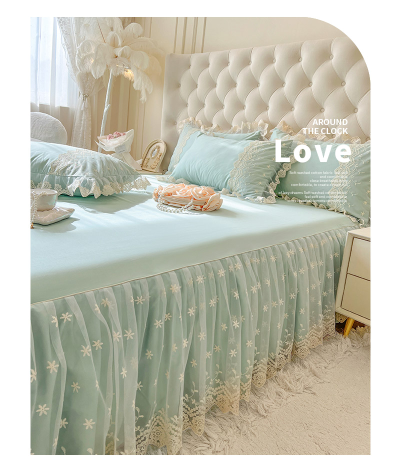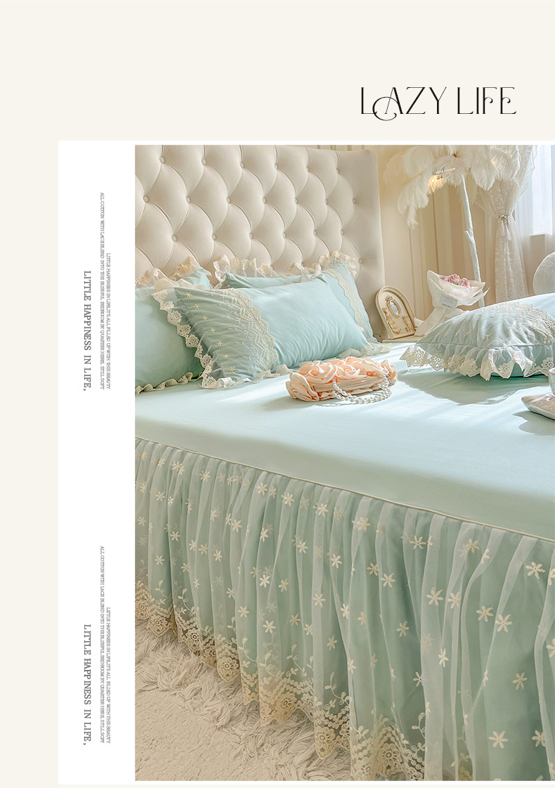 恋尚 2025新款60贡缎长绒棉床笠裙款三件套-薇梦 薇梦-香草绿