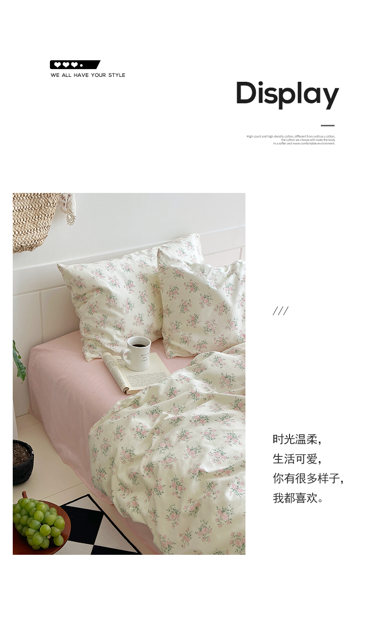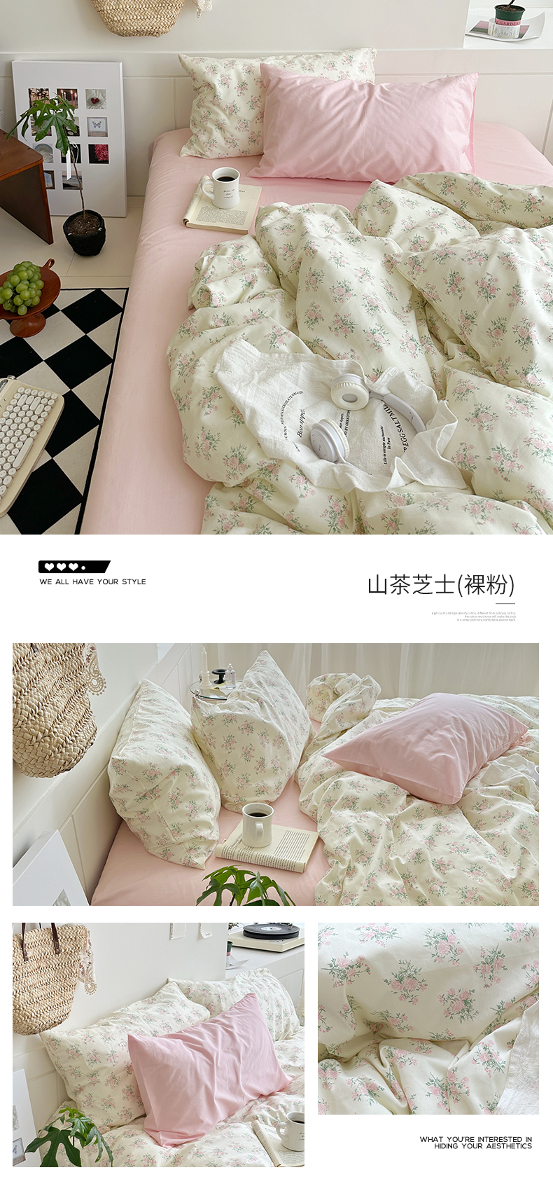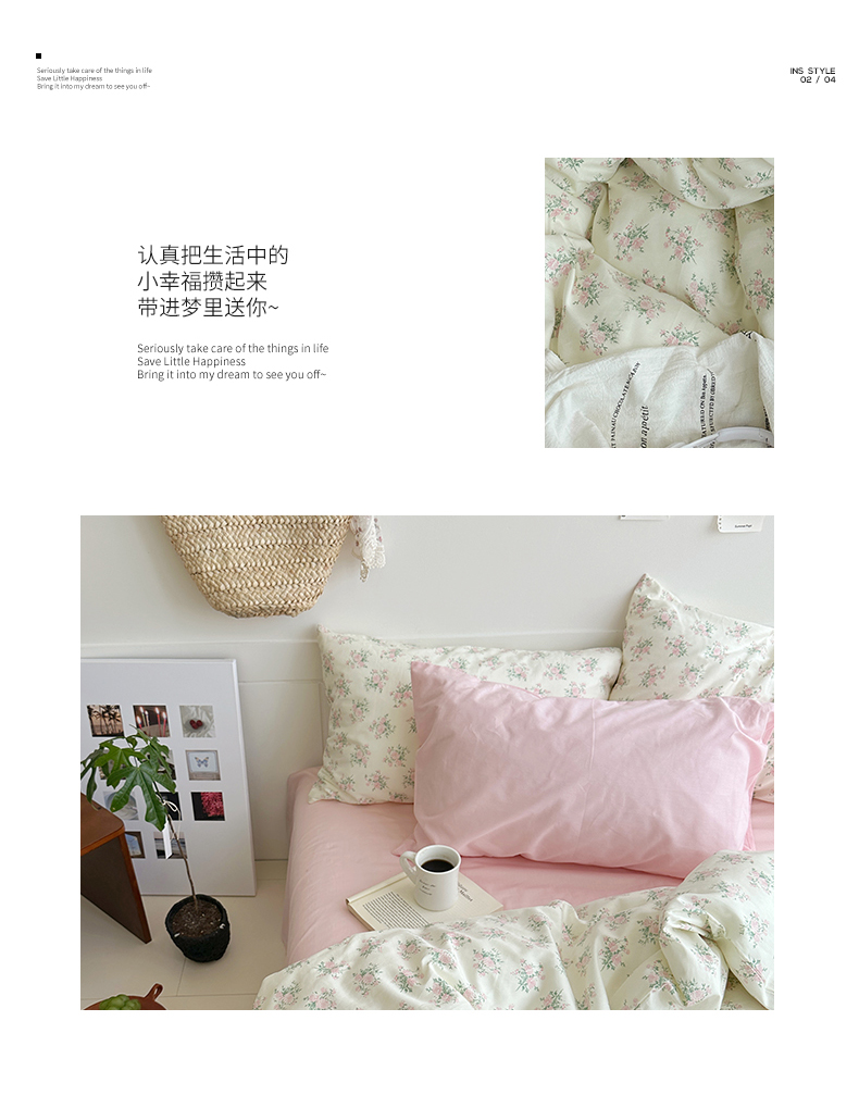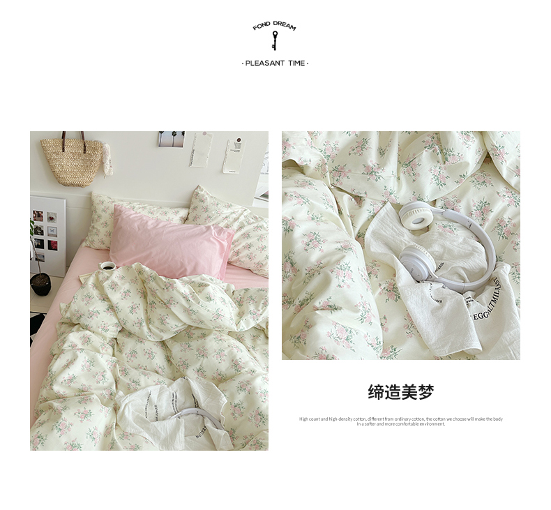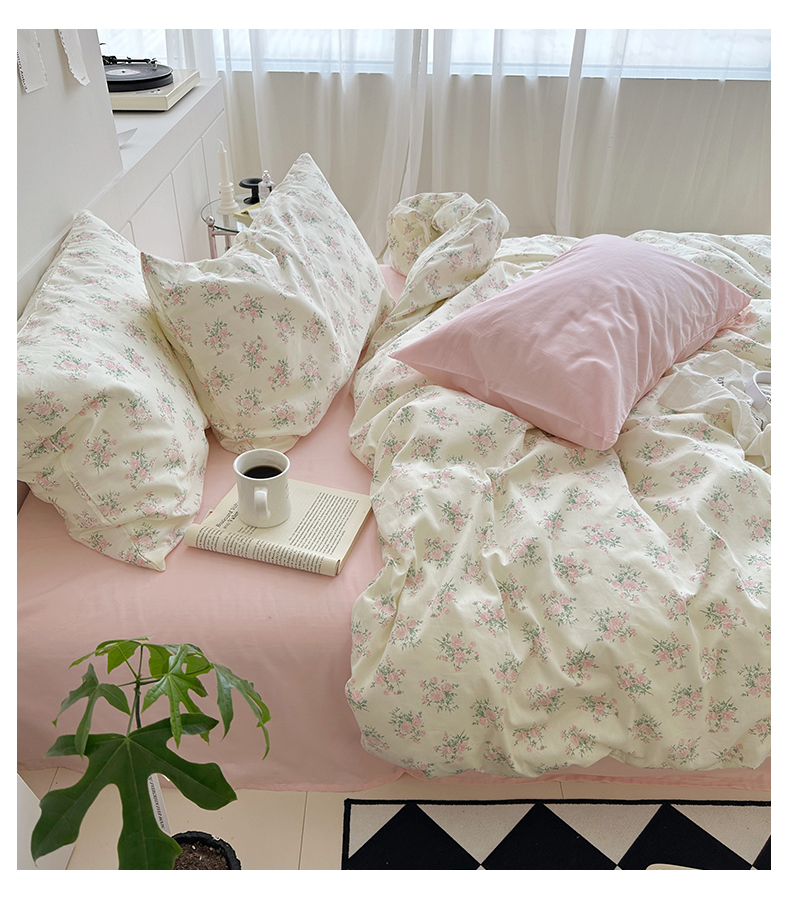 当前位置: 91家纺网 > 商品网购 > 床品套件 > 四件套 > 全棉普通四件套 > 2025新款纯棉小清新四件套小碎花学生三件套纯色床单印花枕套双人床笠 山茶芝士(裸粉)