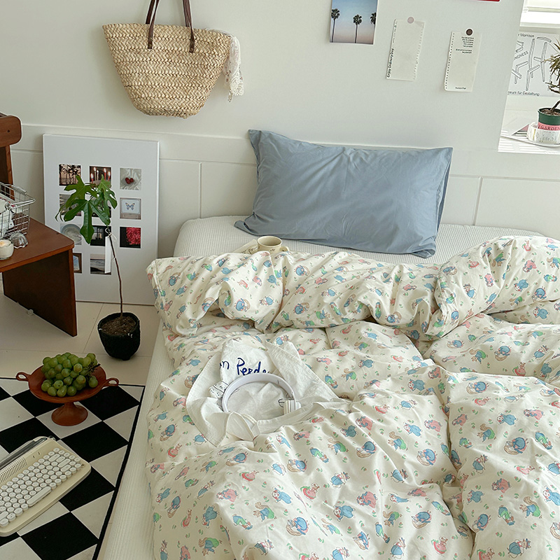 (总)尺素 2026新款纯棉卡通ins风四件套可爱少女风全棉被套纯色1.8床笠加大床单学生1.2三件套,告白熊--浅蓝,格调粉--奶黄,格调粉--桃粉,蓝白情书--浅蓝,清梦--冰沙绿,清梦--浅黄,小熊软糖--焦糖