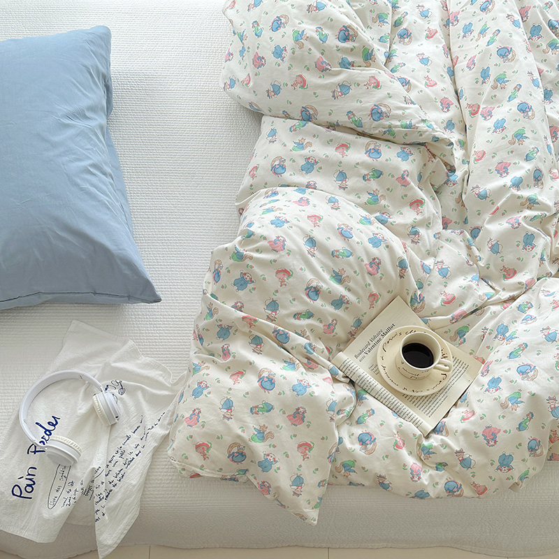 (总)尺素 全棉40支喷气13372韩国ins设计师四件套,花舞,篱落粉,篱落黄,落英,派对,童趣,涂鸦,小粉兔,雪地熊