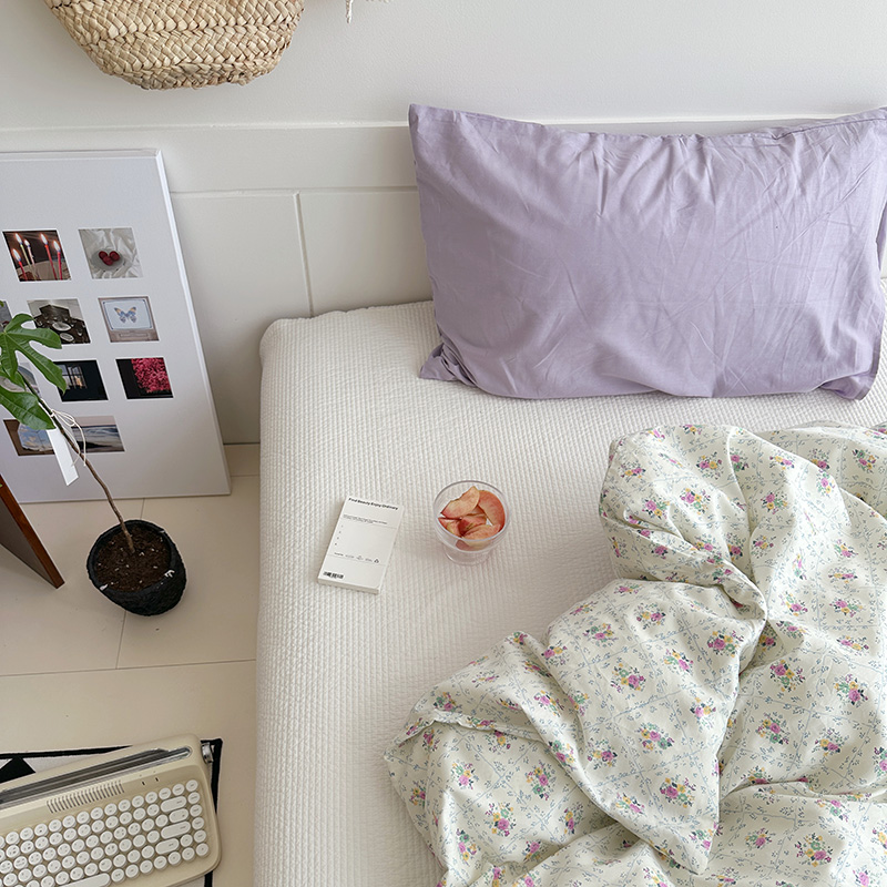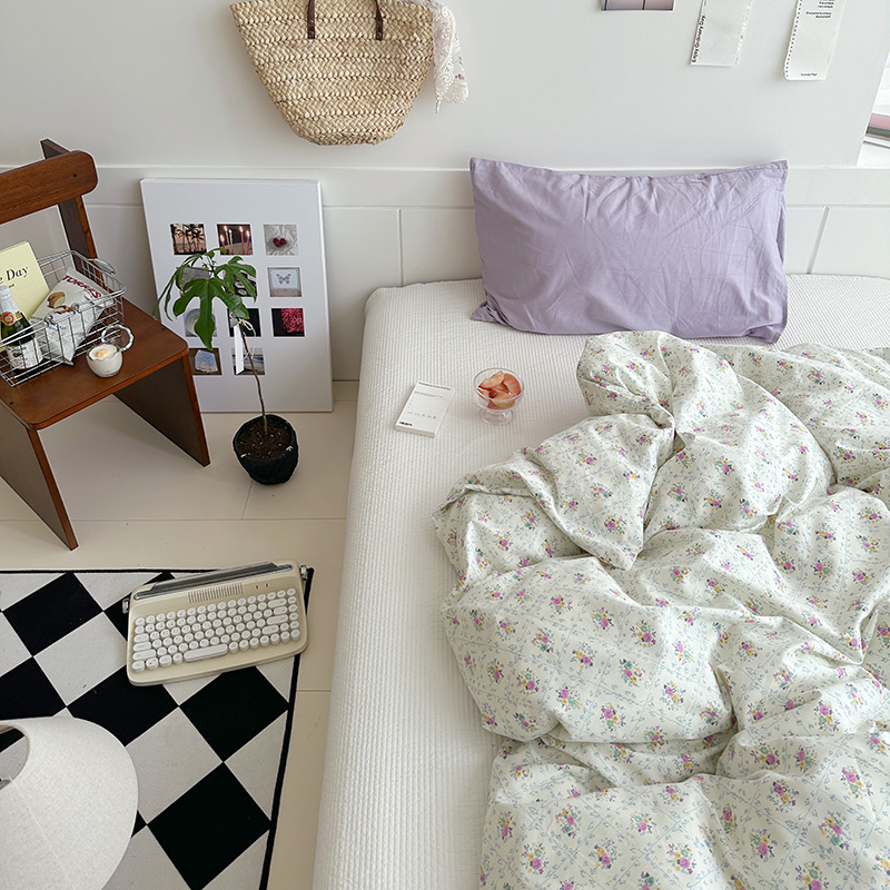 (总)尺素 2026田园小清新纯棉四件套出口韩国ins博主风全棉被套纯色加大床单1.8床笠印花枕套学生宿舍三件套,春不晚 桃粉,花似锦 奶白,紫鸢千夏紫