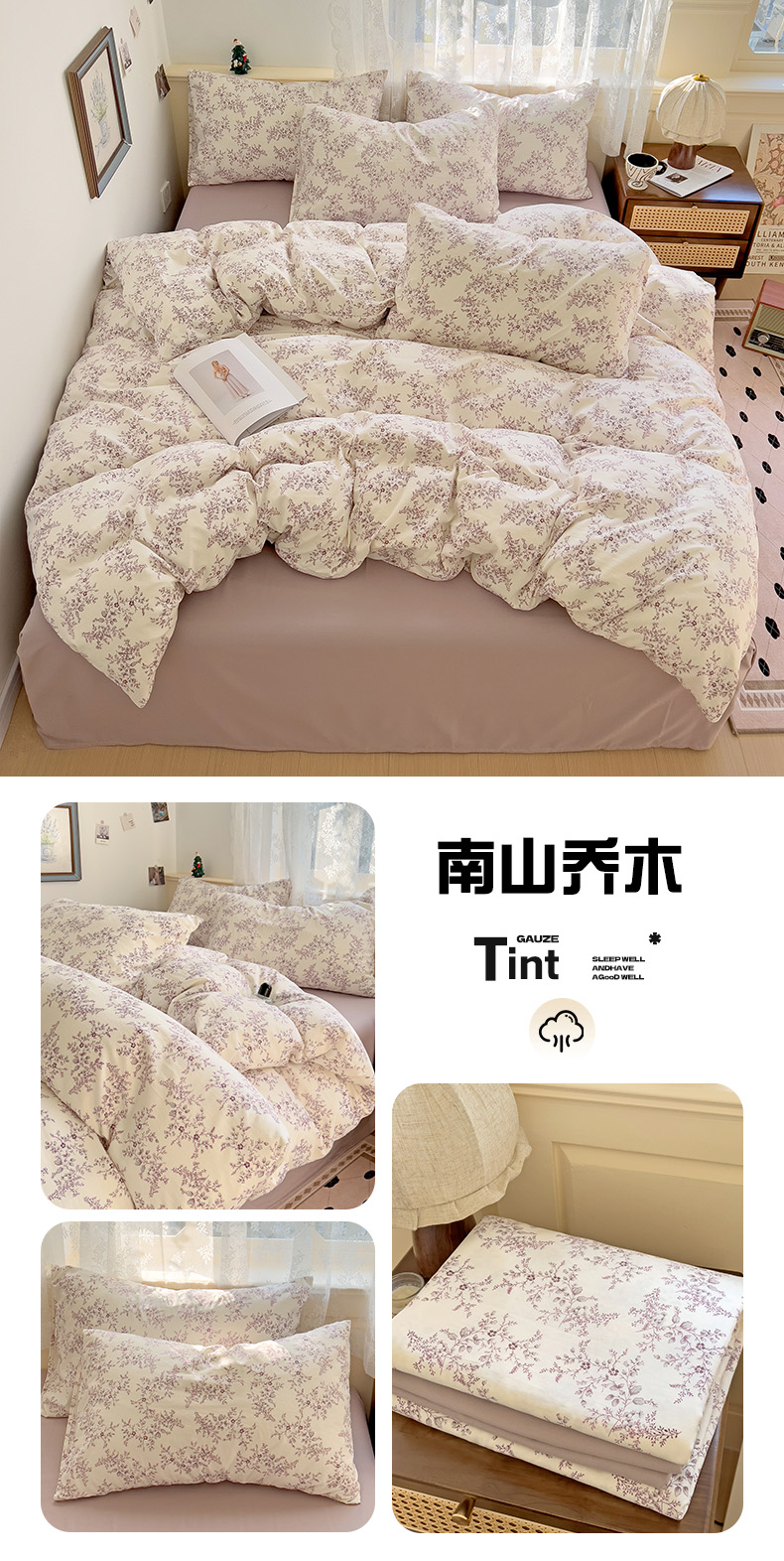 当前位置: 91家纺网 > 商品网购 > 床品套件 > 四件套 > 其它四件套 > 夜笙2025新款A类水洗棉双层纱印花四件套 南山乔木
