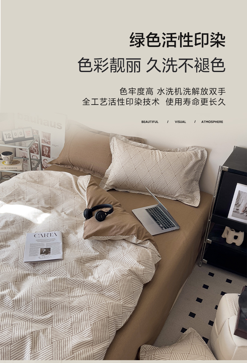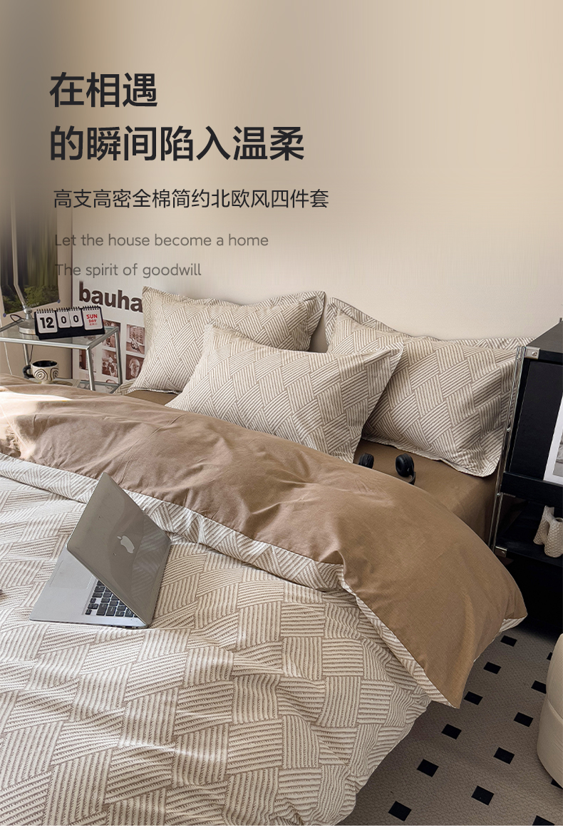盛馨 2025年高支高密全棉套件简约北欧风13372纯棉床笠四件套三件套 西西里