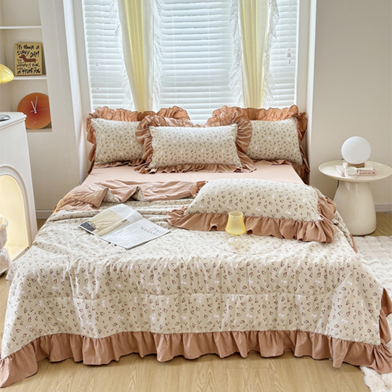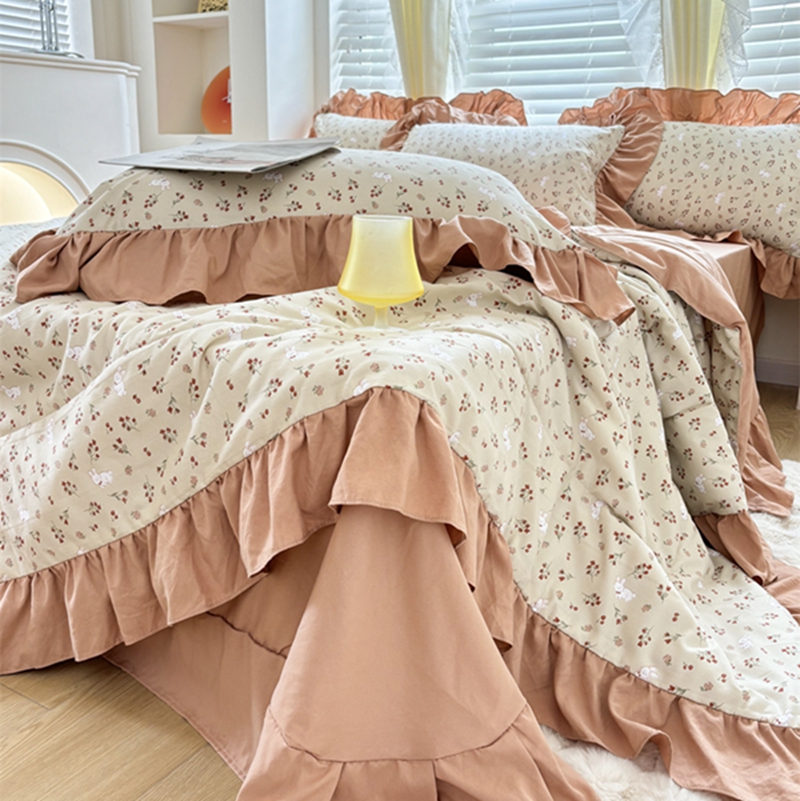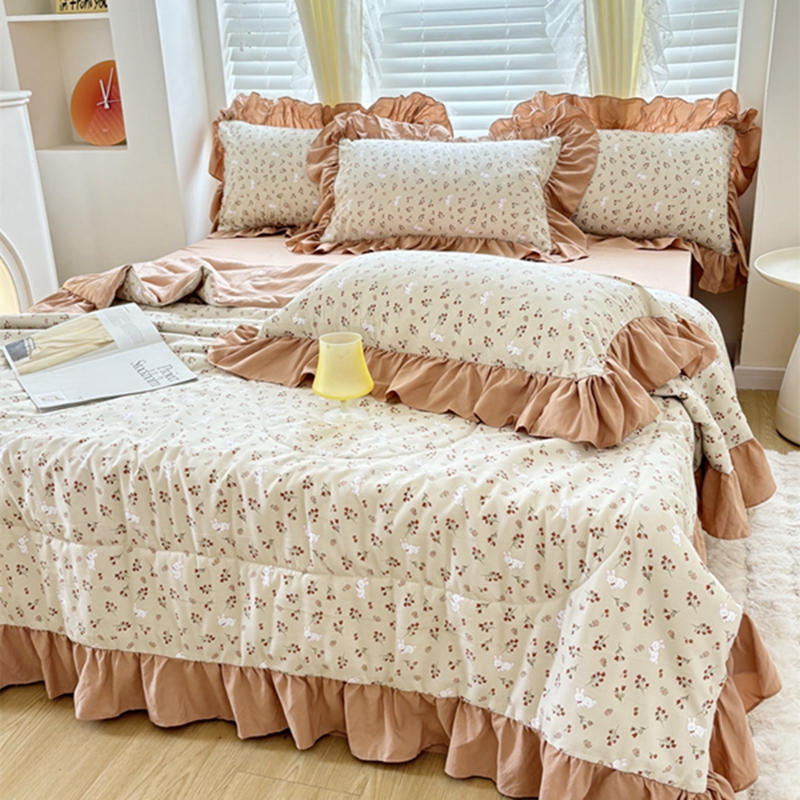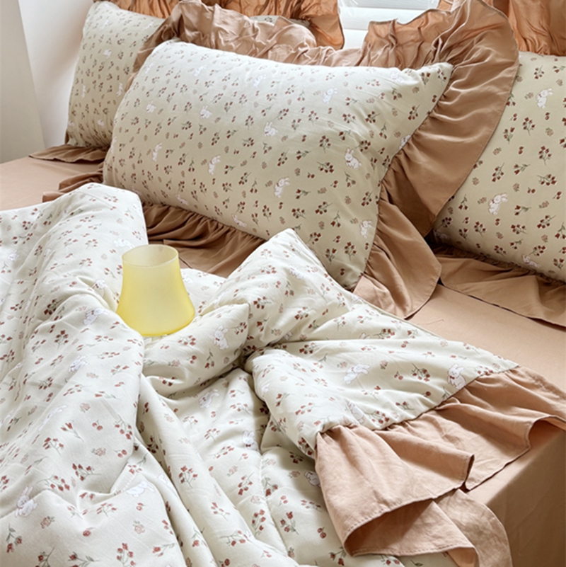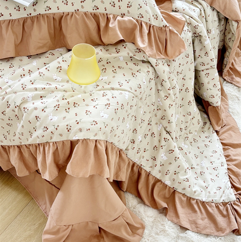 仟网汇 2025新款韩版糯糯棉花边夏被四件套田园法式 花仙兔