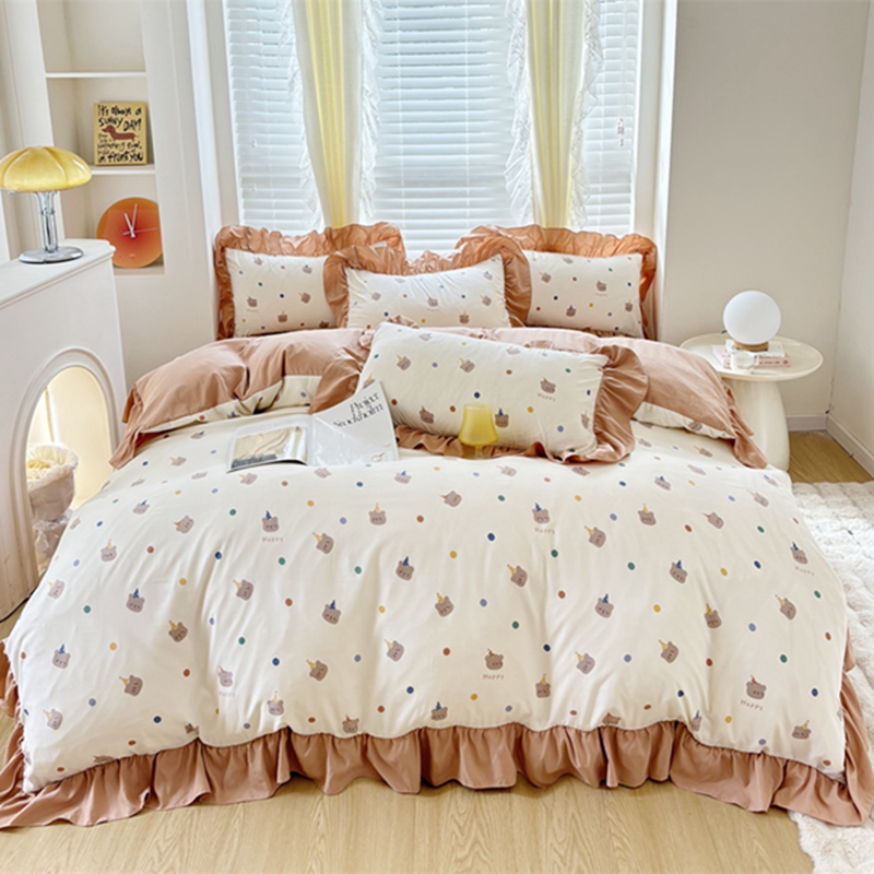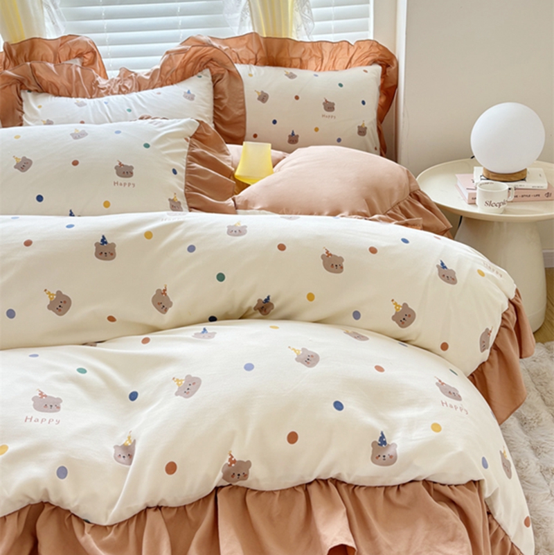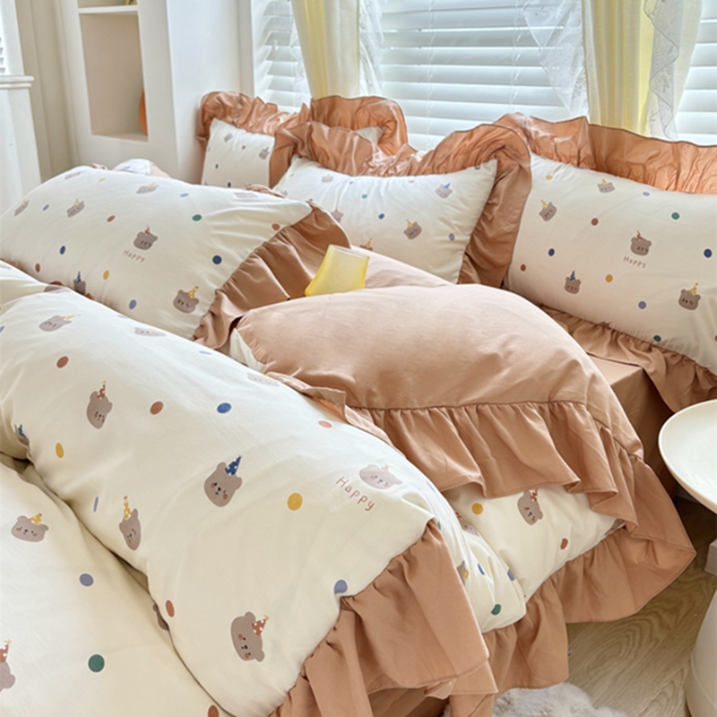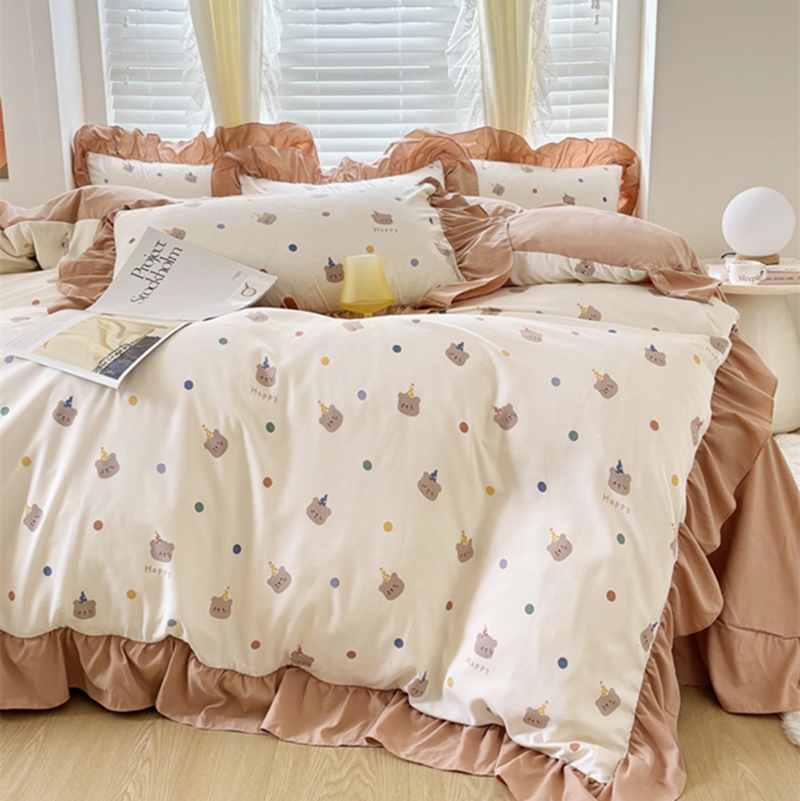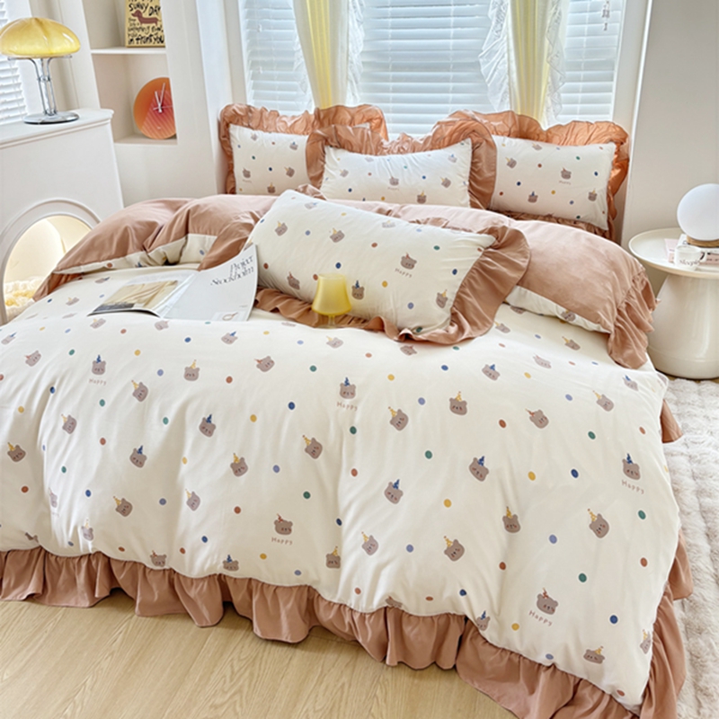 仟网汇 2025新款韩版糯糯棉花边四件套田园法式 波点熊
