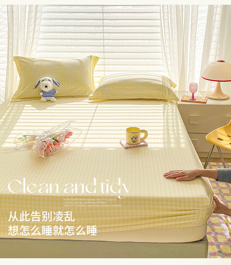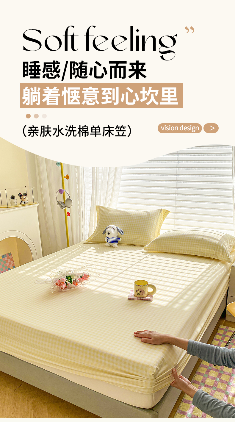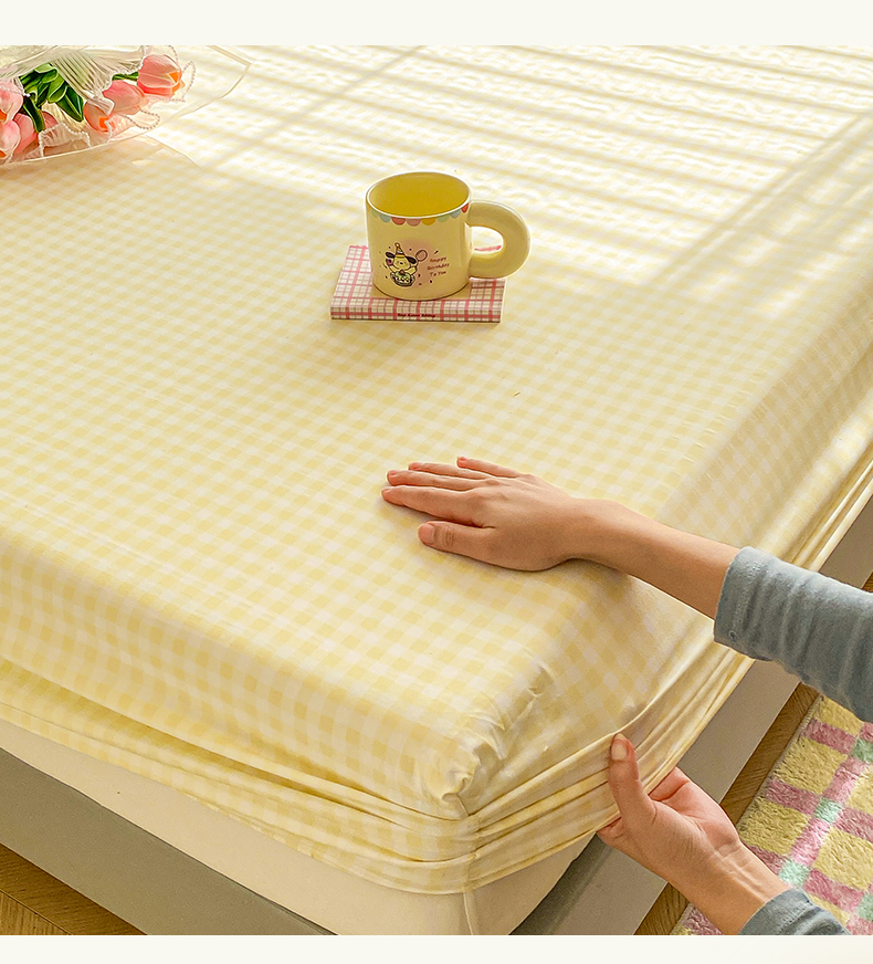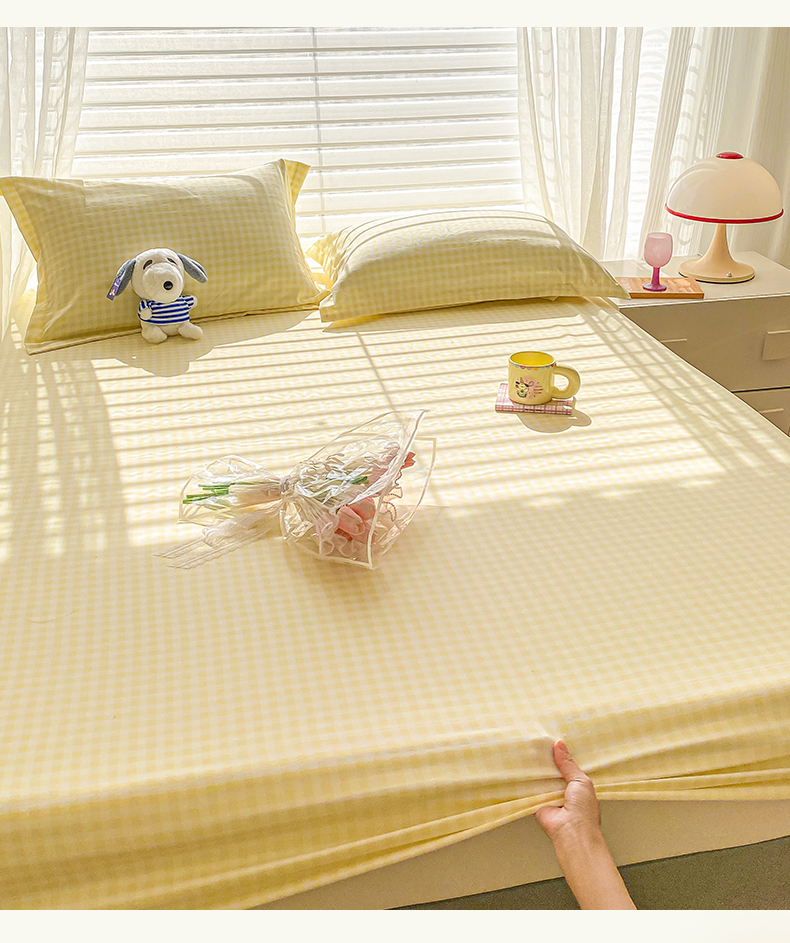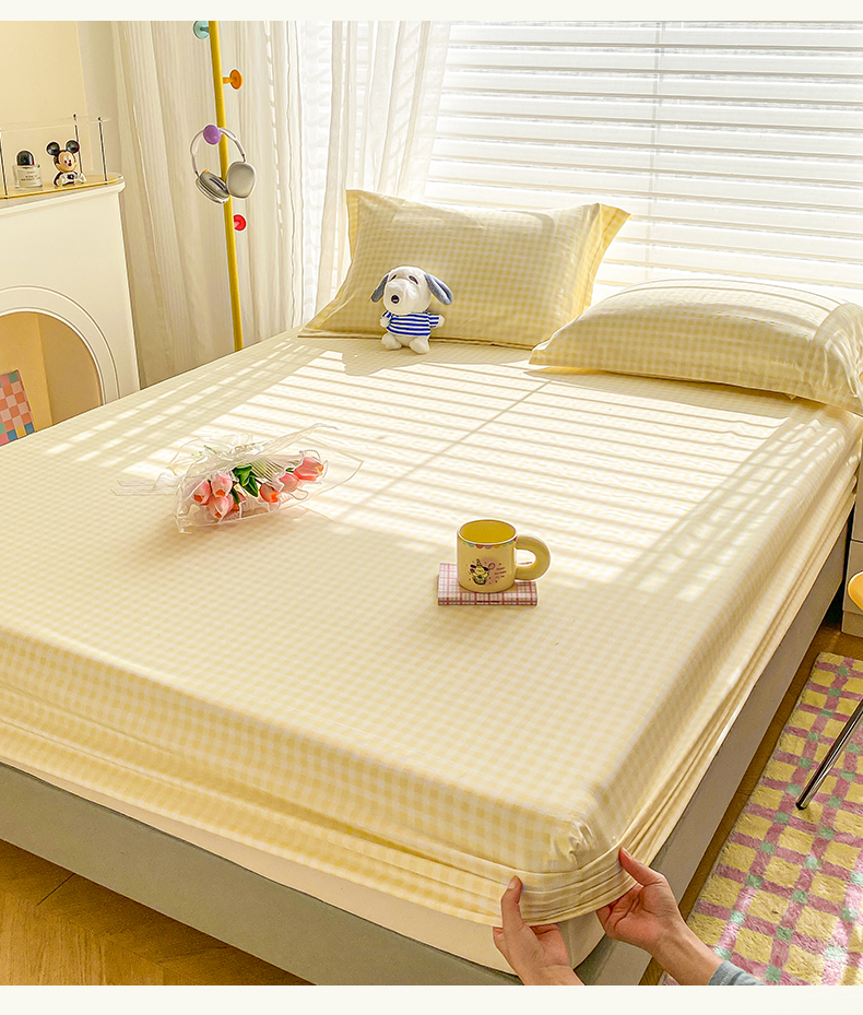恬澳家纺 2025新款森系水洗棉无印风单床笠 森系-黄格