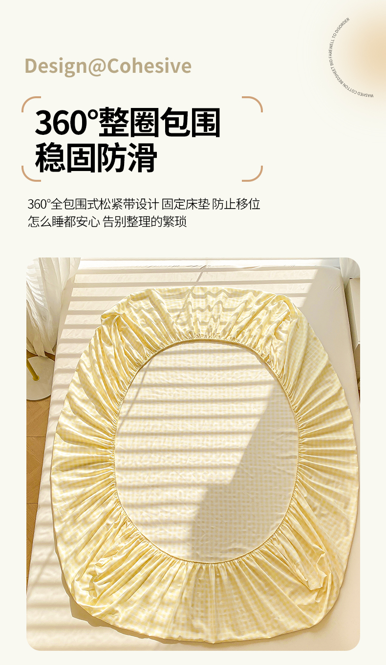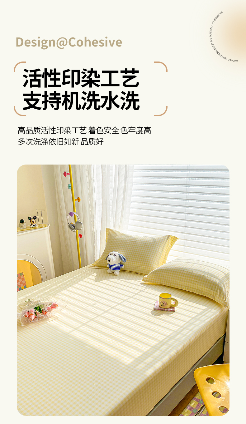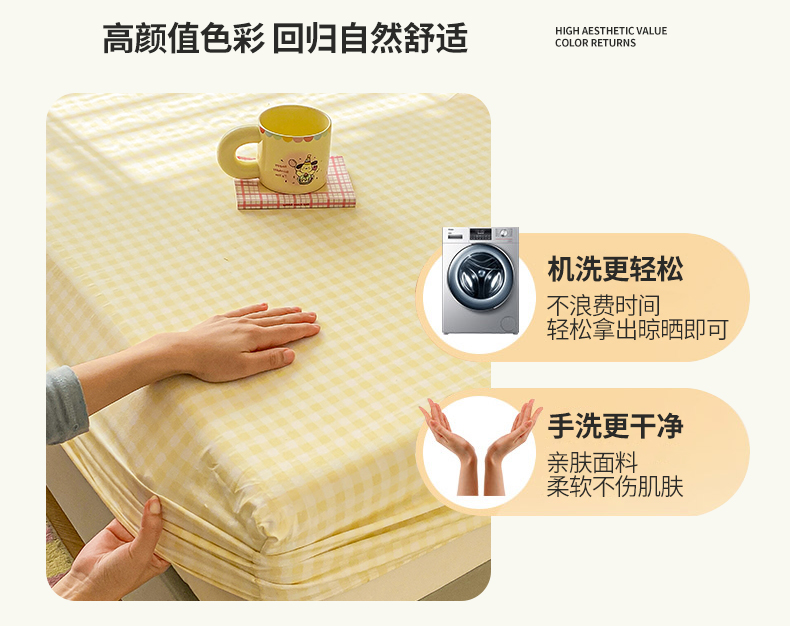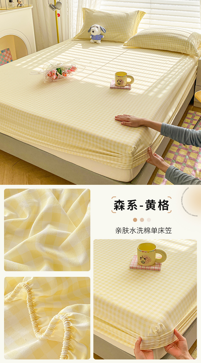 商品名称:恬澳家纺 2025新款森系水洗棉无印风单床笠 森系-黄格