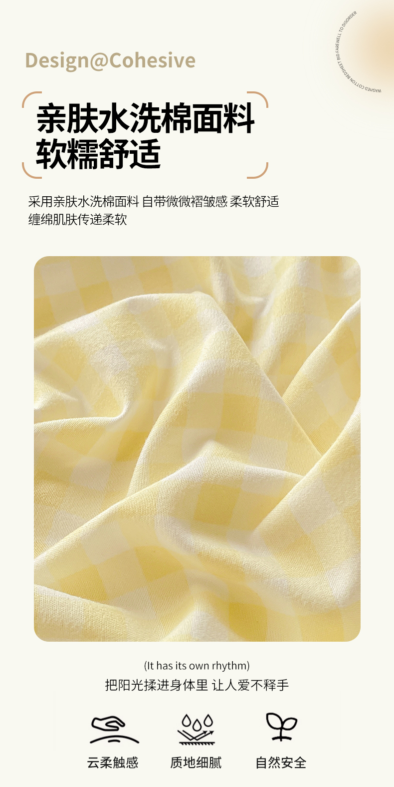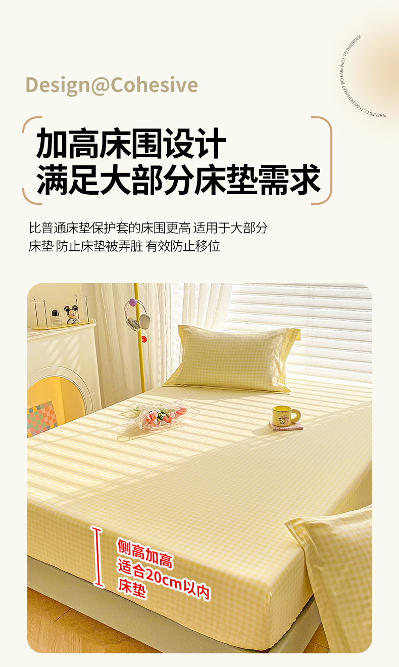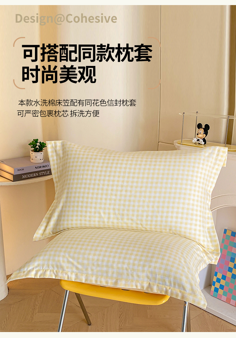 商品名称:恬澳家纺 2025新款森系水洗棉无印风单床笠 森系-黄格